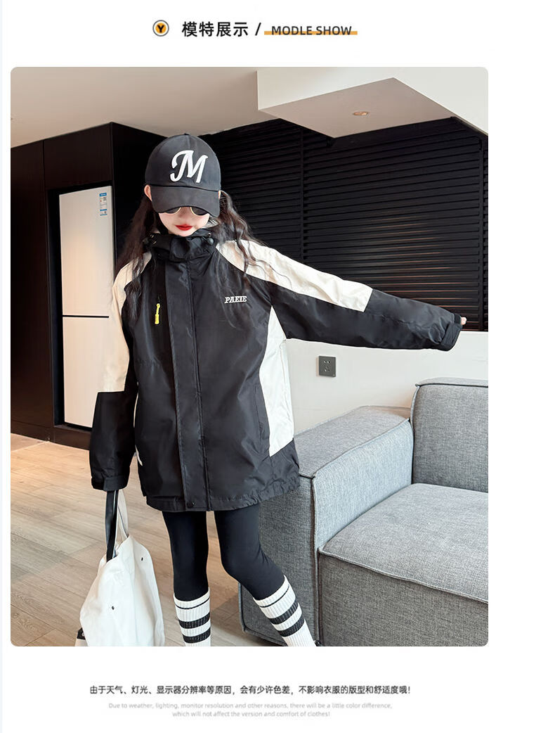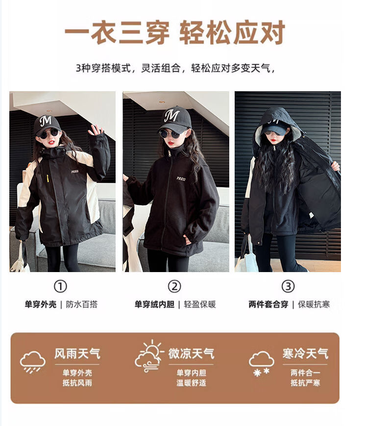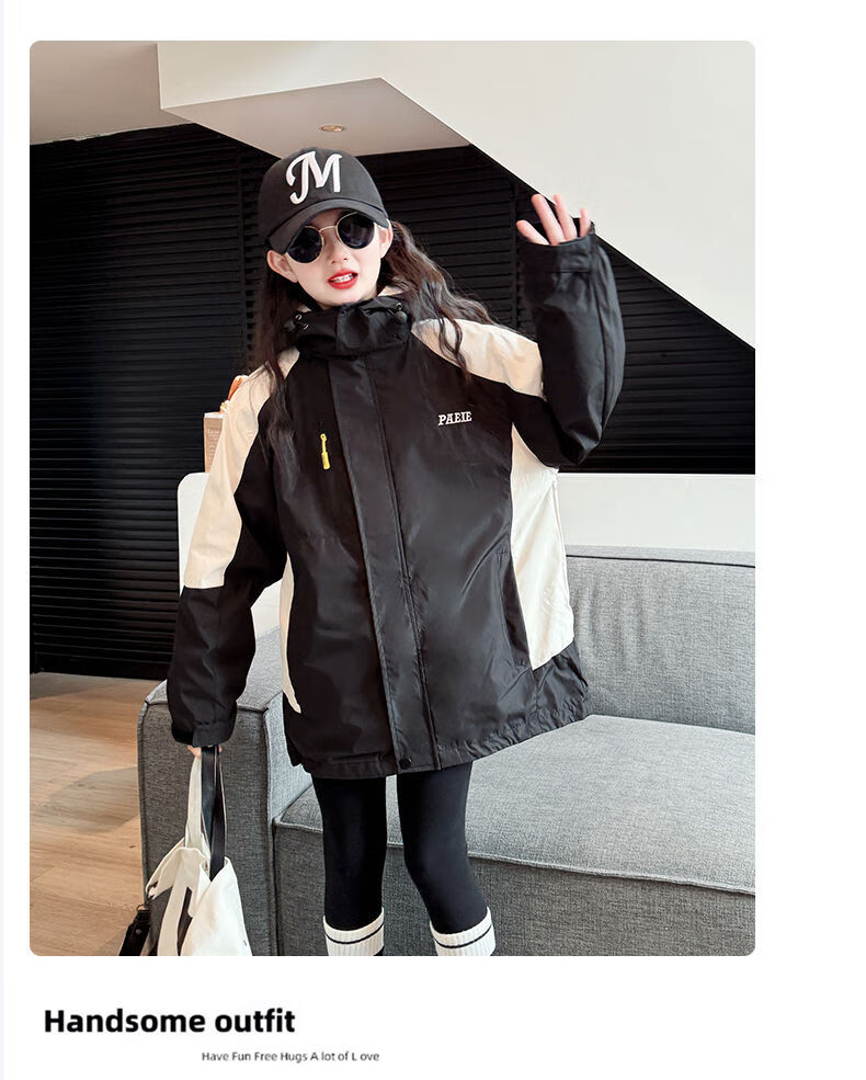 BALA suitable for girls three-in-one detachable autumn jacket 2025 new children's hooded jacket for large children single jacket with liner 120cm