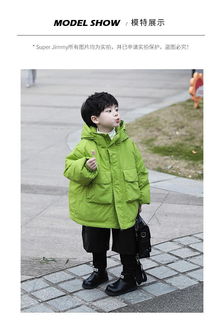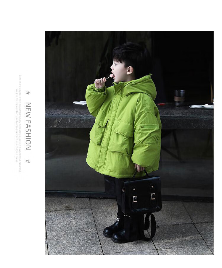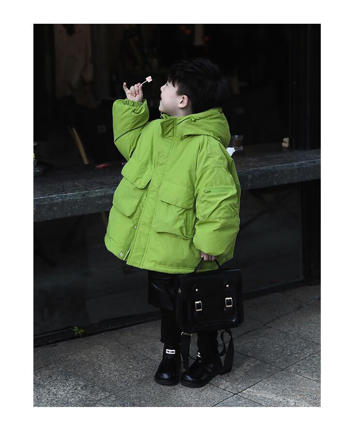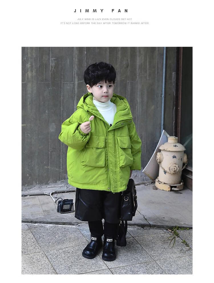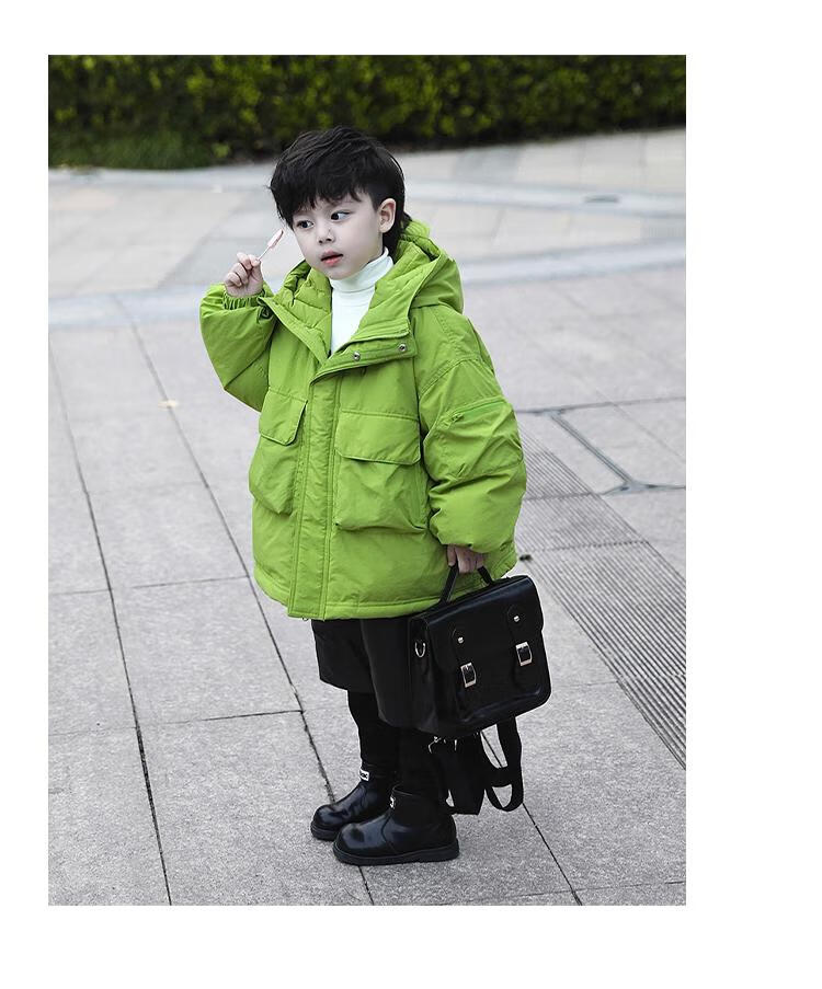 BALA suitable for boys winter down cotton coat 2025 new children's handsome baby cotton coat thick green apple color thickened down cotton one piece for winter 90cm
