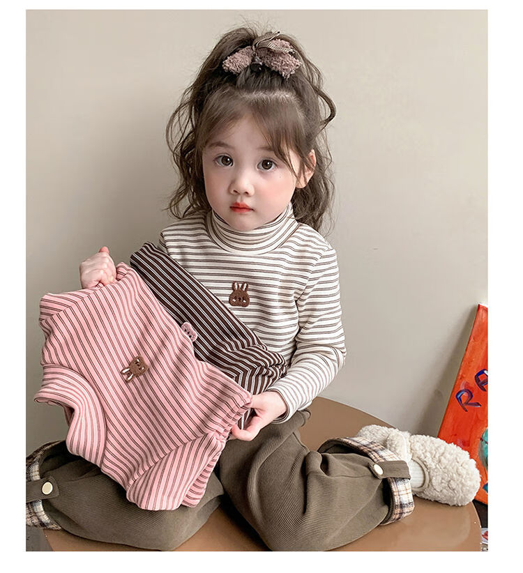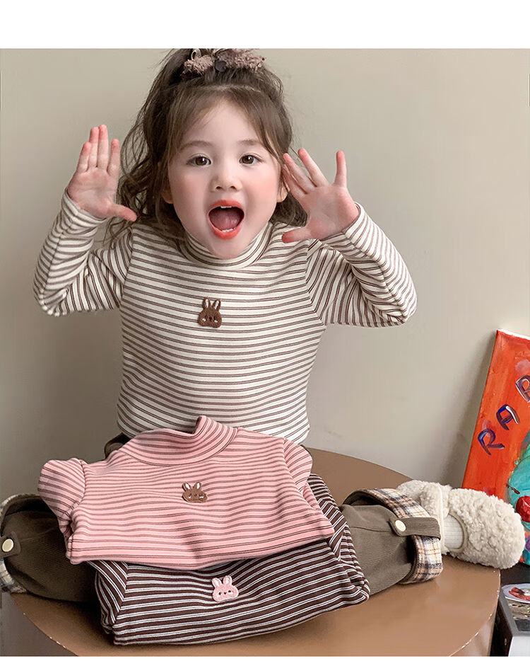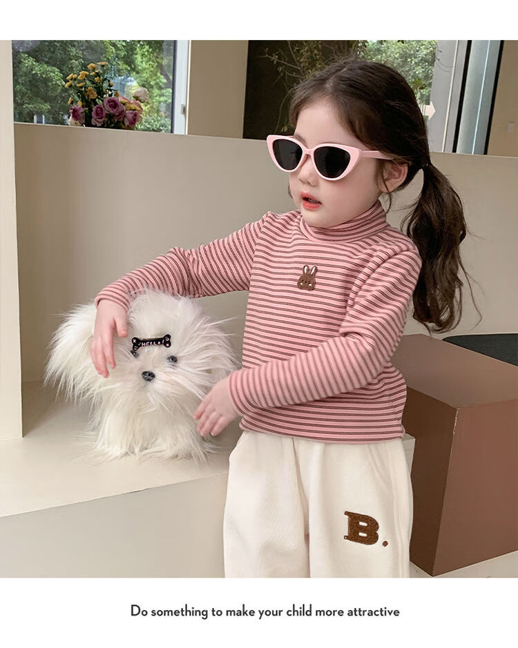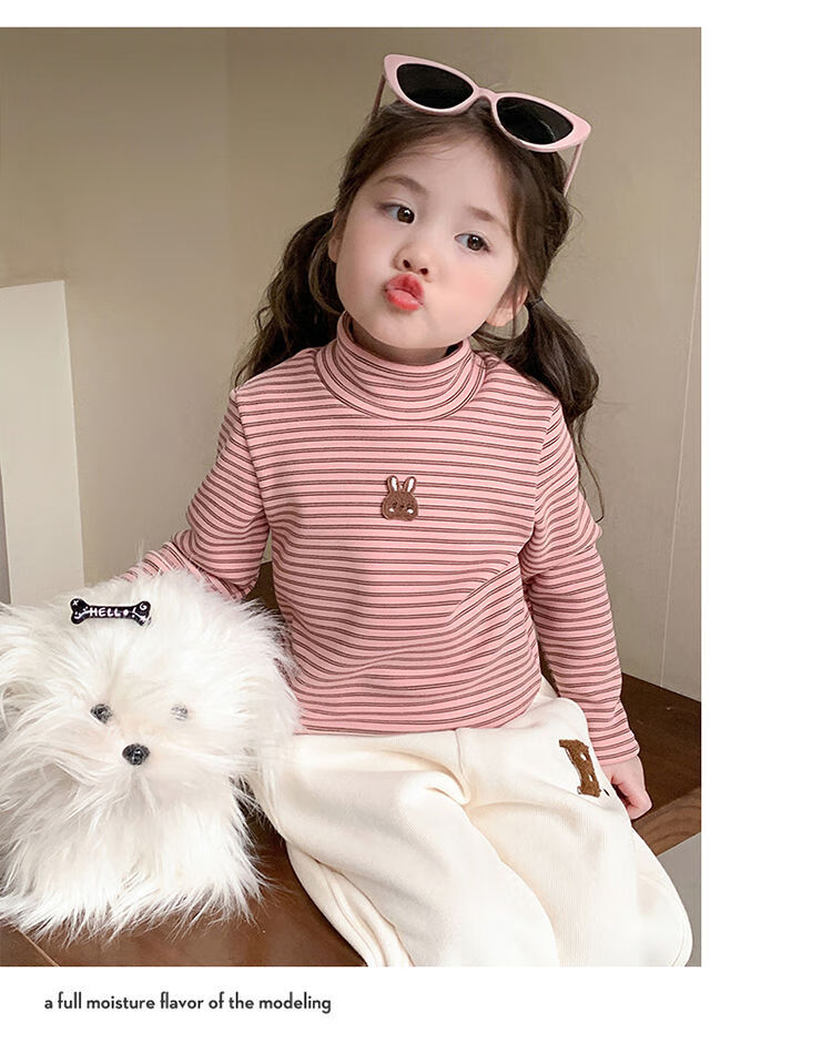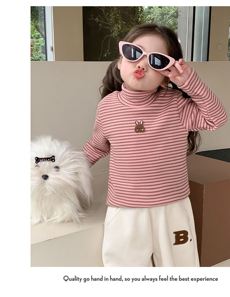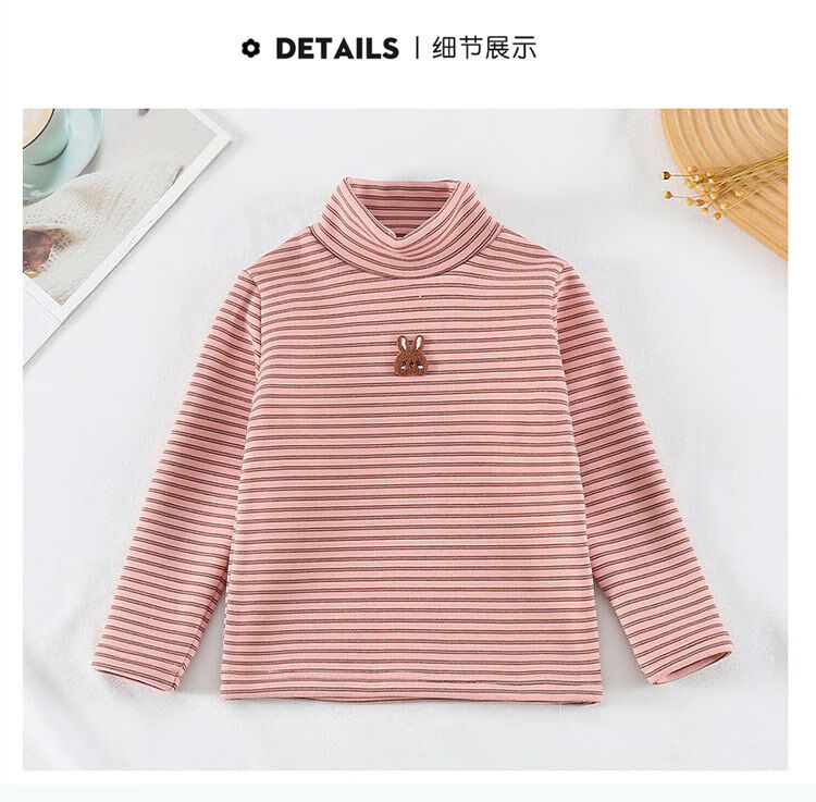 BALA is suitable for girls' velvet bottoming shirt, one-piece velvet autumn and winter 2024 new style German velvet girl's children's strip, pink 90cm