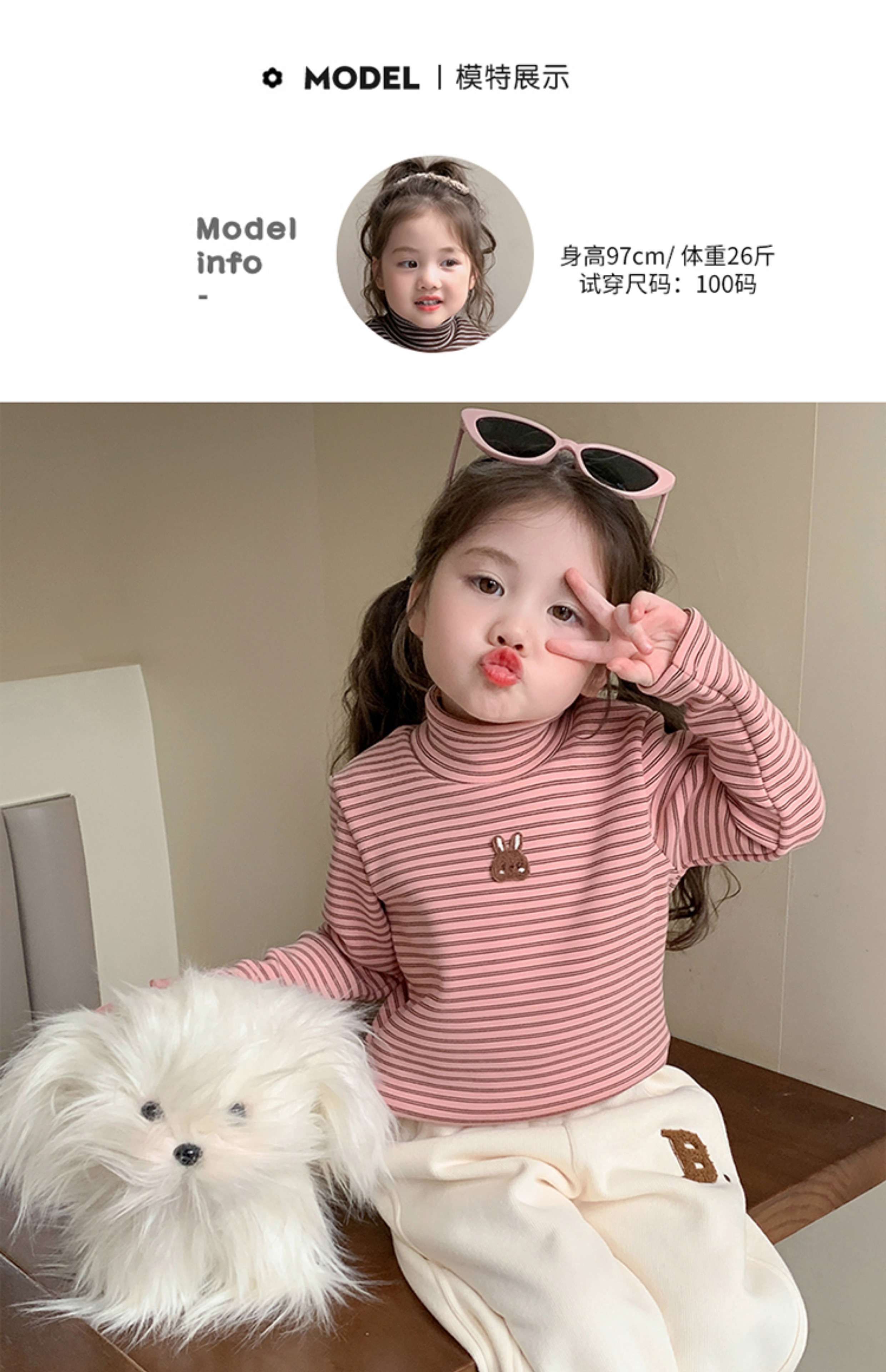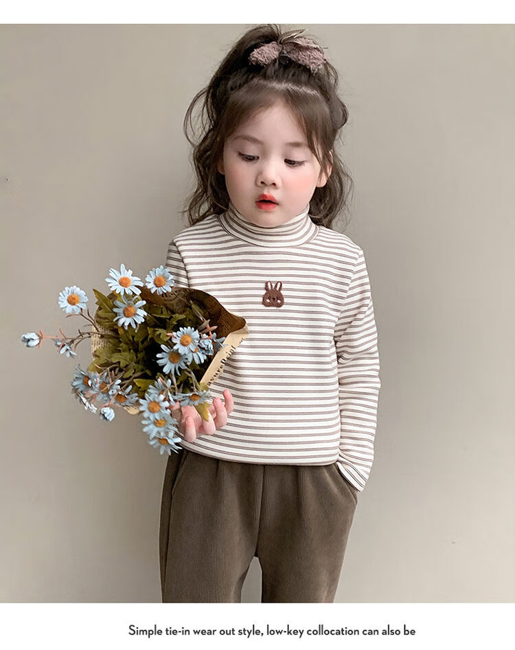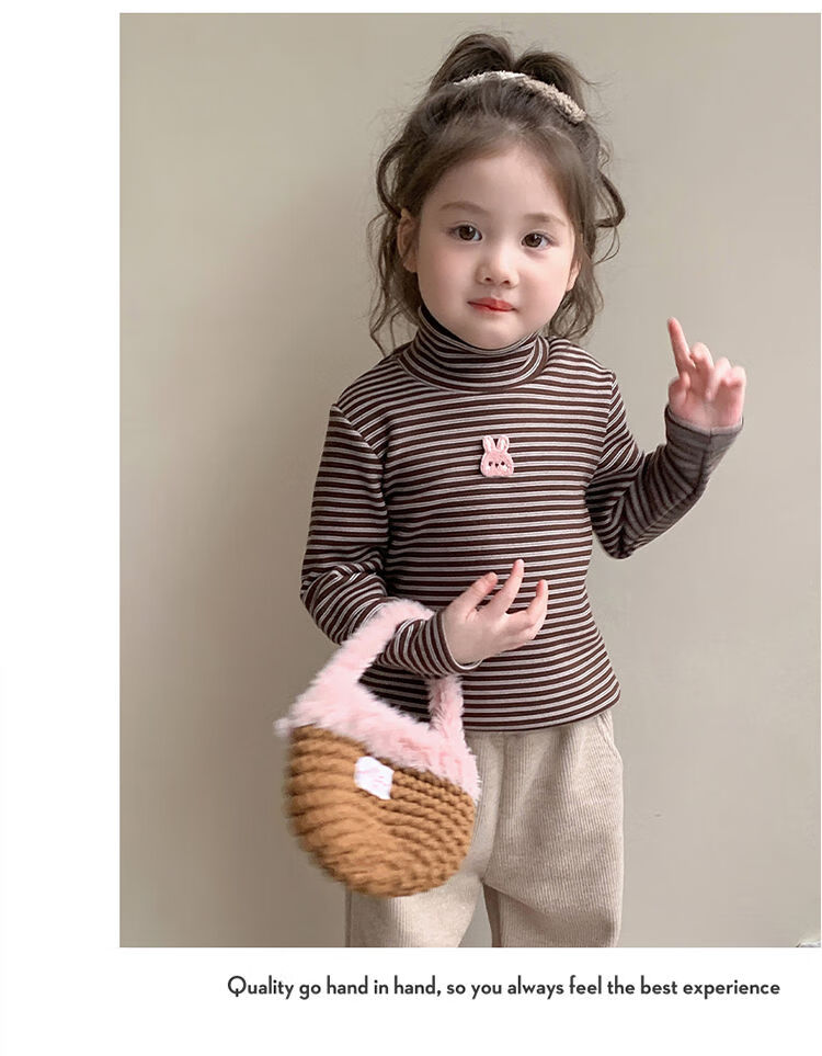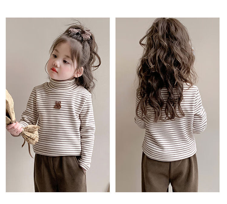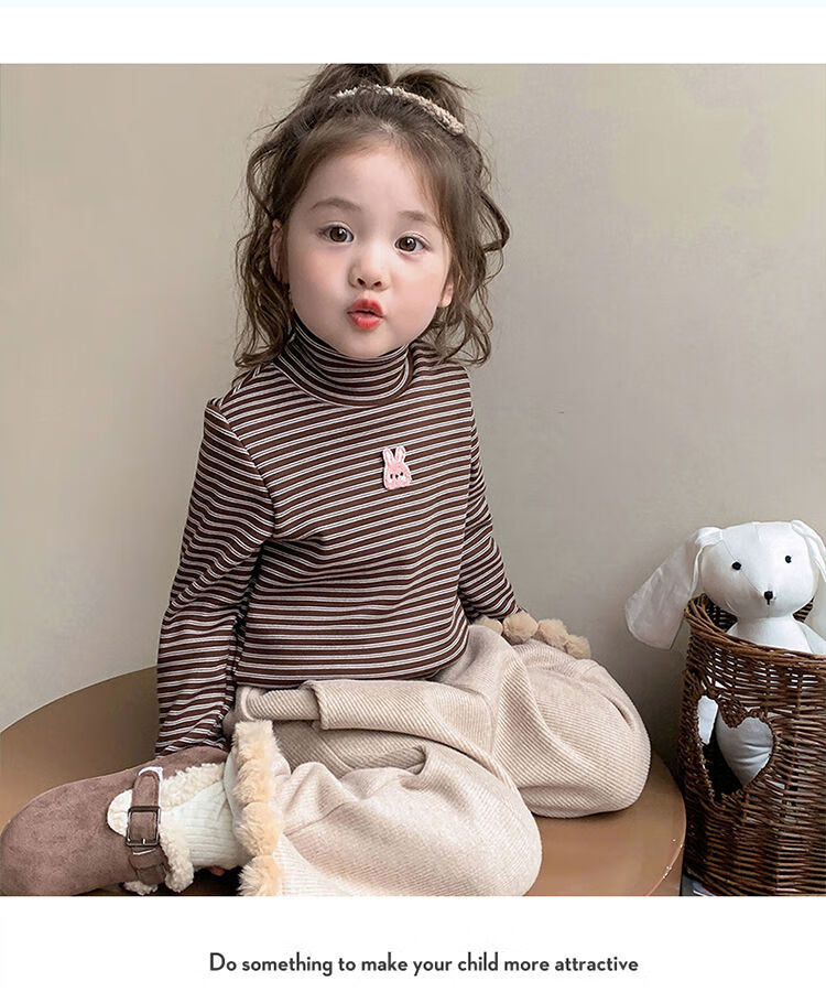 BALA is suitable for girls' velvet bottoming shirt, one-piece velvet autumn and winter 2024 new style German velvet girl's children's strip, pink 90cm