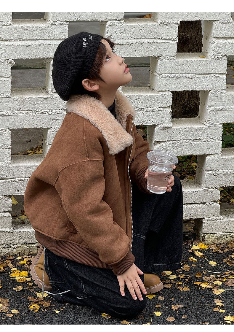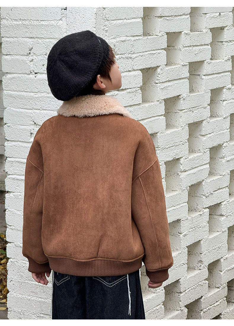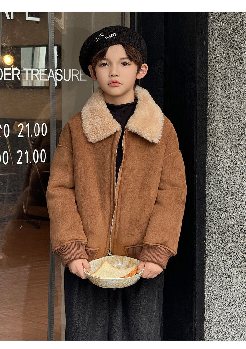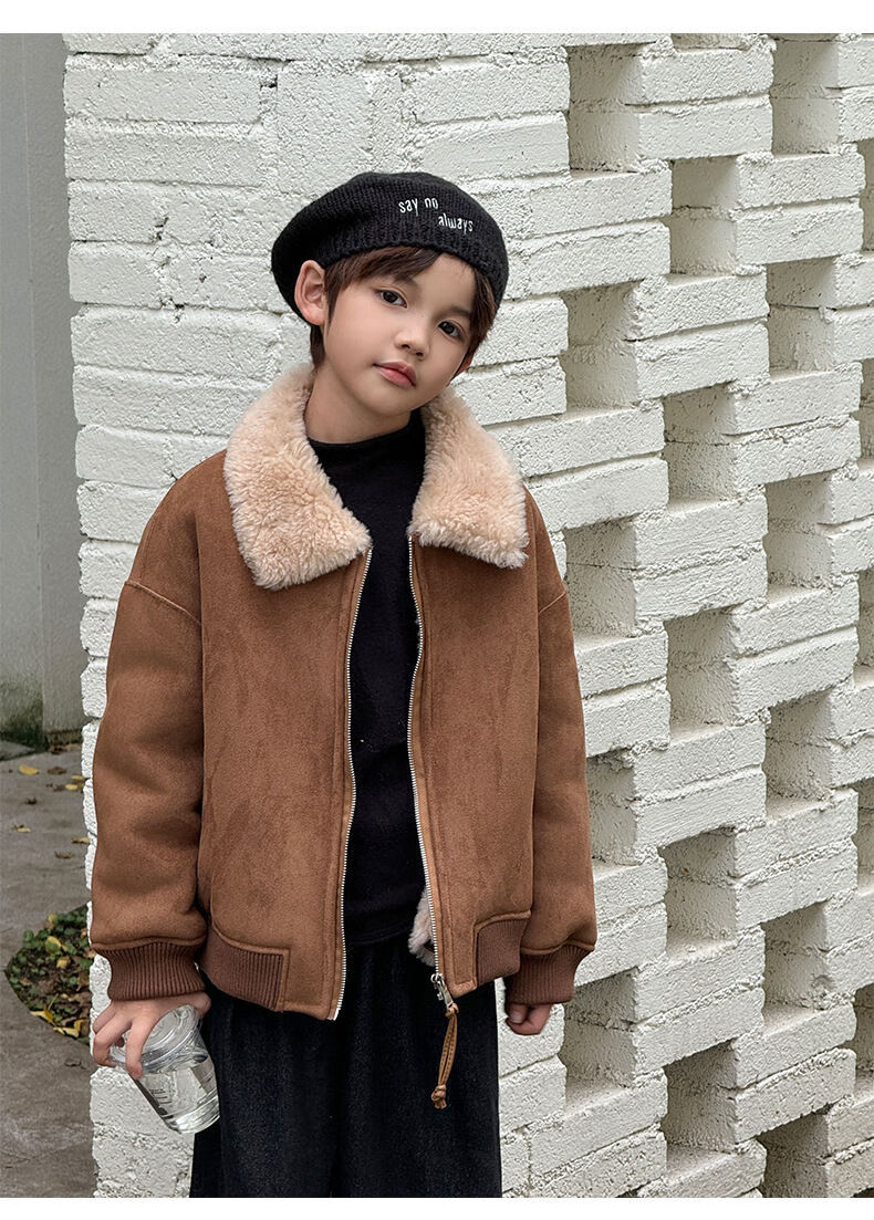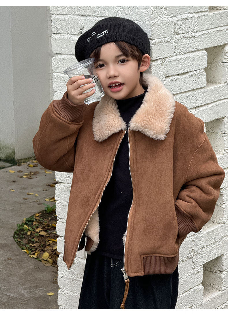 BALA is suitable for purchasing products. Winter boys' coat covered with fur all-in-one machine, medium and large children's brown fur + chocolate leather 110