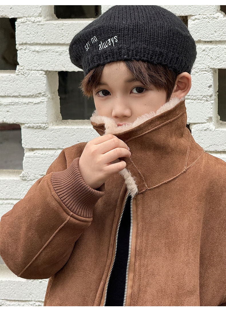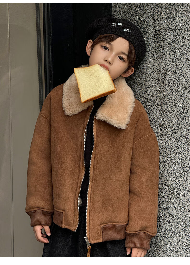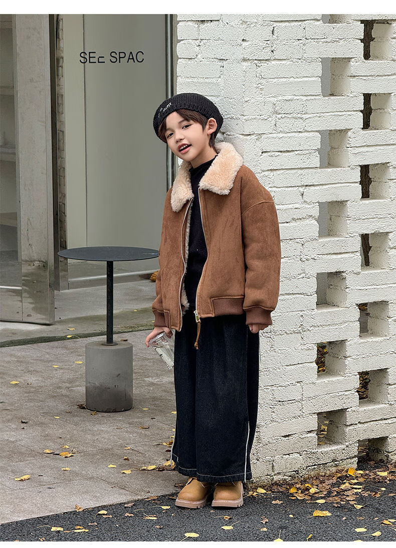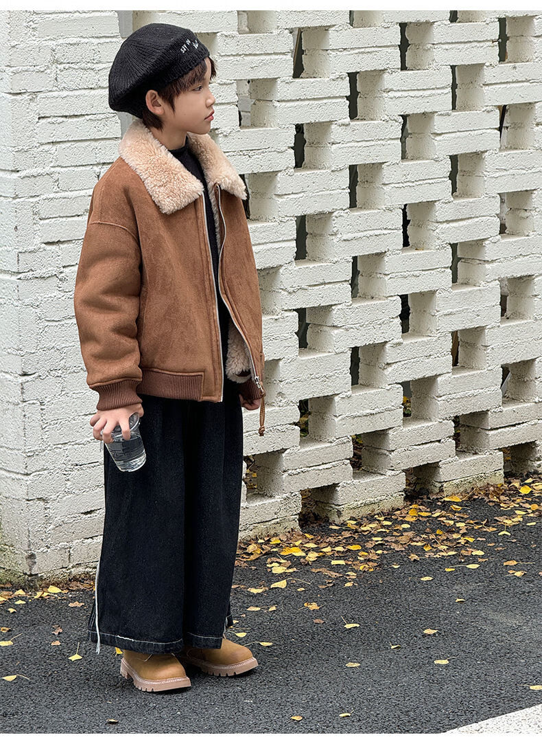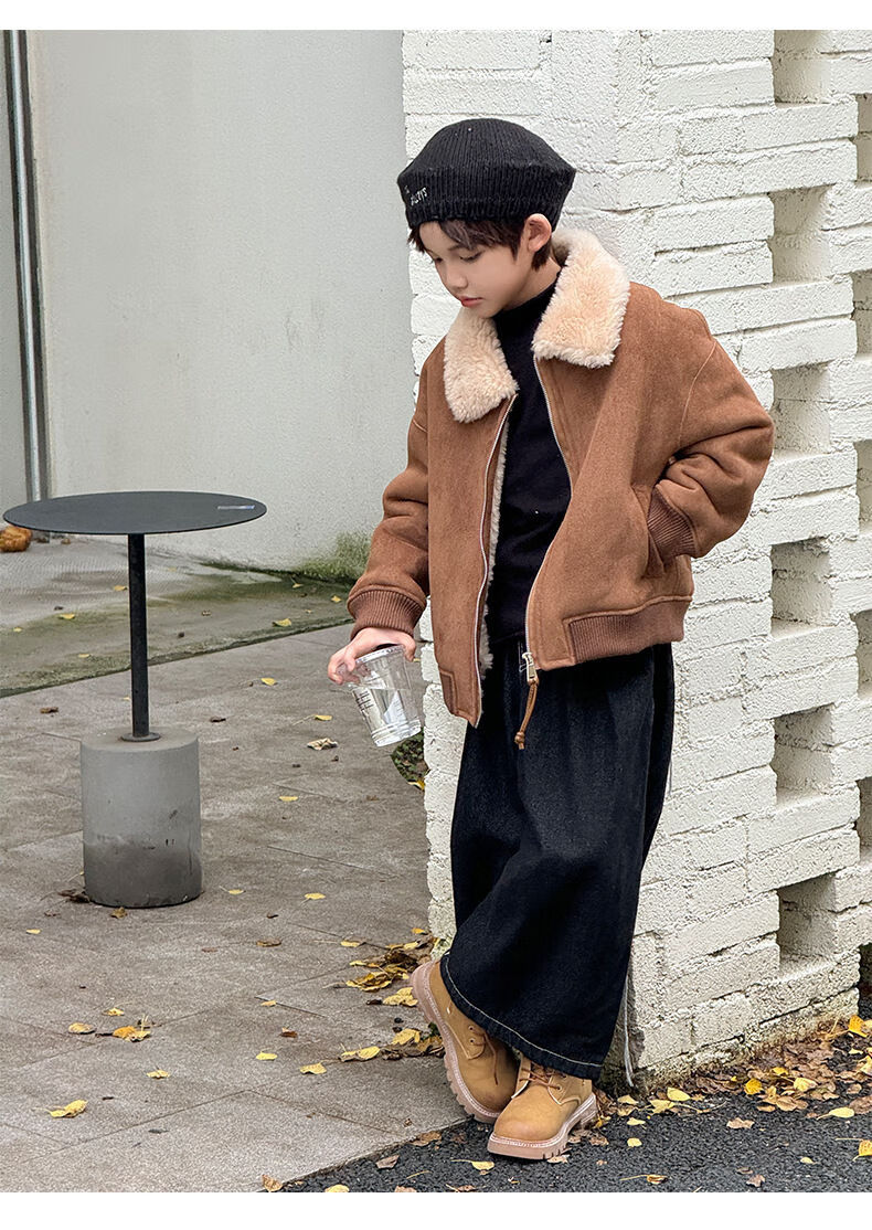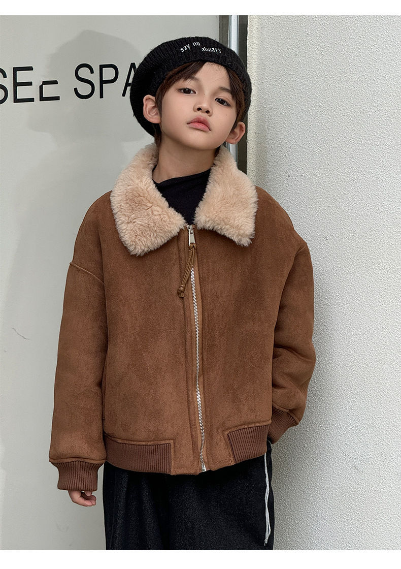 BALA is suitable for purchasing products. Winter boys' coat covered with fur all-in-one machine, medium and large children's brown fur + chocolate leather 110