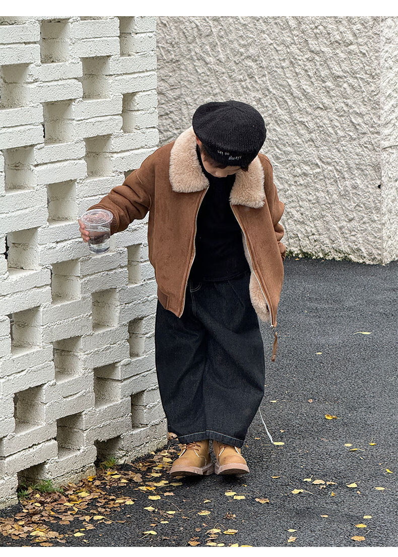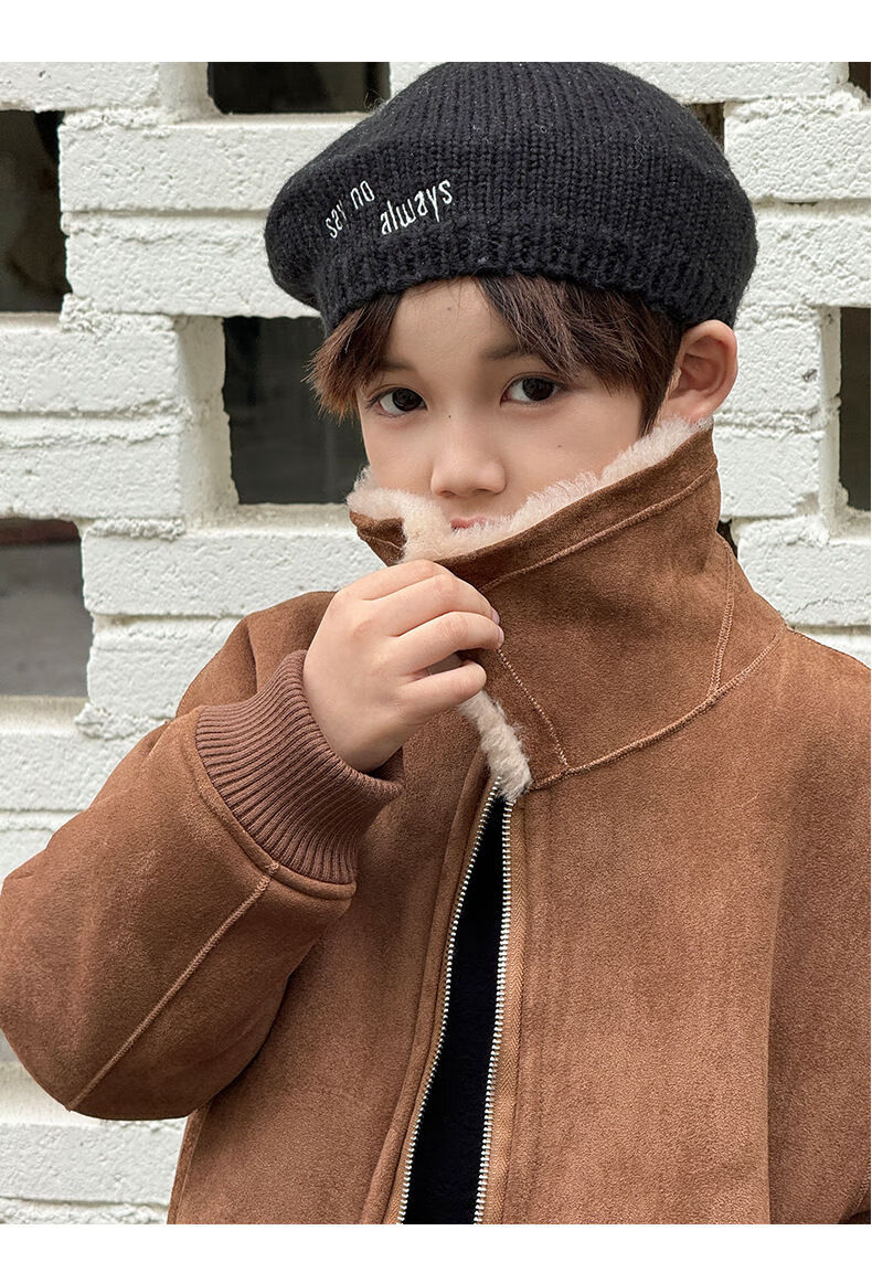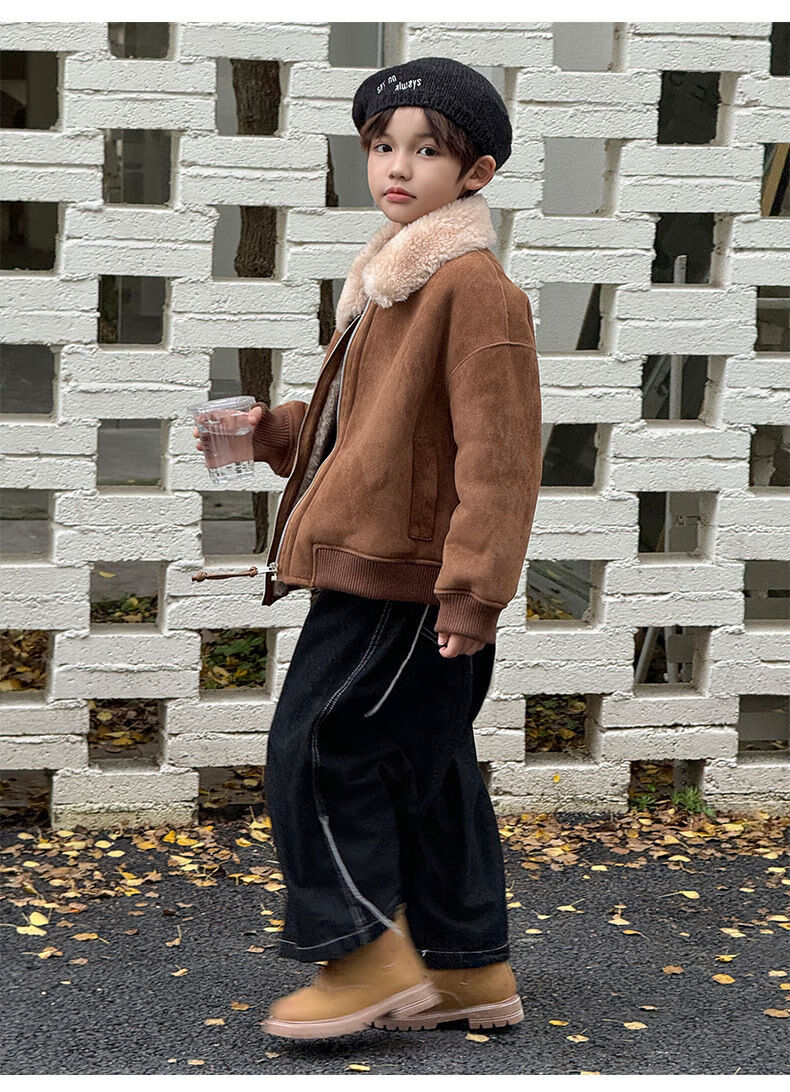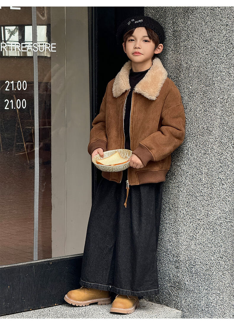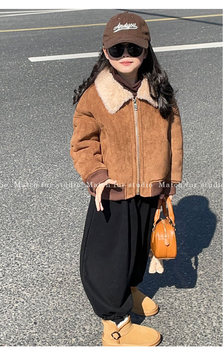 BALA is suitable for purchasing products. Winter boys' coat covered with fur all-in-one machine, medium and large children's brown fur + chocolate leather 110