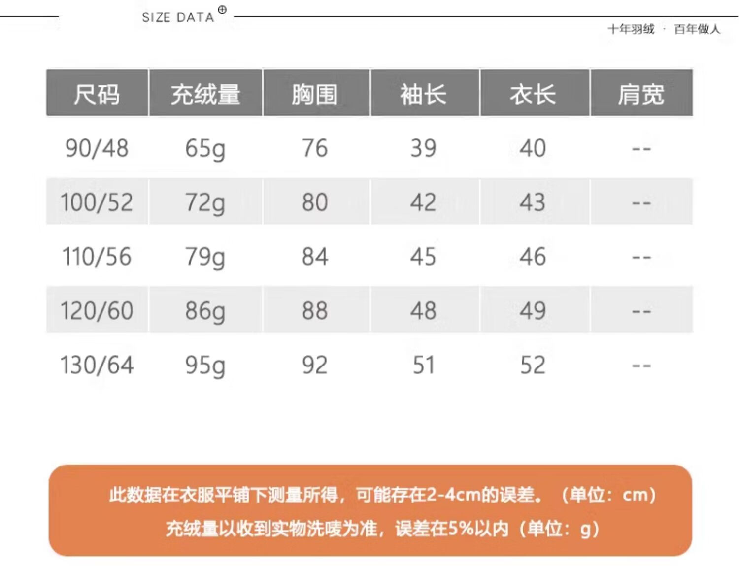 Size (cm) 42 44 46 48 50