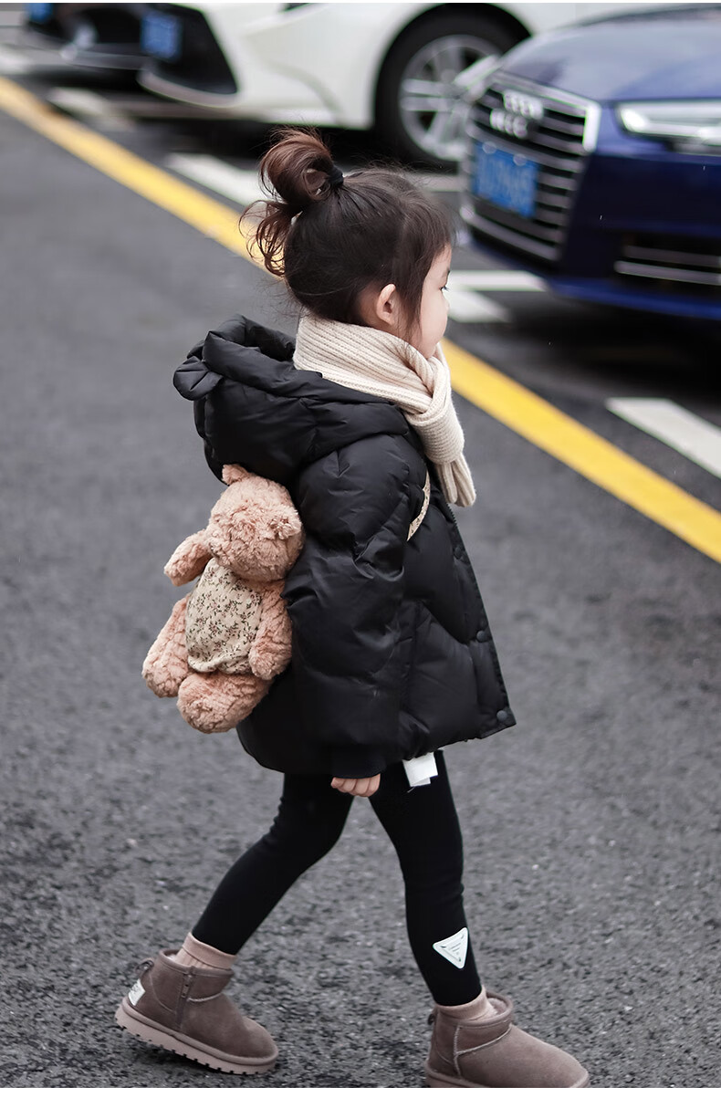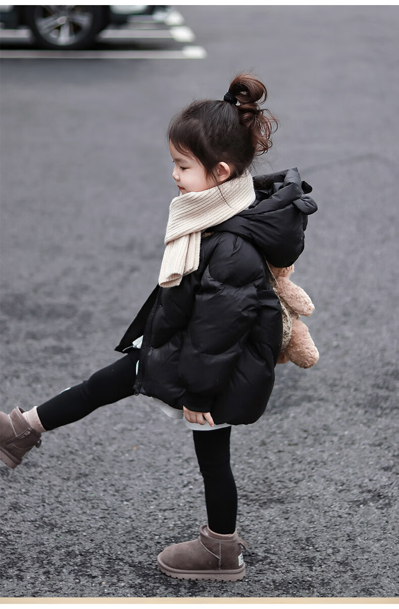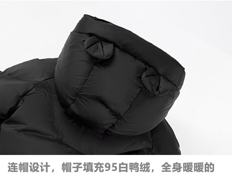 BALA suitable for 95 white duck down 2024 new style thickened hooded down jacket for boys and girls, type A, black 90cm