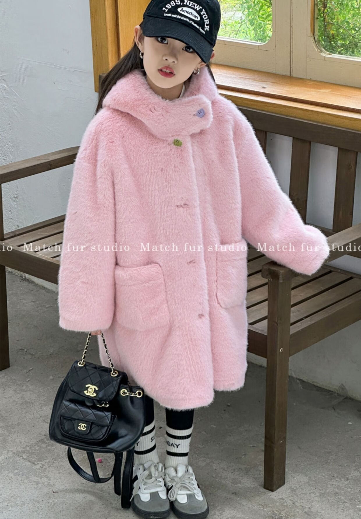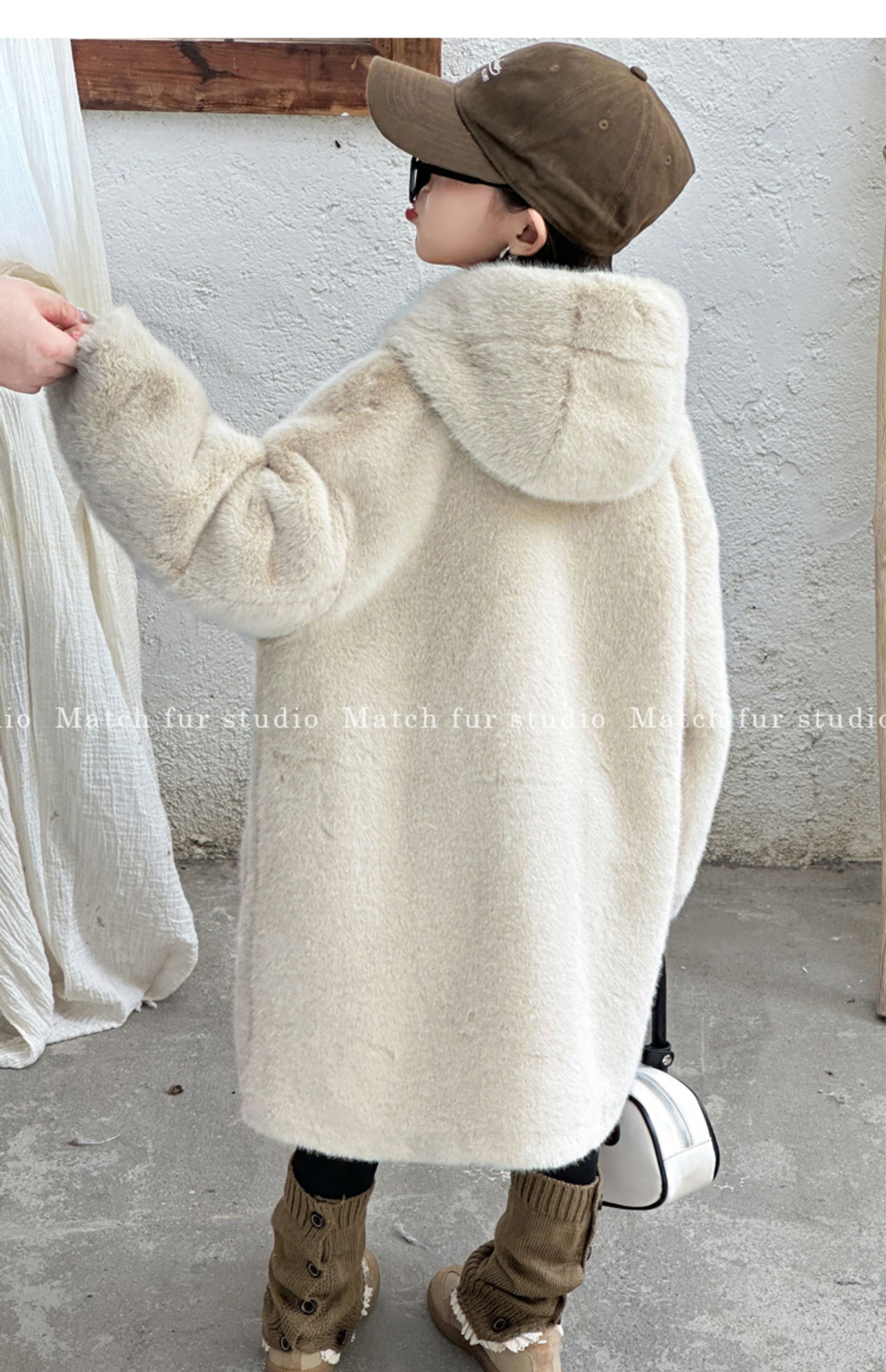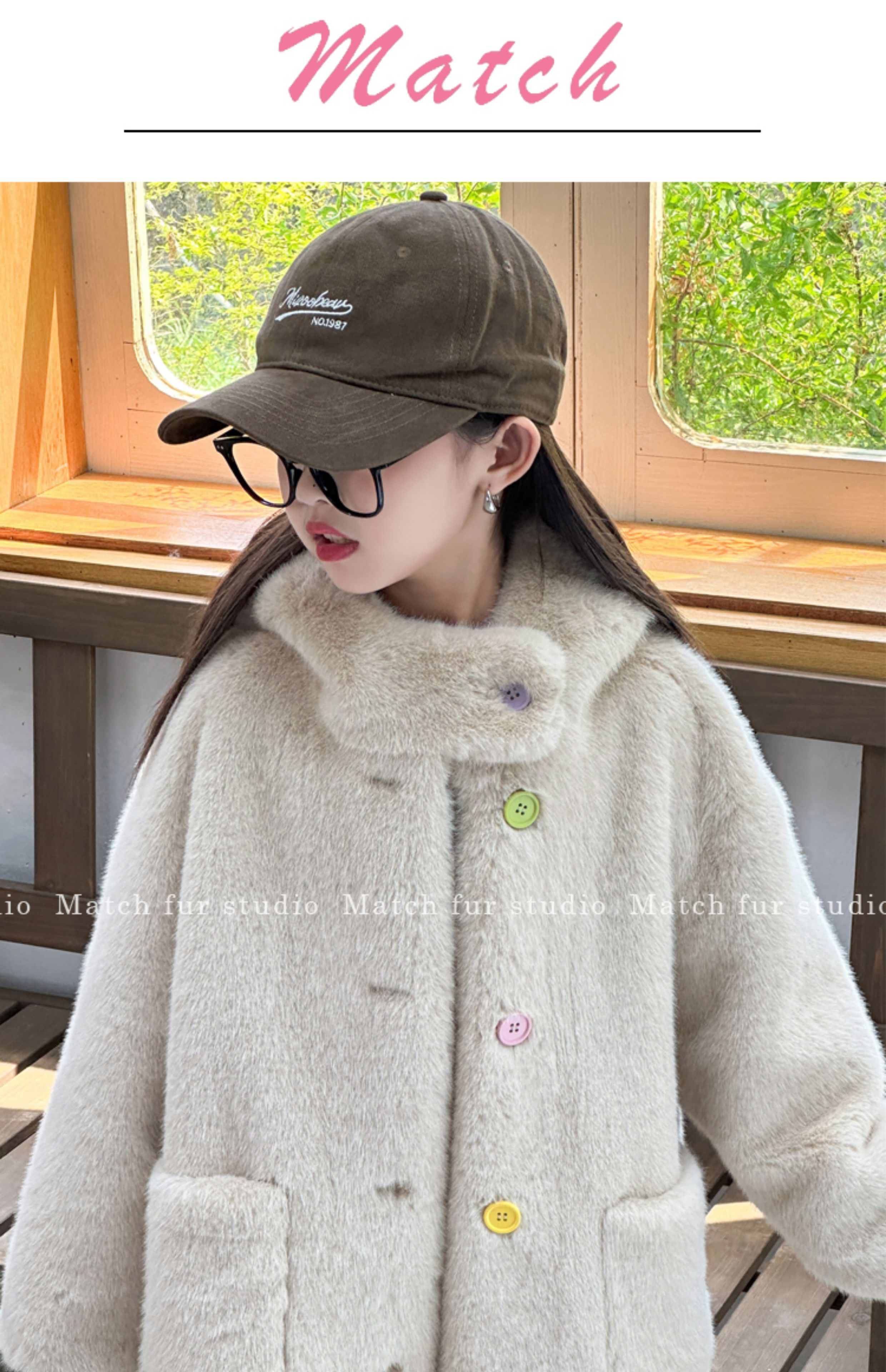 BALA is suitable for autumn and winter new children's fur coat imitation mink fur all-in-one coat for girls, middle and large children, milk tea color 110, recommended height is about 105CM