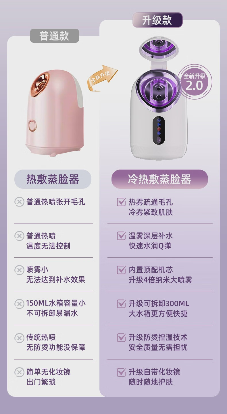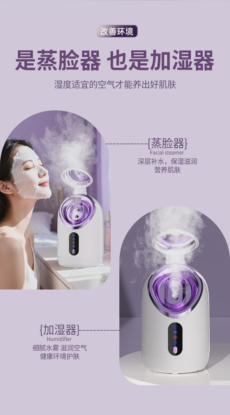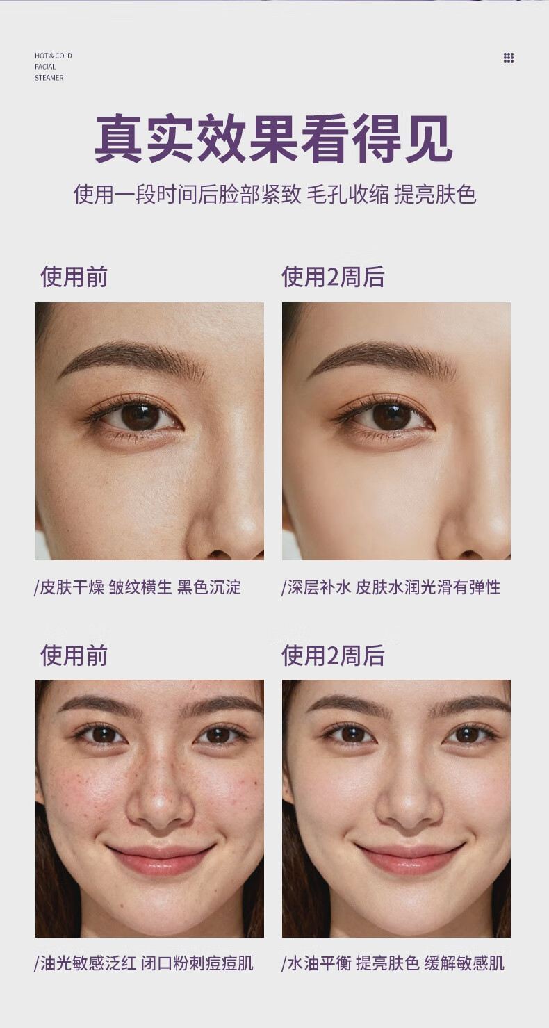 Verisa 2025 new facial steamer household hot and cold dual spray spray facial steamer shrink hair set two-in-one hot and cold facial steamer + blackhead device