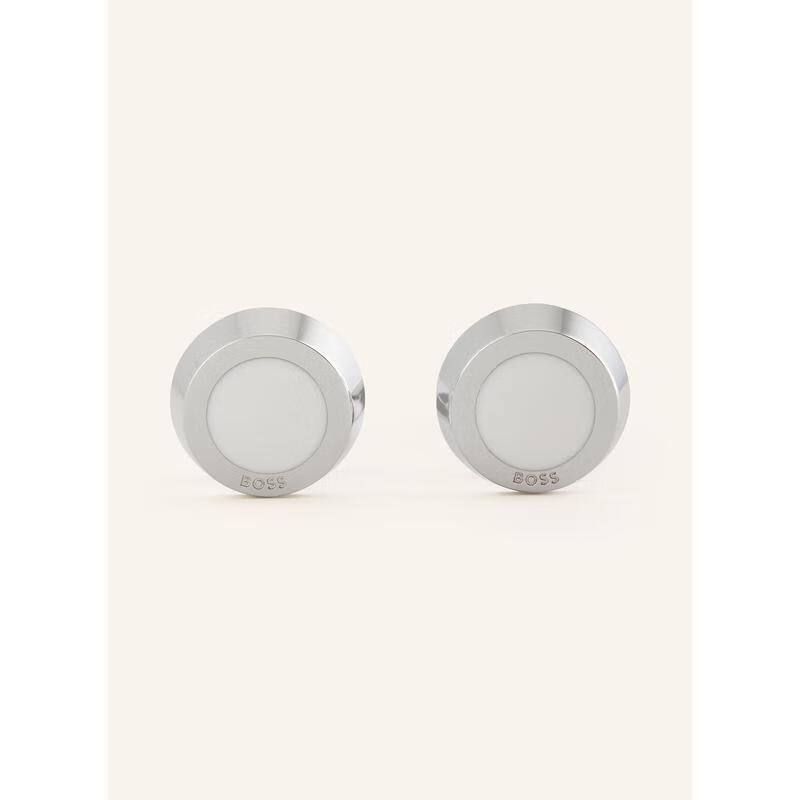 BOSS men's cufflinks fixed decorative metal enamel business banquet accessories simple WHITE / SILVER 2 pieces