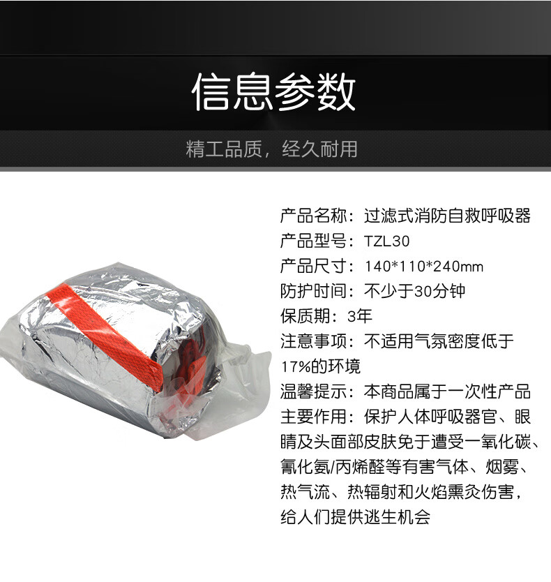 Xing'an Fire Fighting Mask TZL30 Escape Mask Gas Mask Filtering Self-Rescuing Respirator 3C Certification Annual Inspection Package Huan'an 3C Certification (Applicable to Various Places)