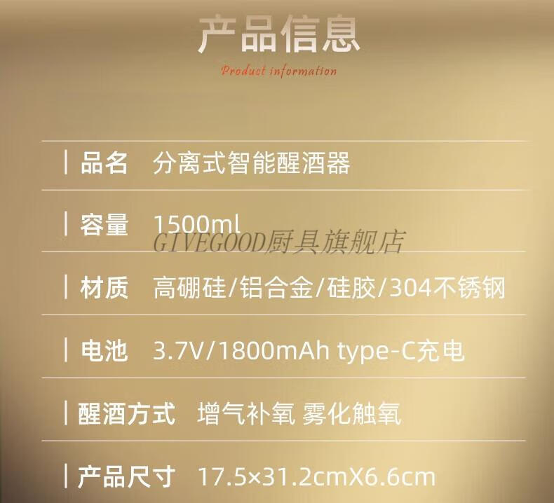 GIVEGOOD German imported quality second generation intelligent atomized electric decanter red wine wine set household wine divider wine bottle replenishment second generation intelligent oxygen supplement atomized decanter warm red