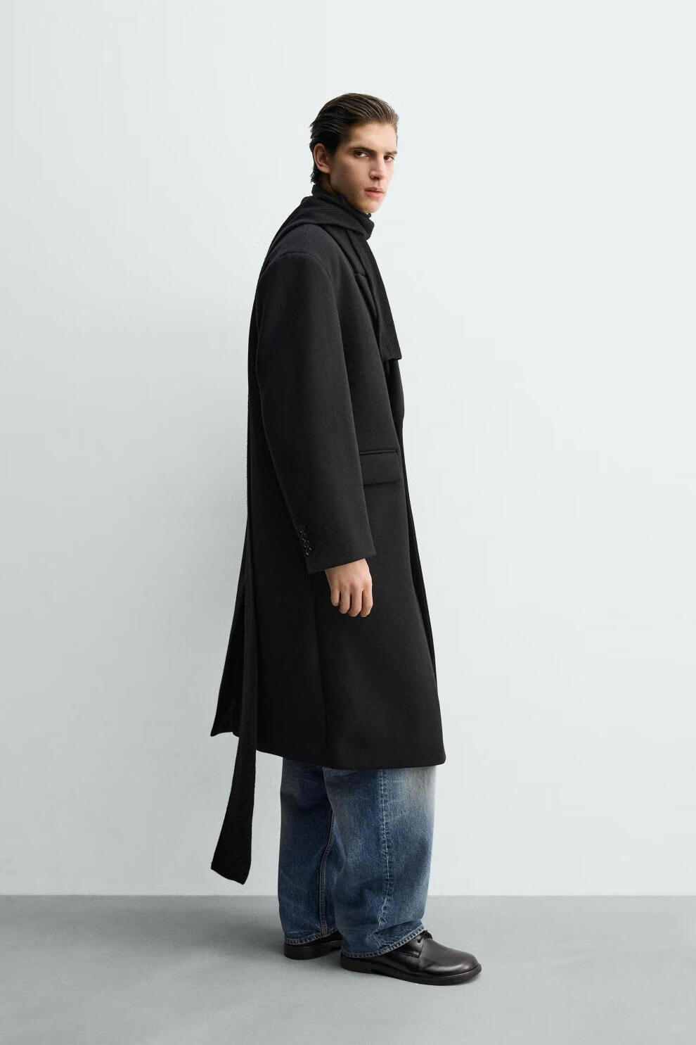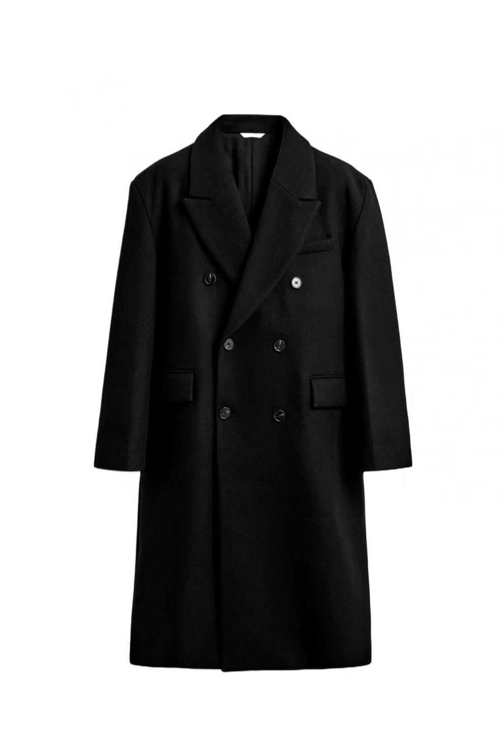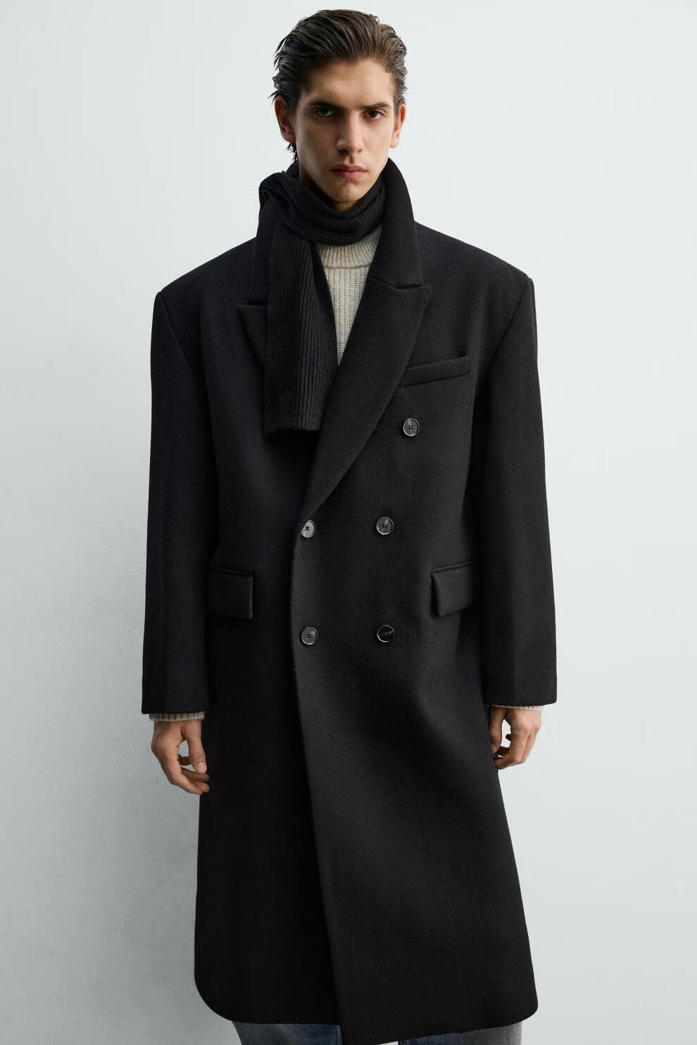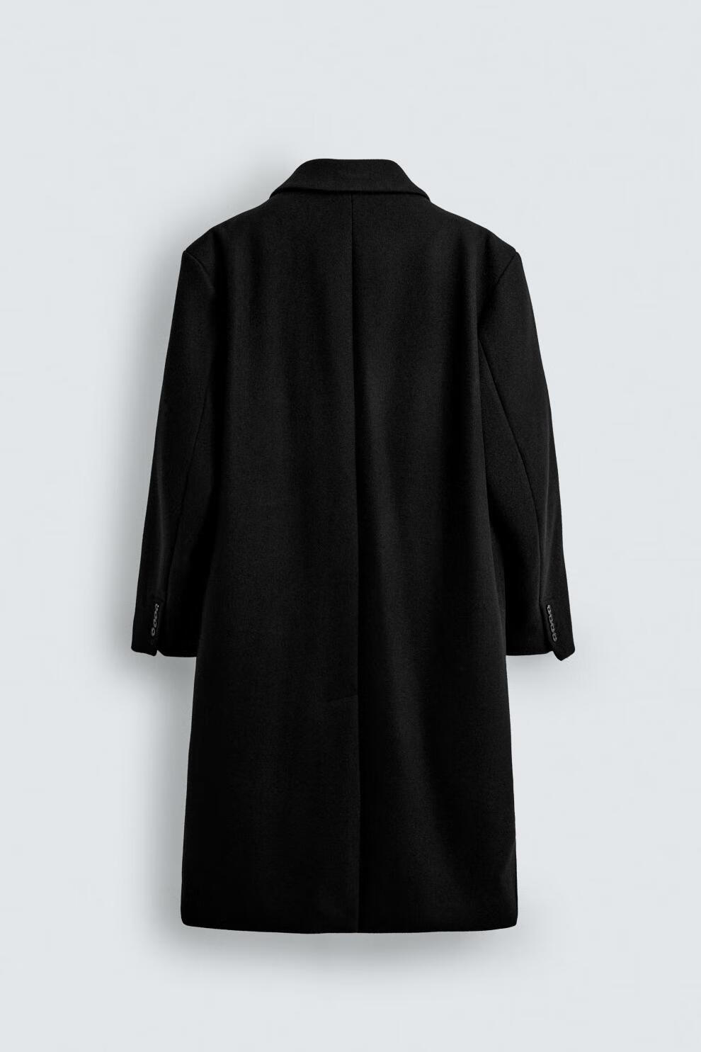 ZARA2025 new winter style men's blended loose double-breasted long coat 5854306 800 official authentic black S (175/92A)