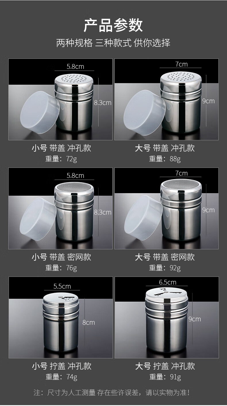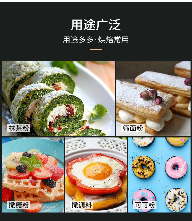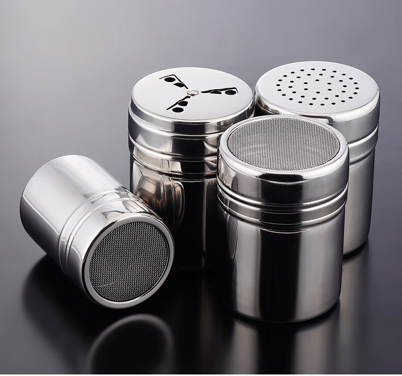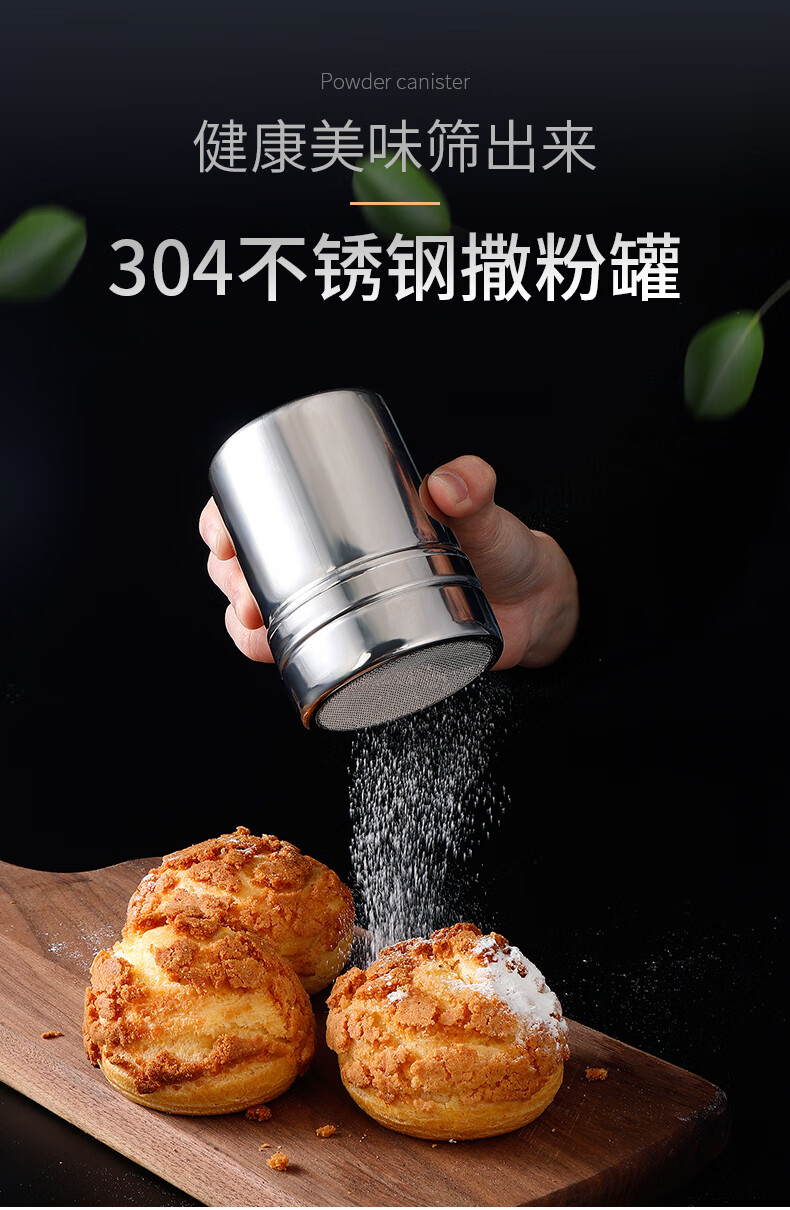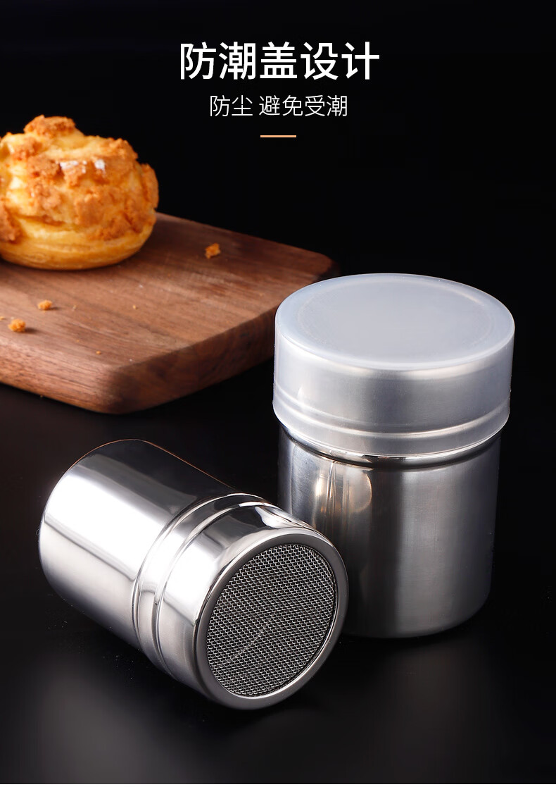 Tuojin imported high-end models of the same quality from Germany. Special offer. Spreading tin sifter. Sugar powder sieve. Moisture-proof stainless steel surface. Small dusting tin with punched screw cap (with moisture-proof cover).