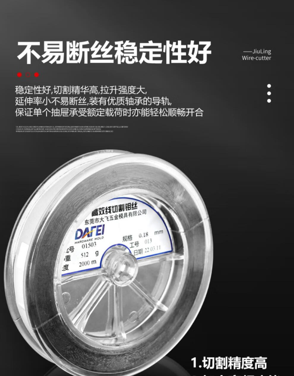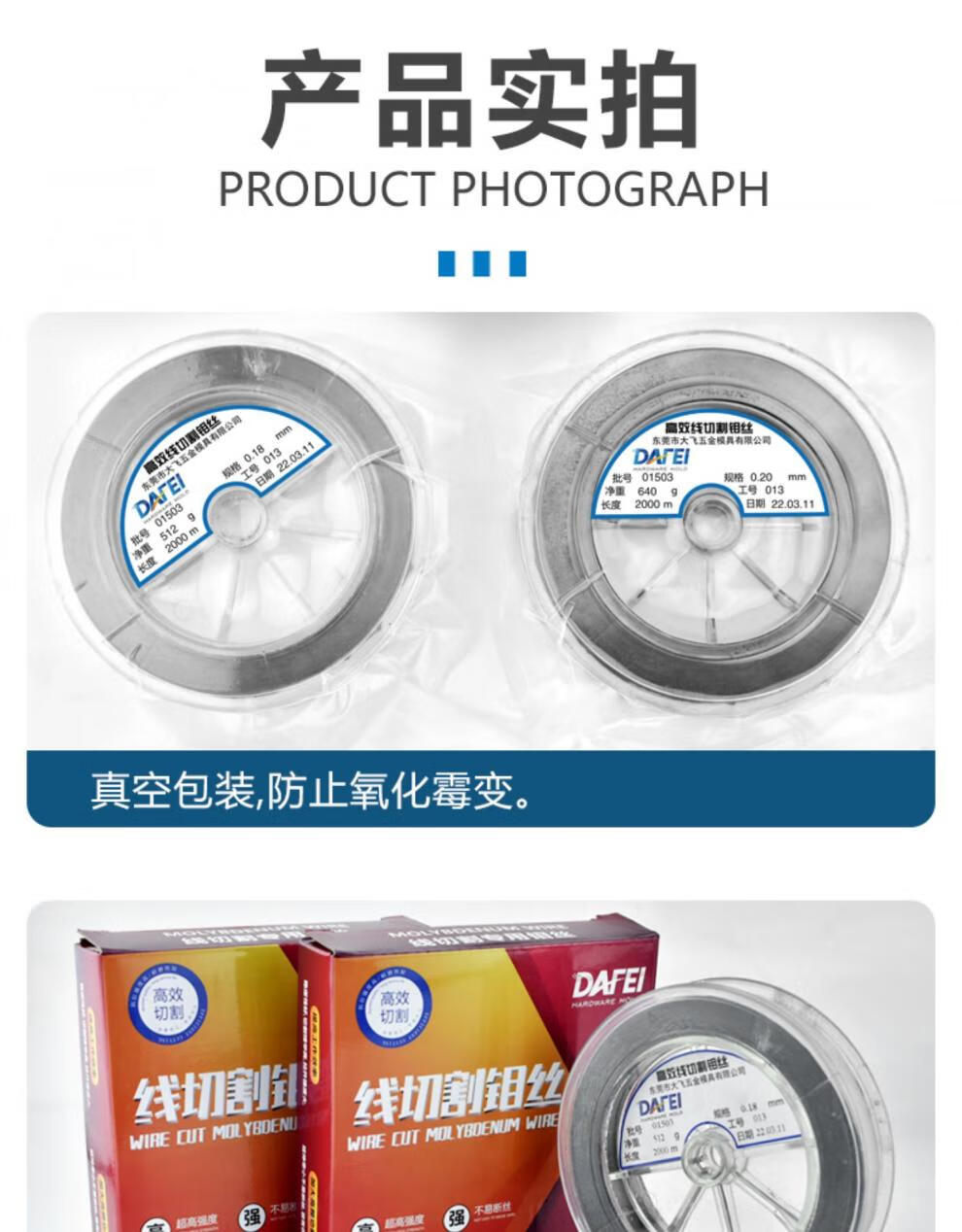 Dafei molybdenum wire cutting wire cutting 0.182000 meters fixed length 0.2 0.16 full meter Dafei 0.18mm fixed length 2400 meters