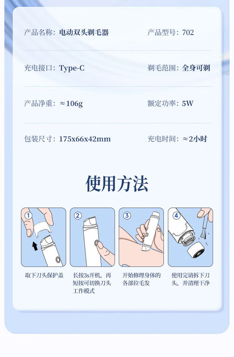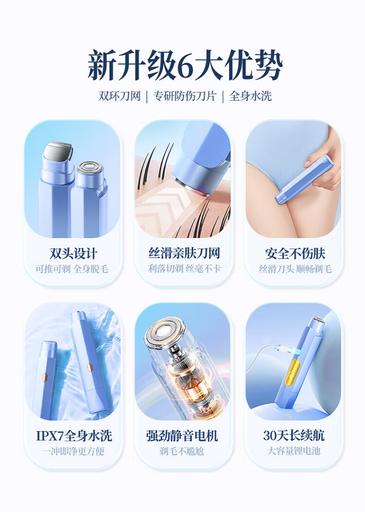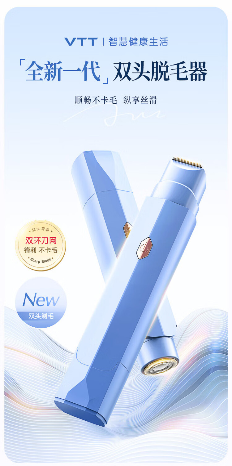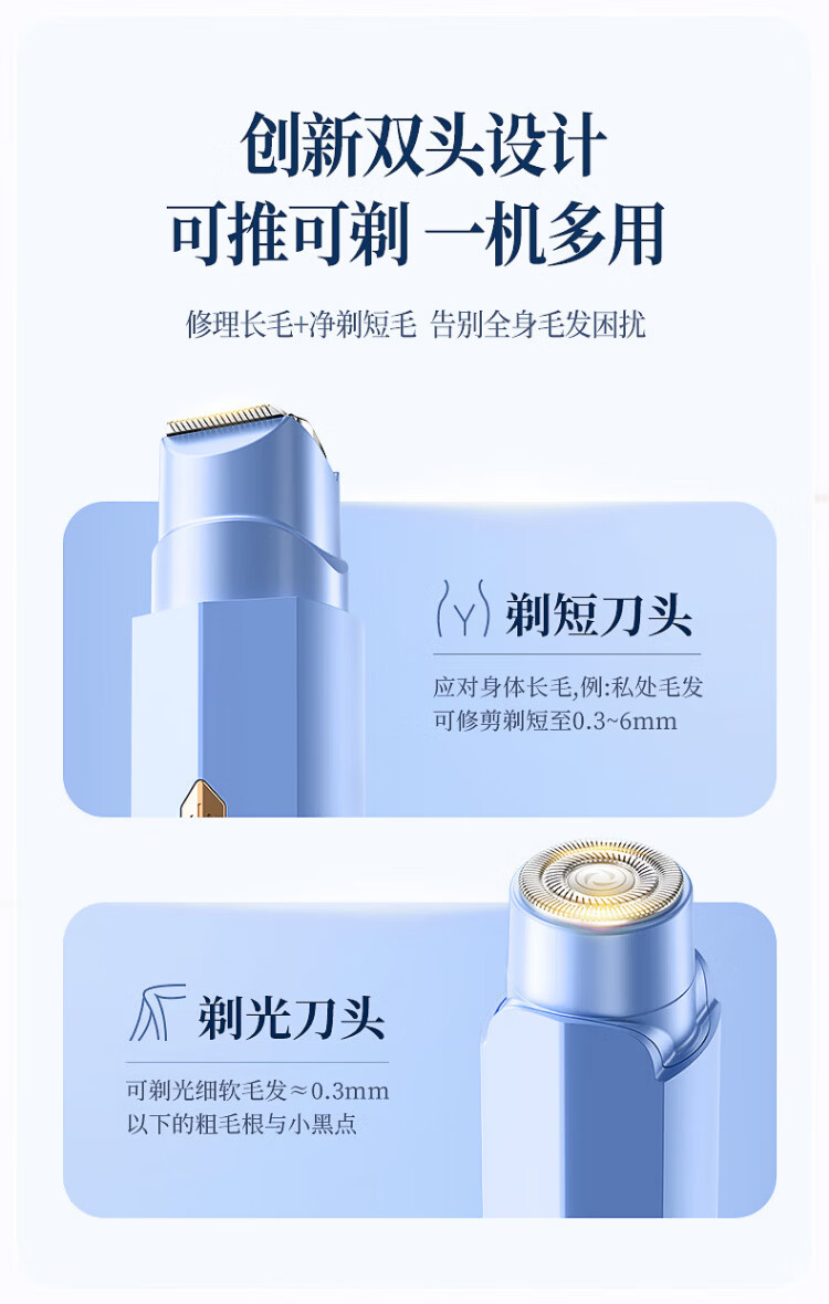 VTT Germany electric double-head shaver private part shaving artifact for men and women bikini shaver pubic hair removal instrument armpit hair lip hair leg hair trimmer adult beige top matching set private use / double head washable / safe without hair jam CCTV CCTV commercial broadcast