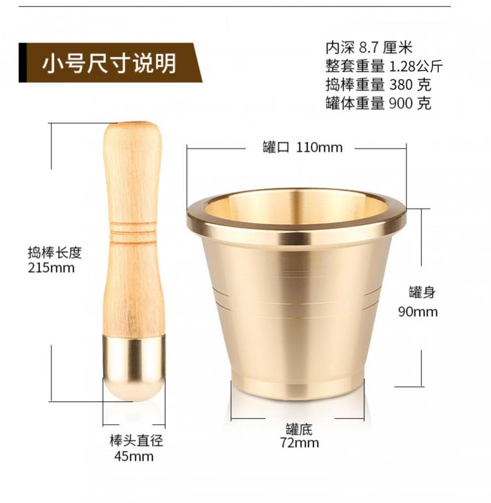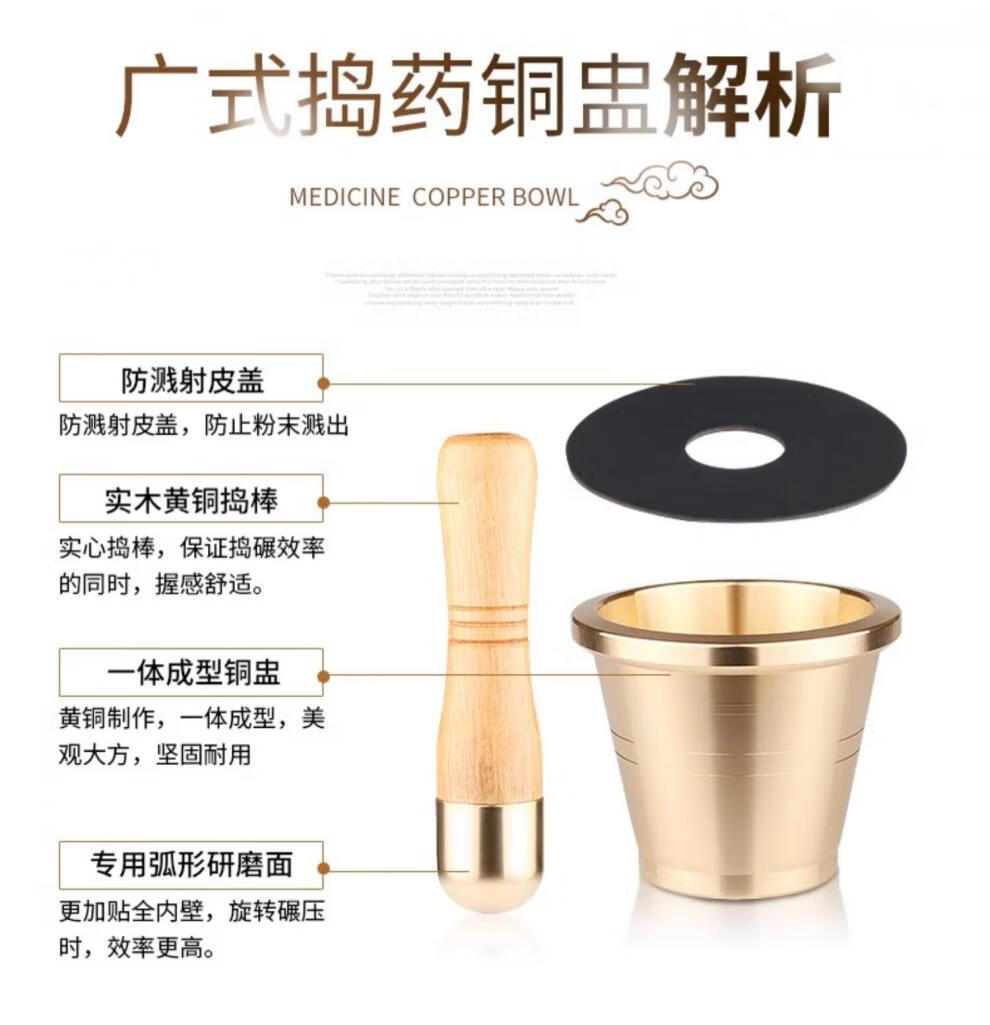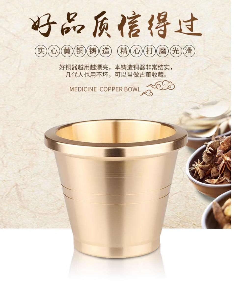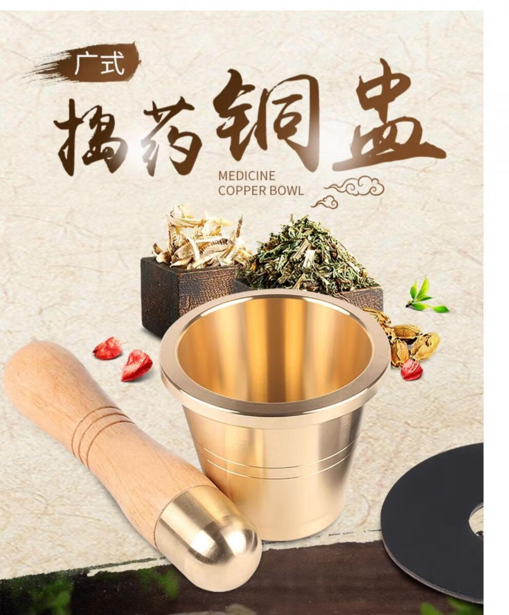 CLCEY retro Cantonese style copper cup, pure copper medicine jar, garlic masher, garlic masher, Chinese medicine pounder, medicine cup, medicine mortar, medicine jar, small leather cover.