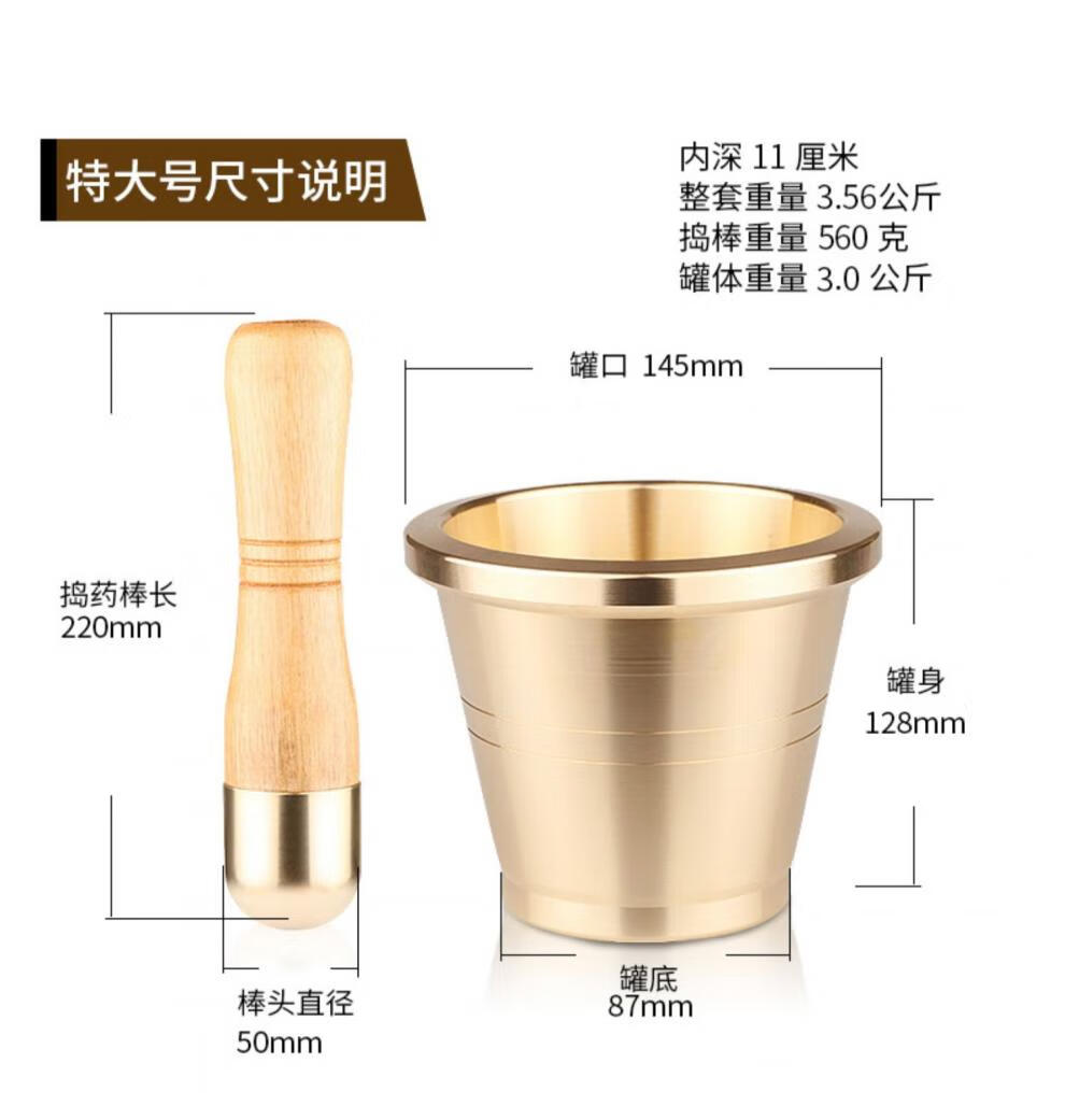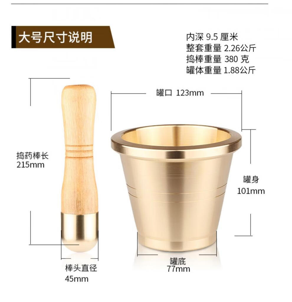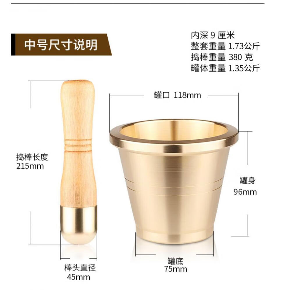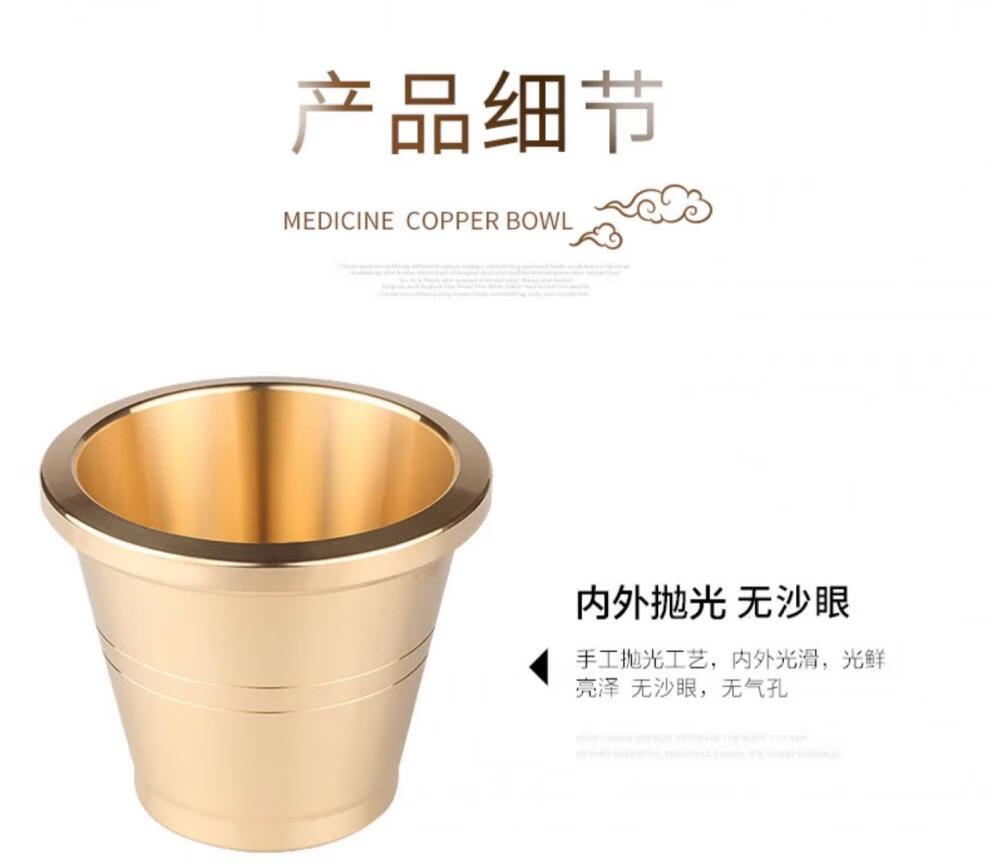 CLCEY retro Cantonese style copper cup, pure copper medicine jar, garlic masher, garlic masher, Chinese medicine pounder, medicine cup, medicine mortar, medicine jar, small leather cover.