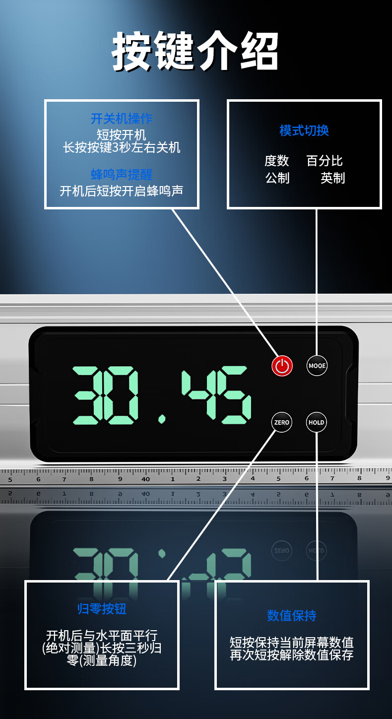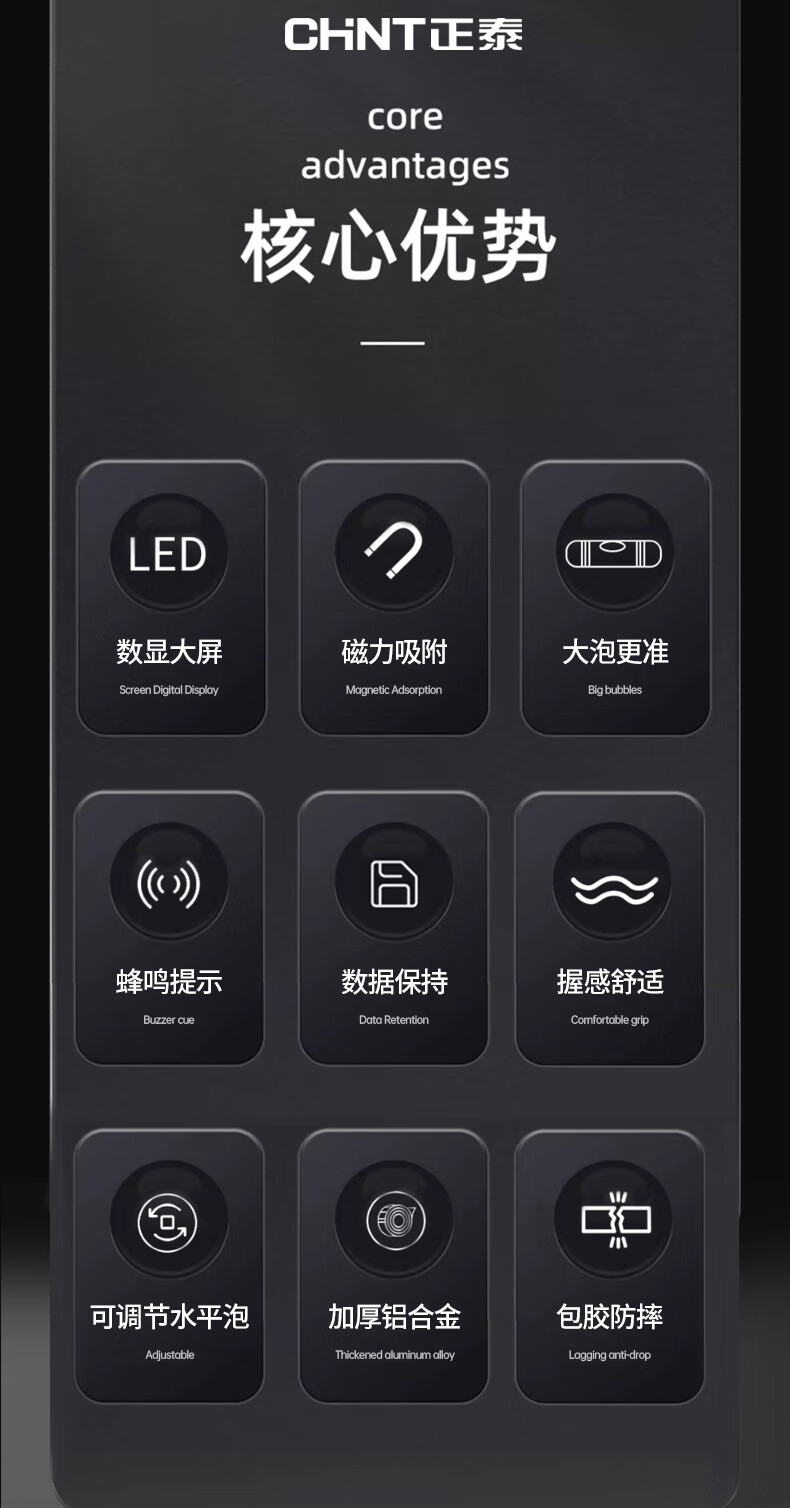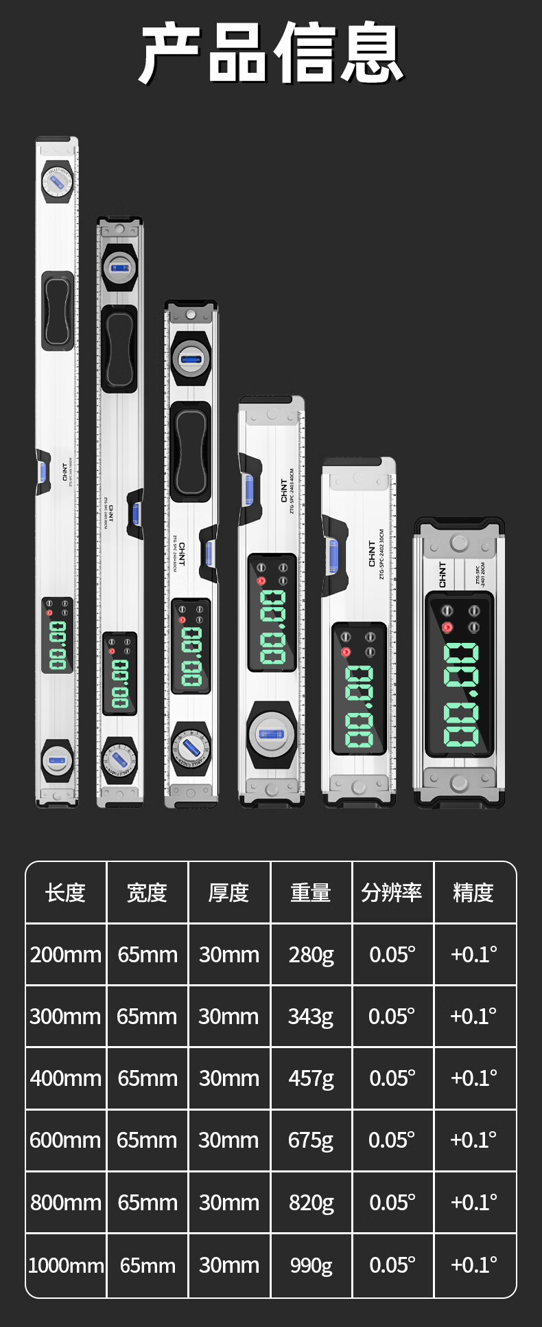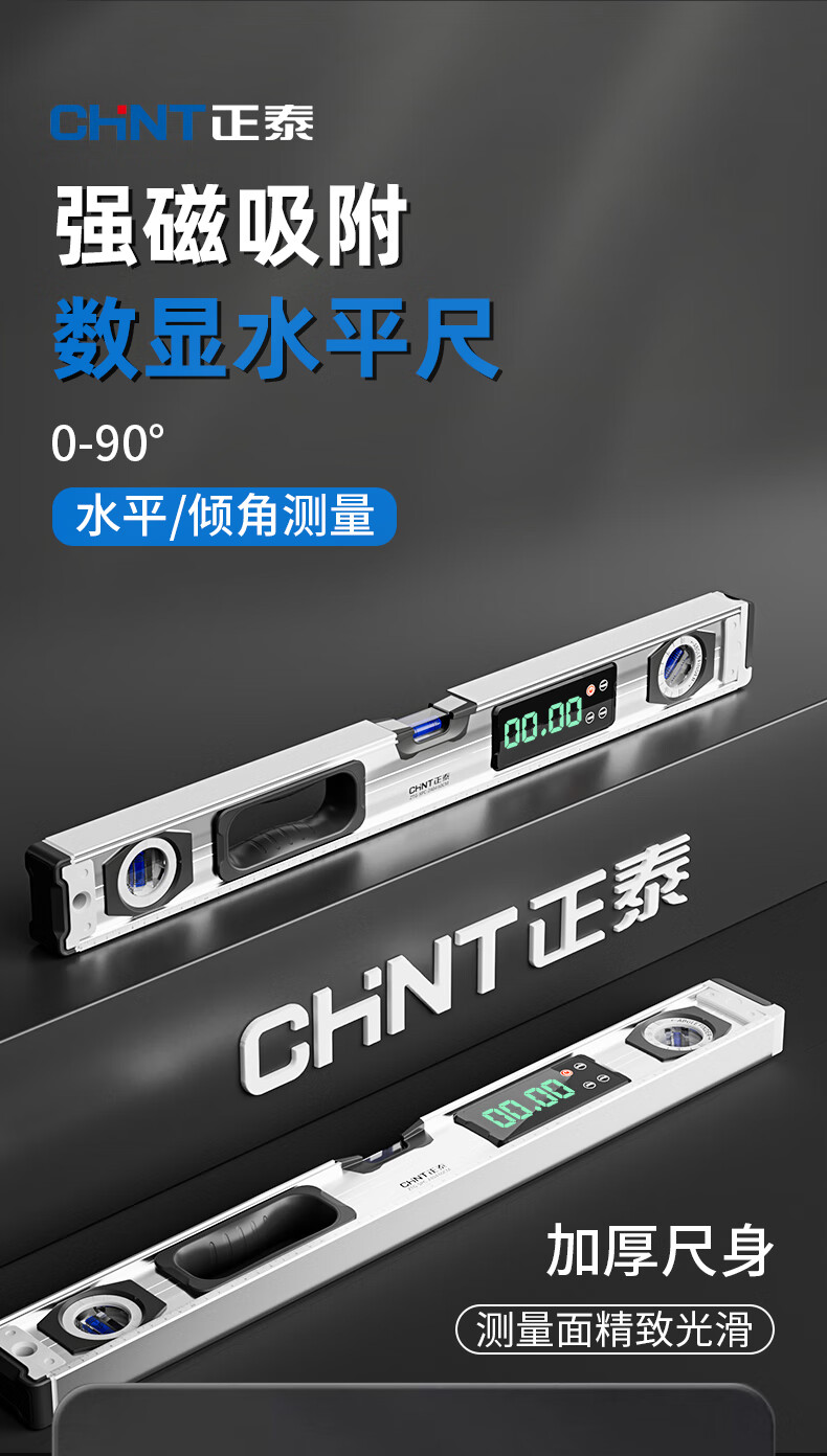 Chint (CHNT) high-precision home inspection tools electronic level instrument ruler detection ruler angle measuring ruler 1000MM strong magnetic digital display_180 high-definition large blister thickened aluminum