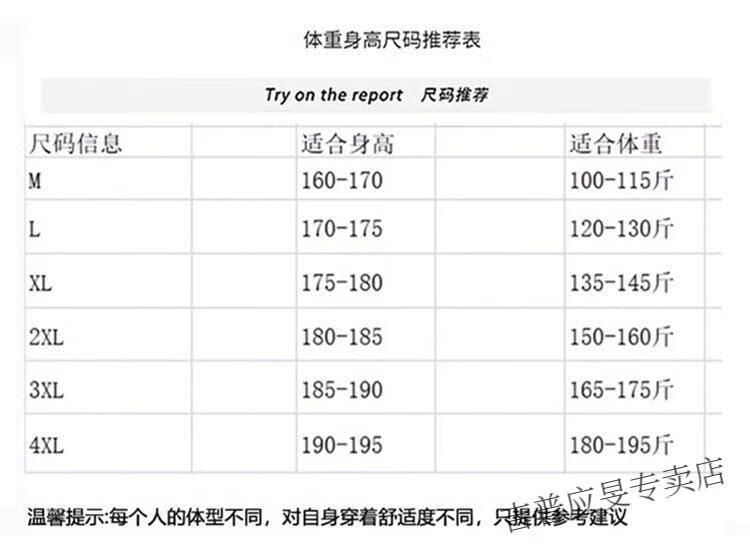 China (cm) 165 / 88-90 170 / 96-98 175 / 108-110 180 / 118-122 185 / 126-130