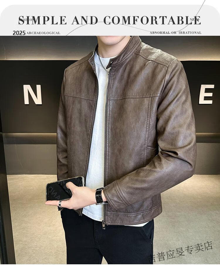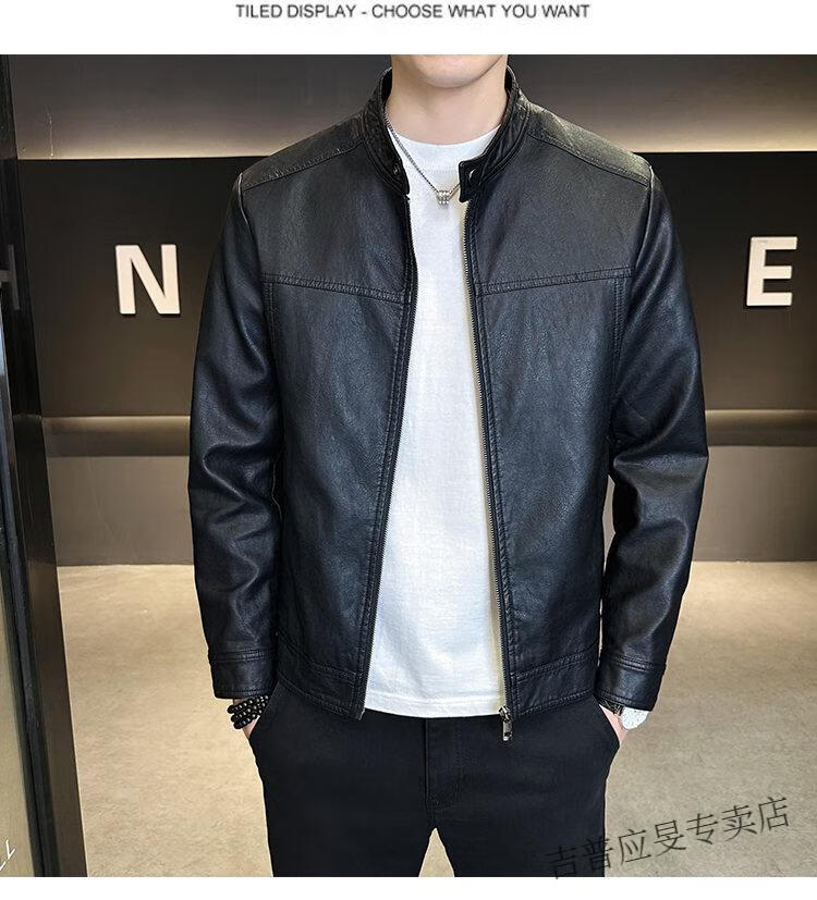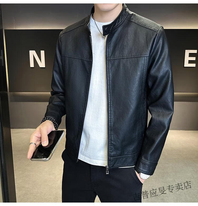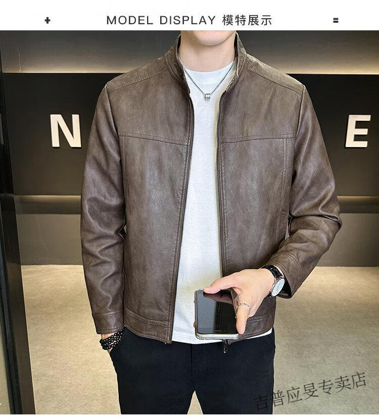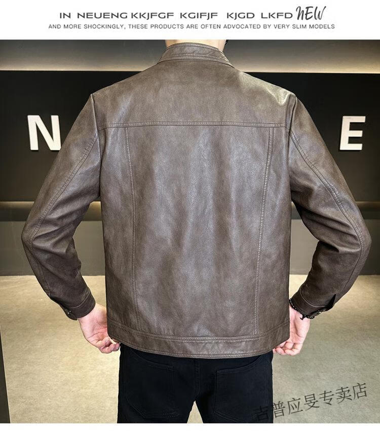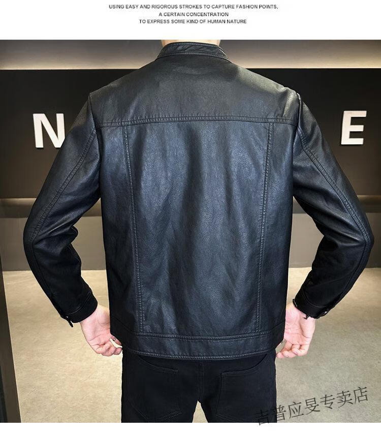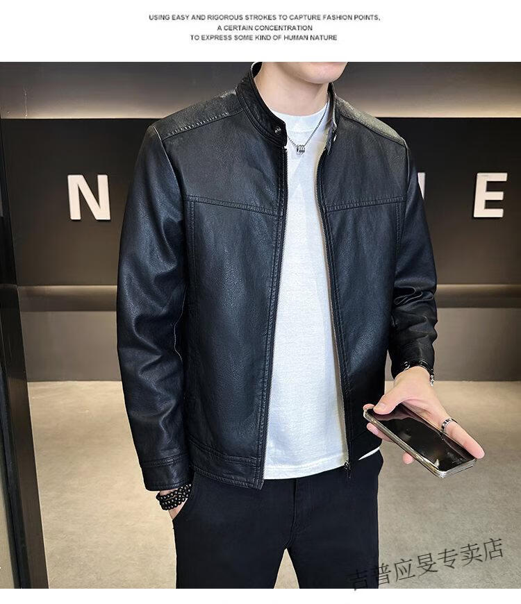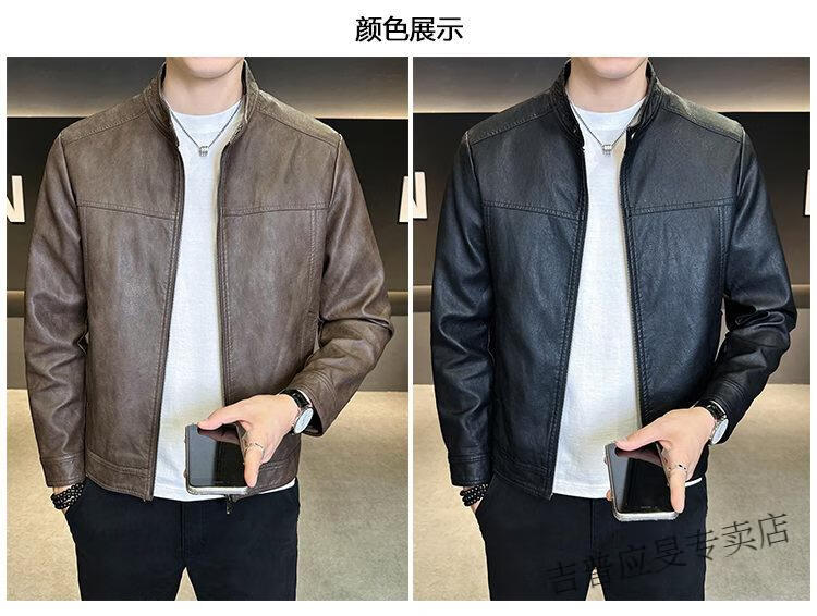 JEEP SPIRIT Velvet Leather Men's Jacket Autumn and Winter 2025 New Trendy Brand Handsome Slim Stand Collar Thickened Warm Leather Jacket Men Black Velvet M