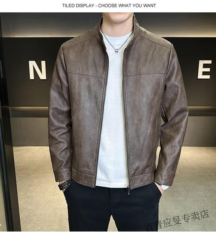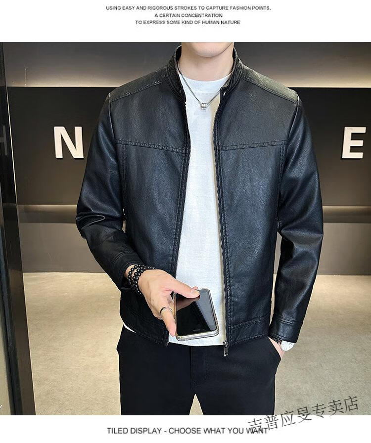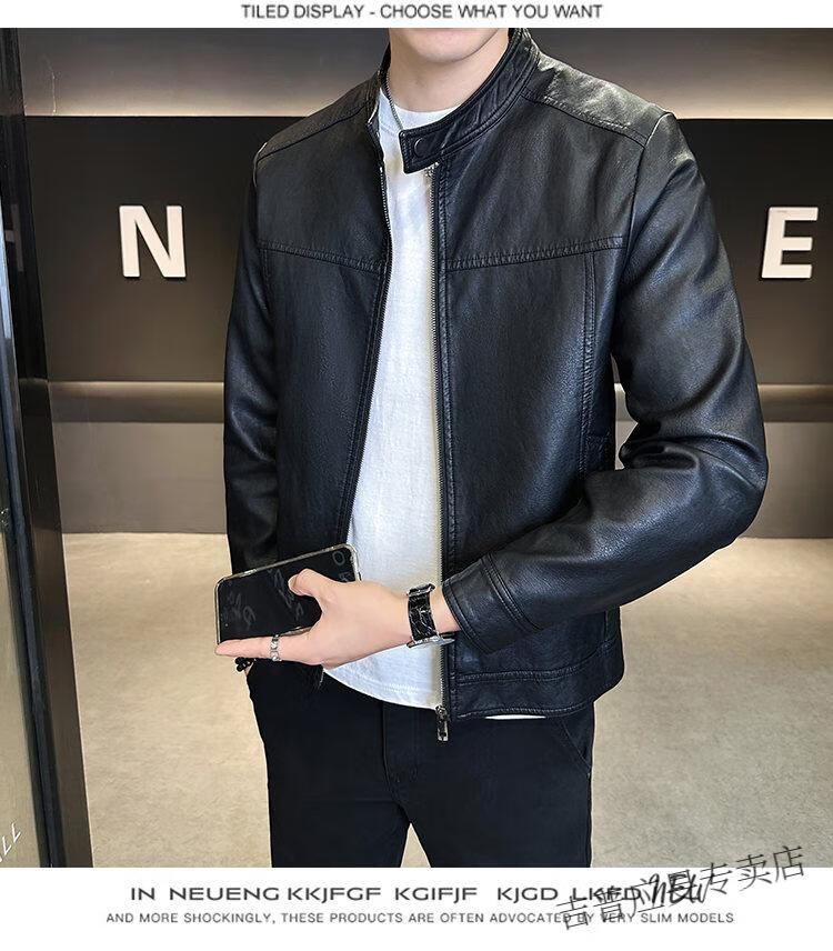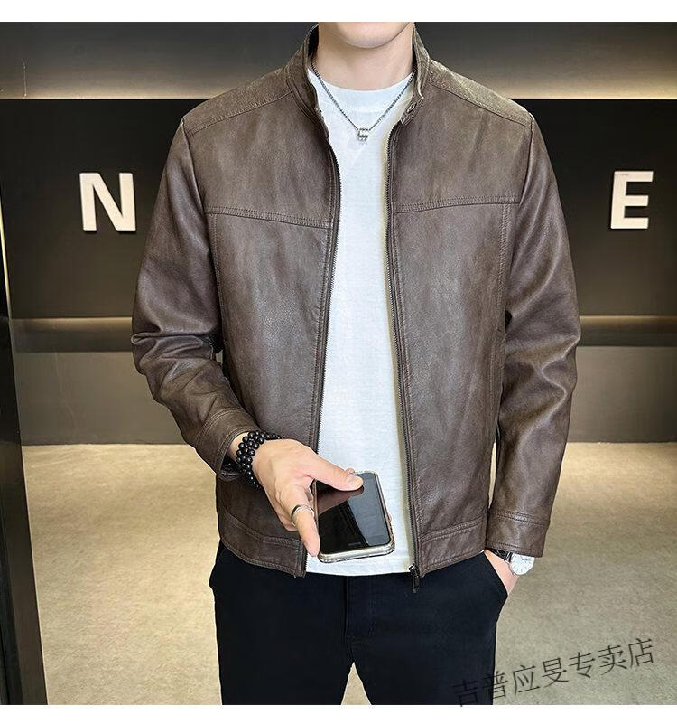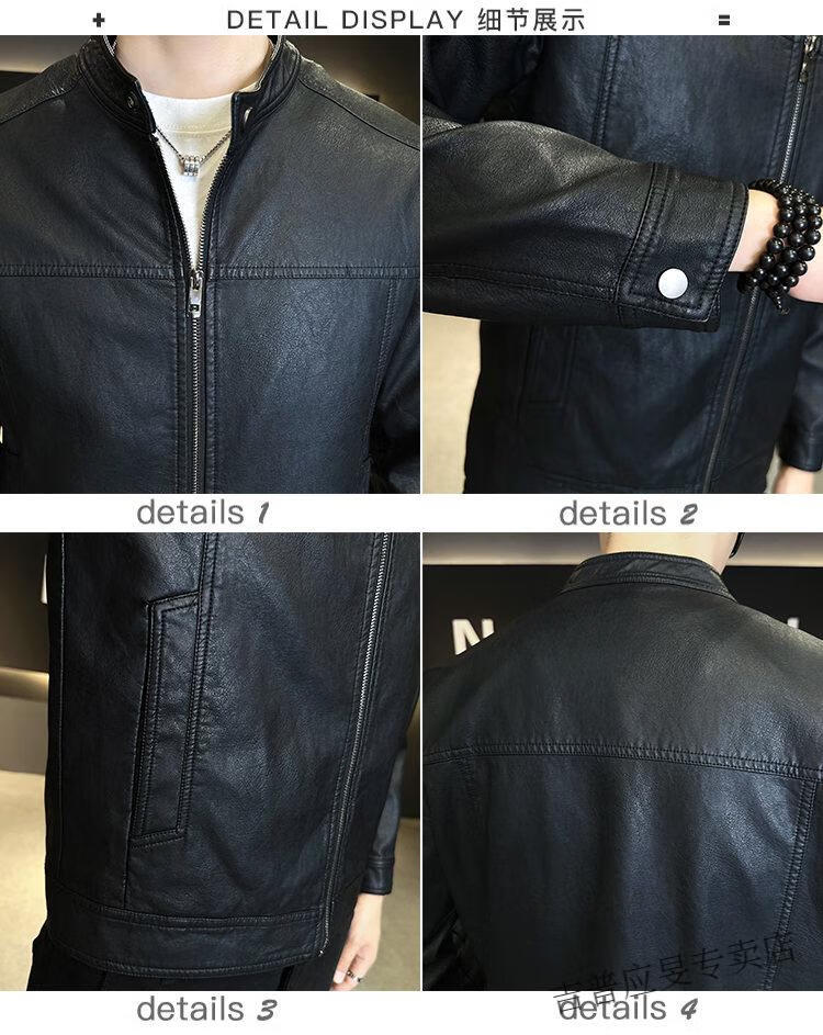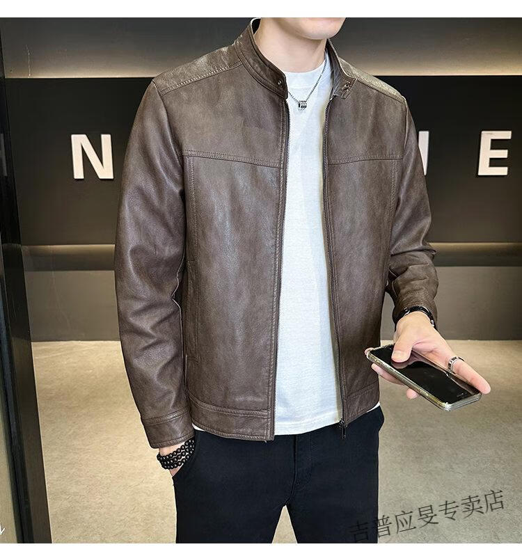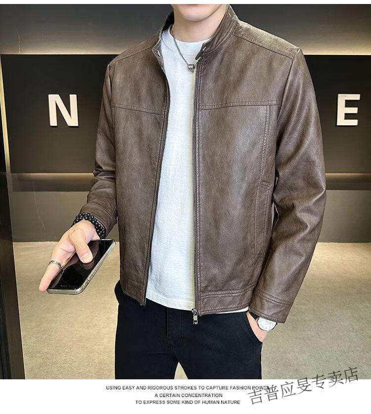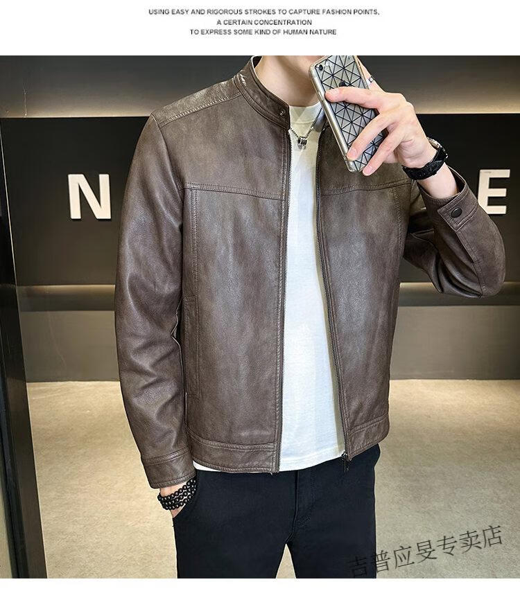 JEEP SPIRIT Velvet Leather Men's Jacket Autumn and Winter 2025 New Trendy Brand Handsome Slim Stand Collar Thickened Warm Leather Jacket Men Black Velvet M