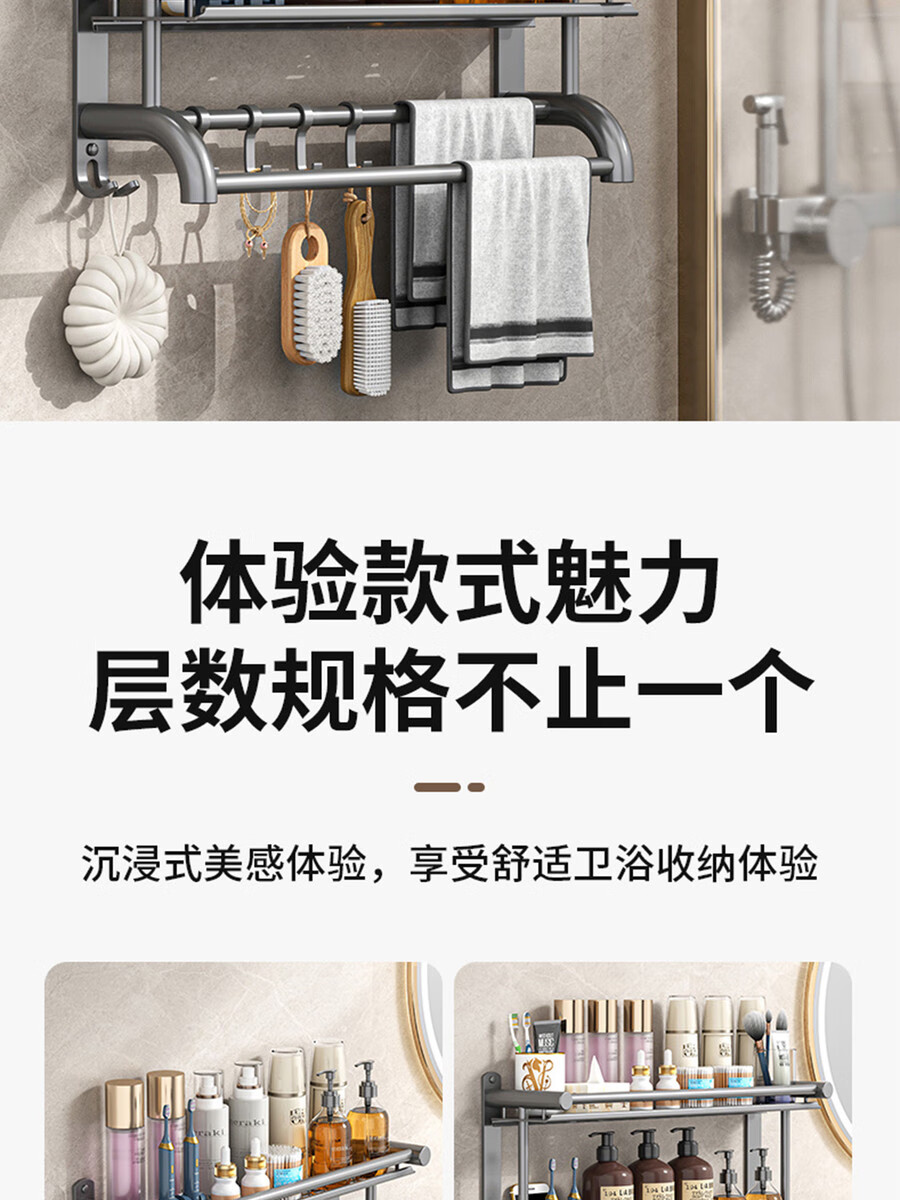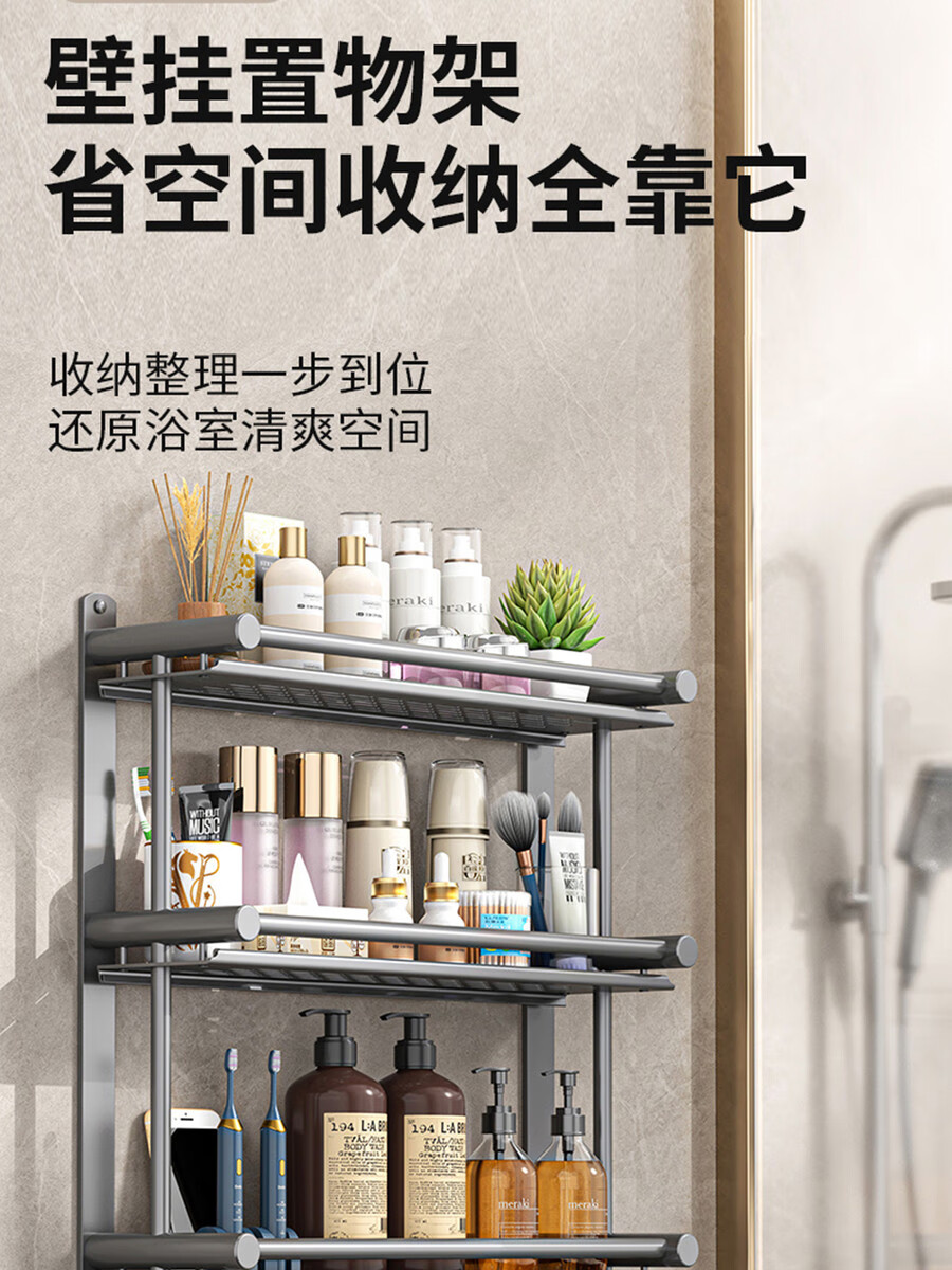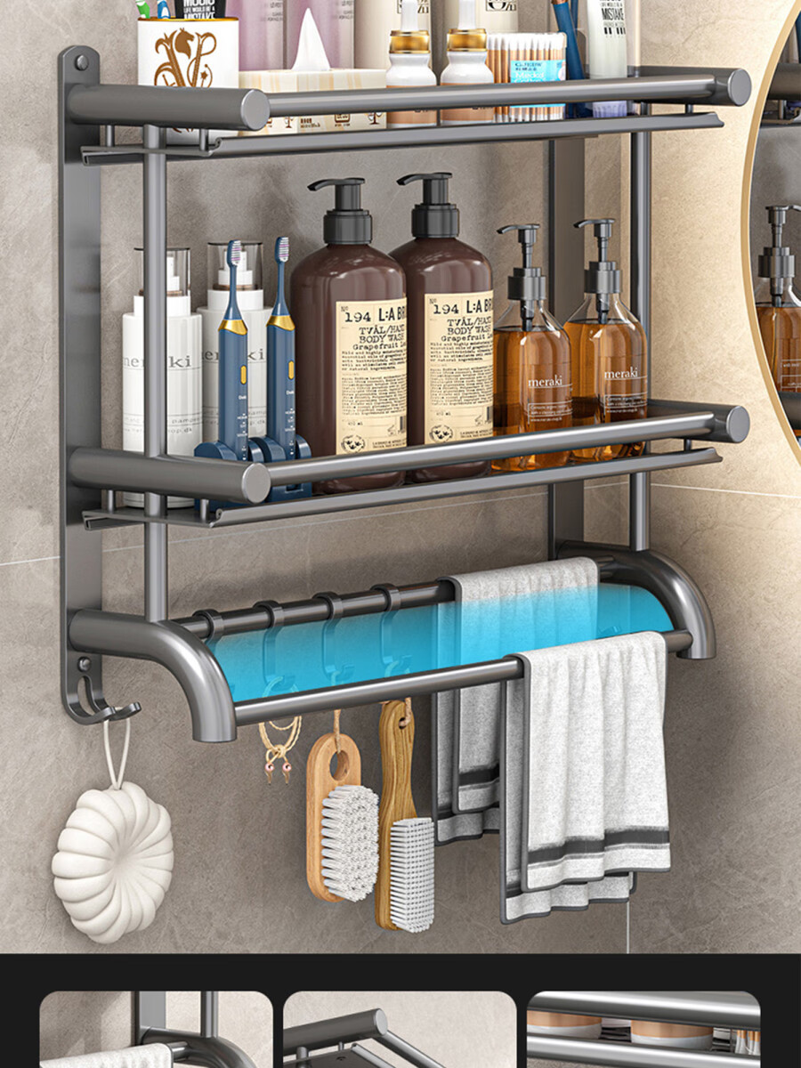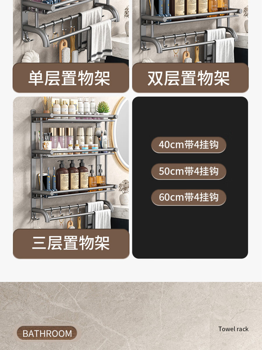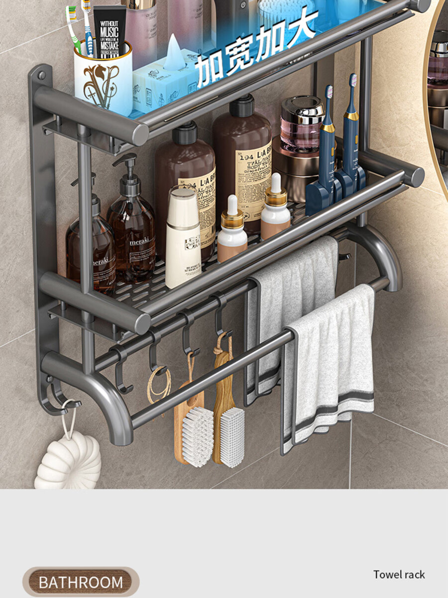 Fantasy towel rack bathroom punch-free bathroom toilet toilet rack wall-mounted stainless steel bath towel storage integrated three-layer 50CM all steel/gun gray thickened