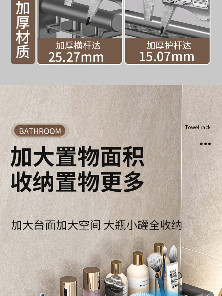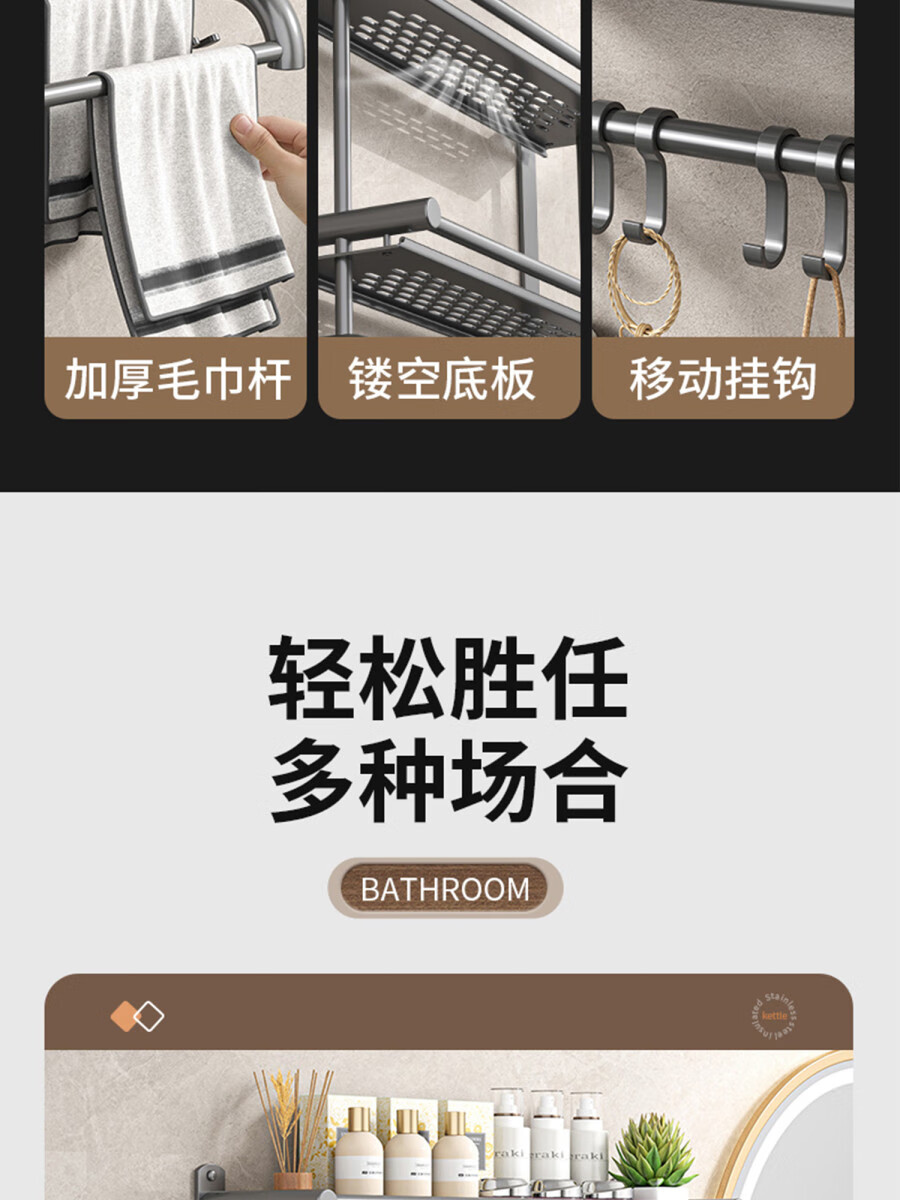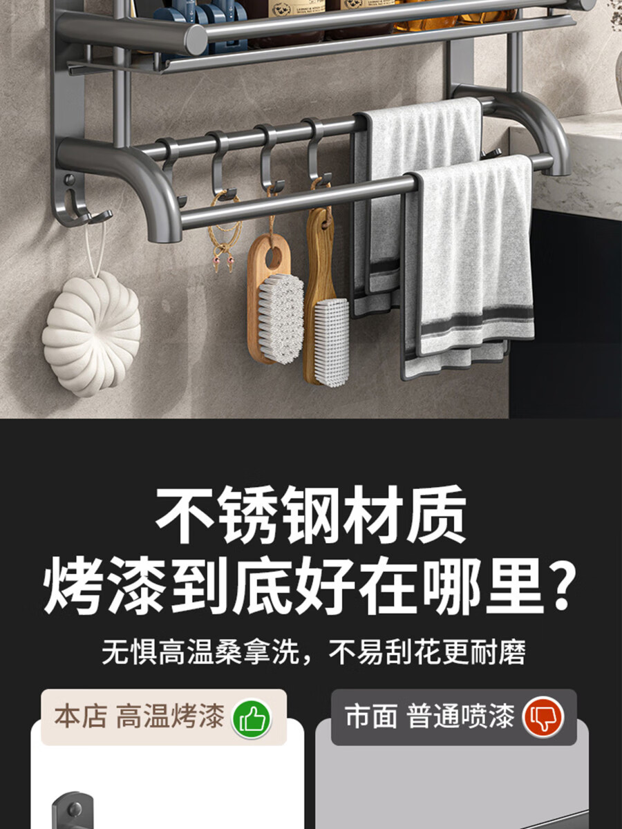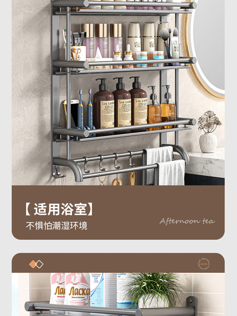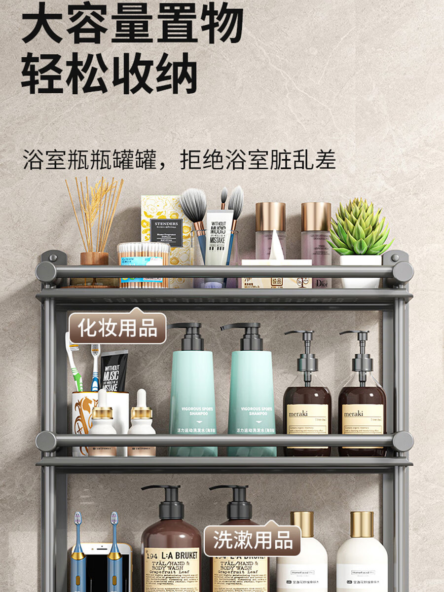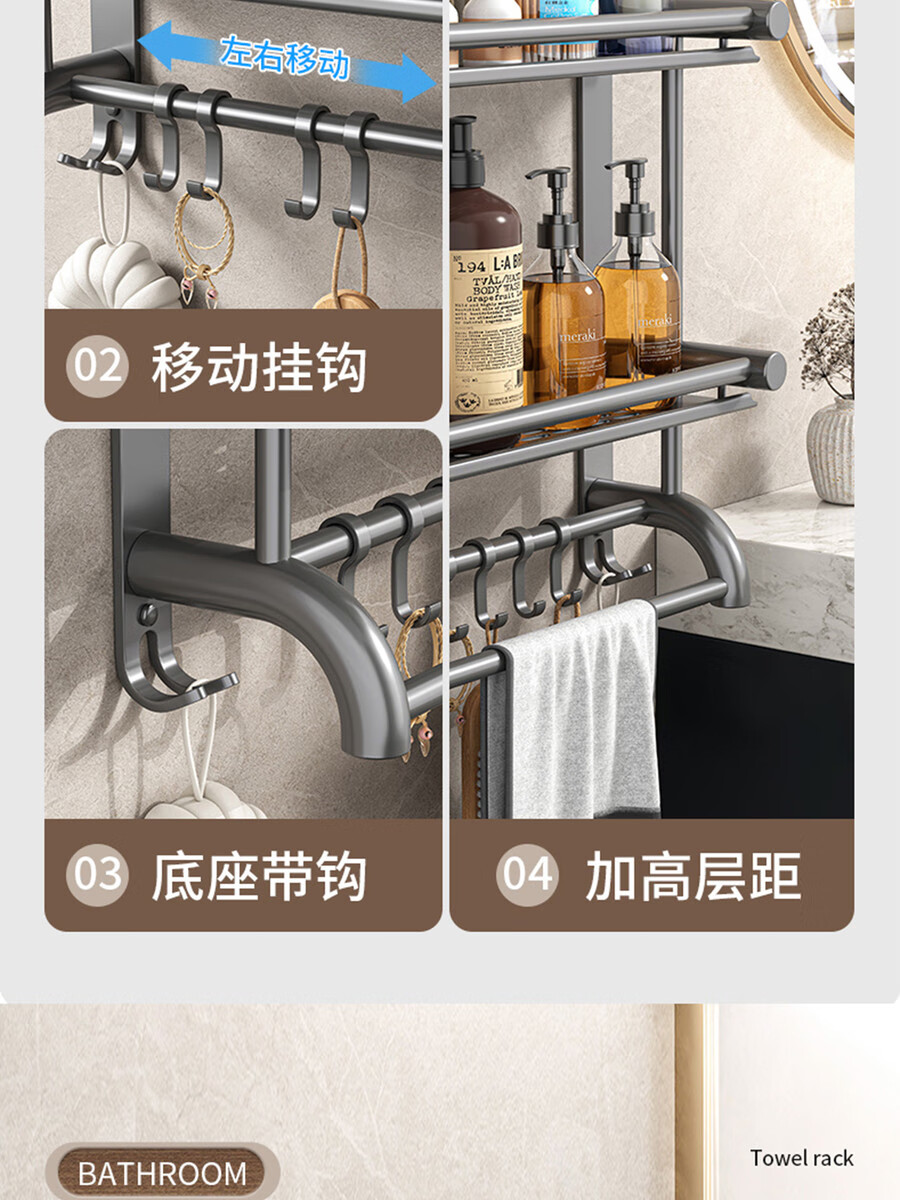 Fantasy towel rack bathroom punch-free bathroom toilet toilet rack wall-mounted stainless steel bath towel storage integrated three-layer 50CM all steel/gun gray thickened
