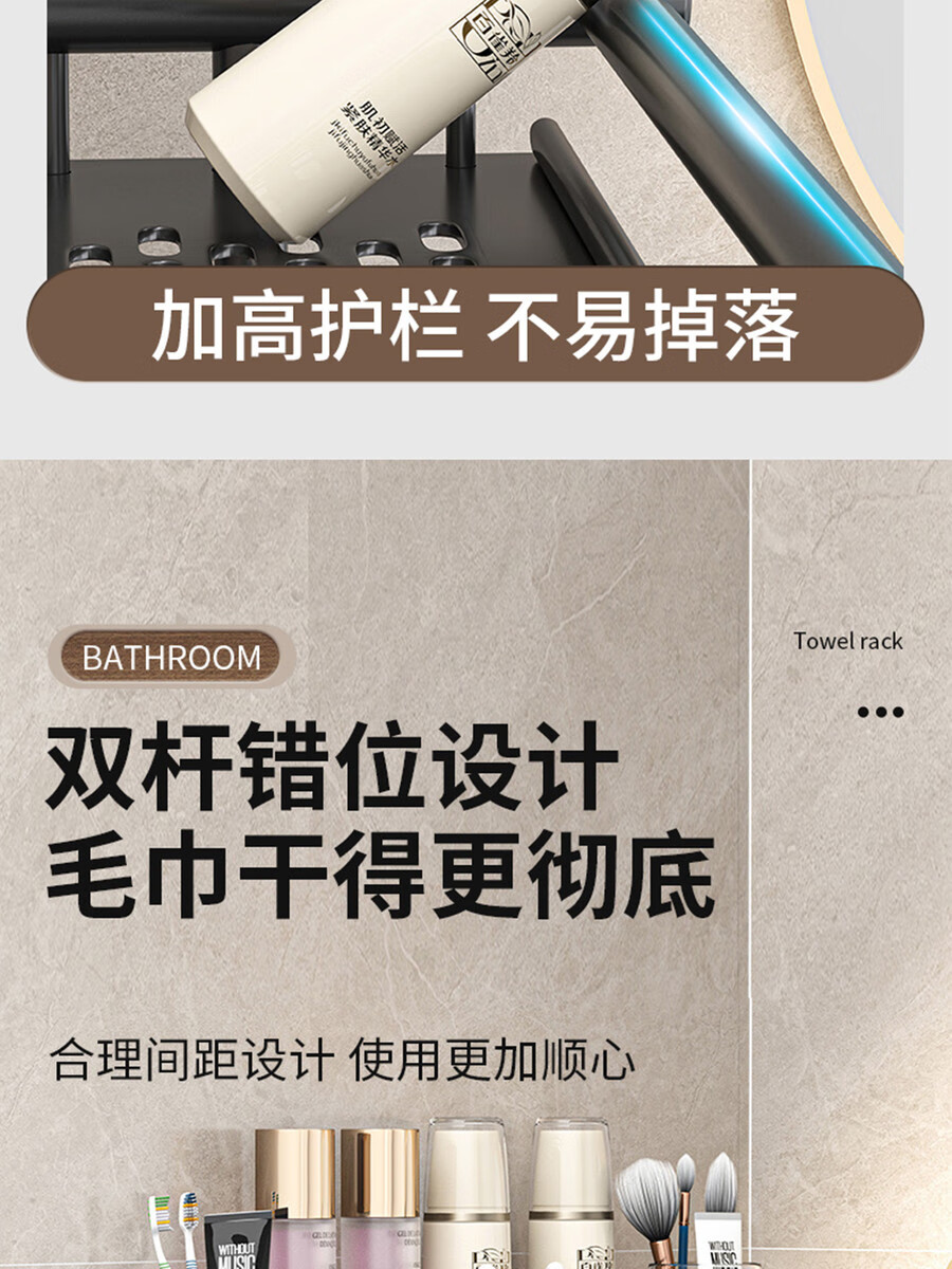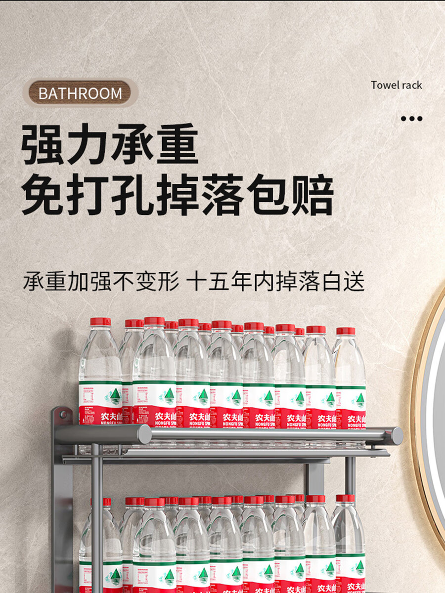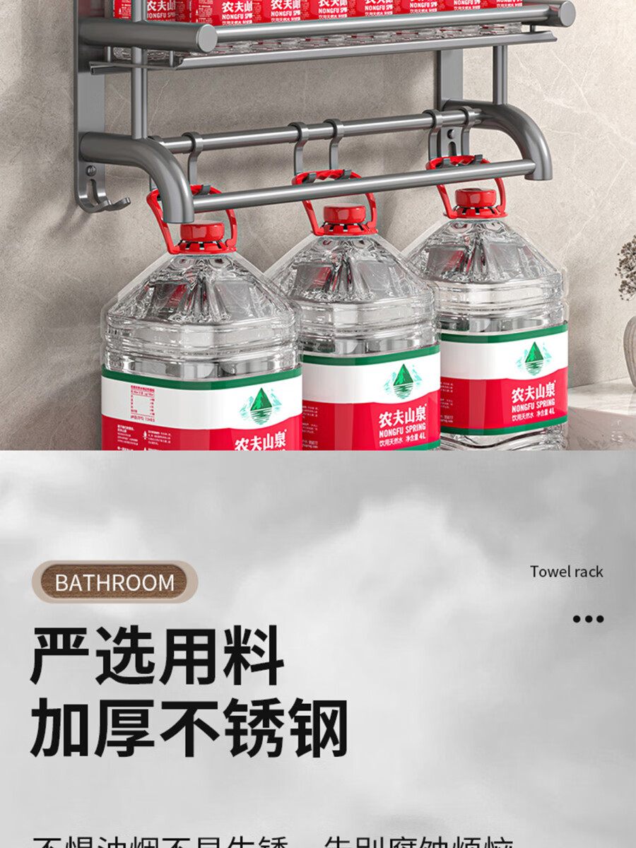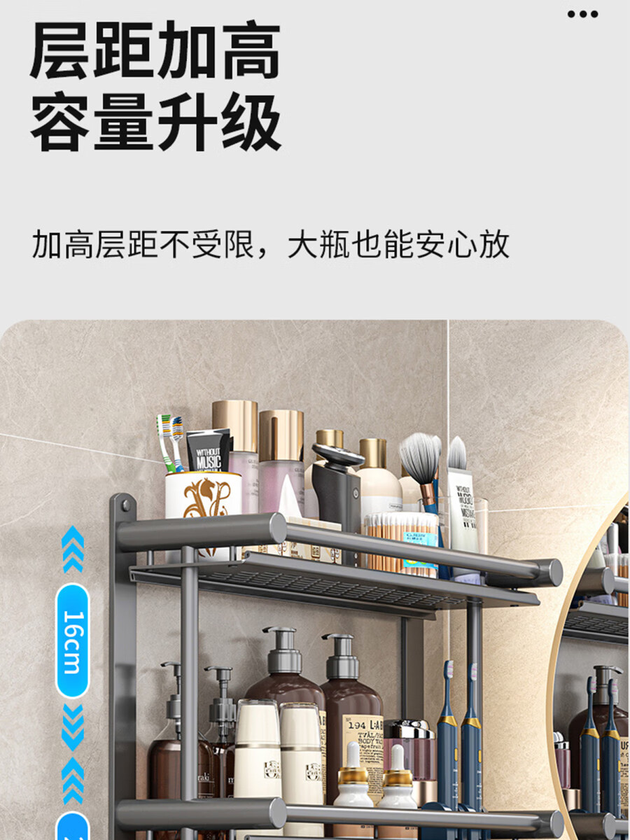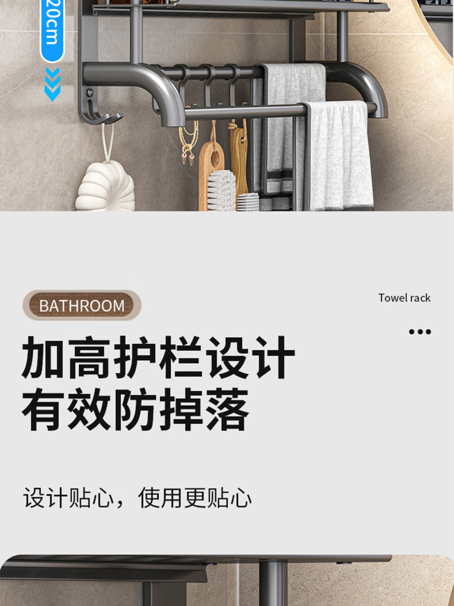 Fantasy towel rack bathroom punch-free bathroom toilet toilet rack wall-mounted stainless steel bath towel storage integrated three-layer 50CM all steel/gun gray thickened