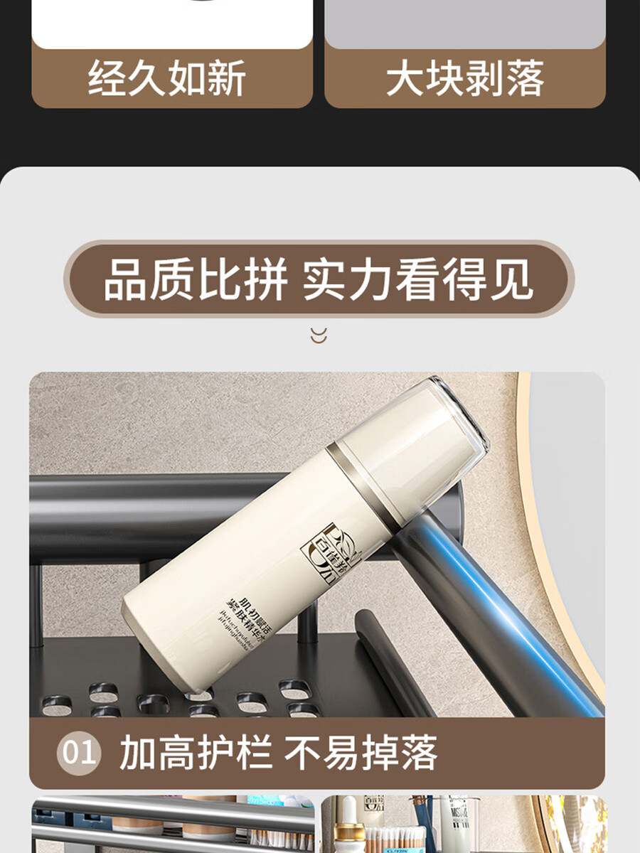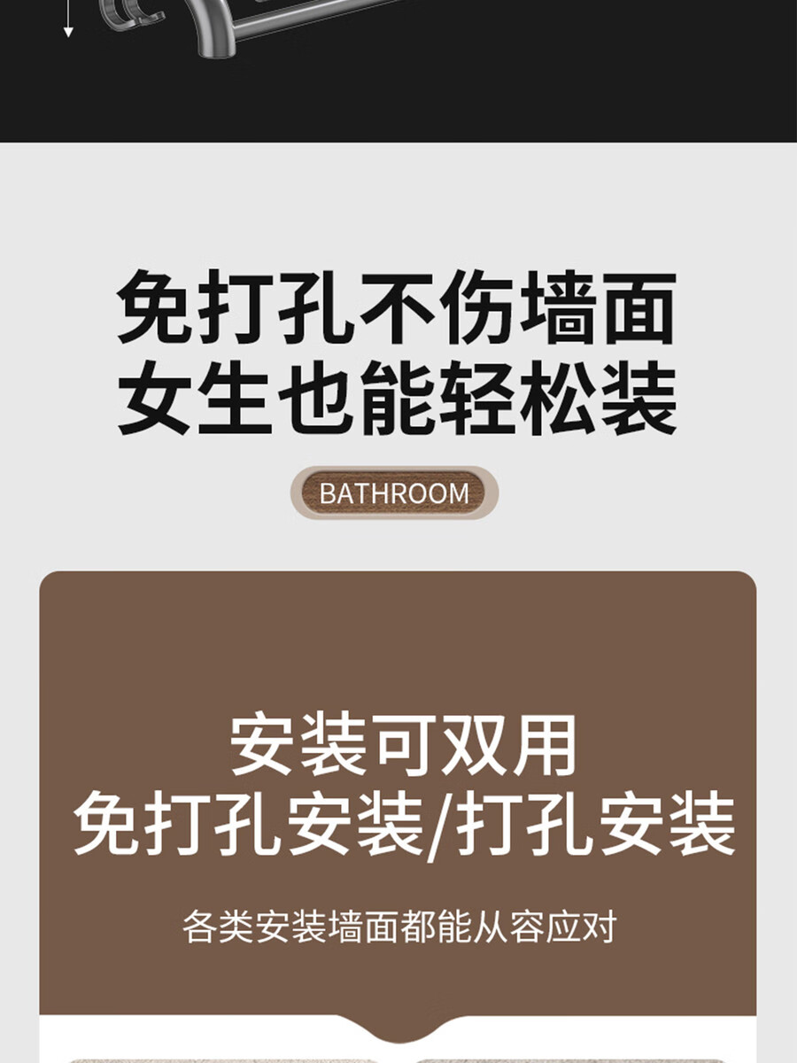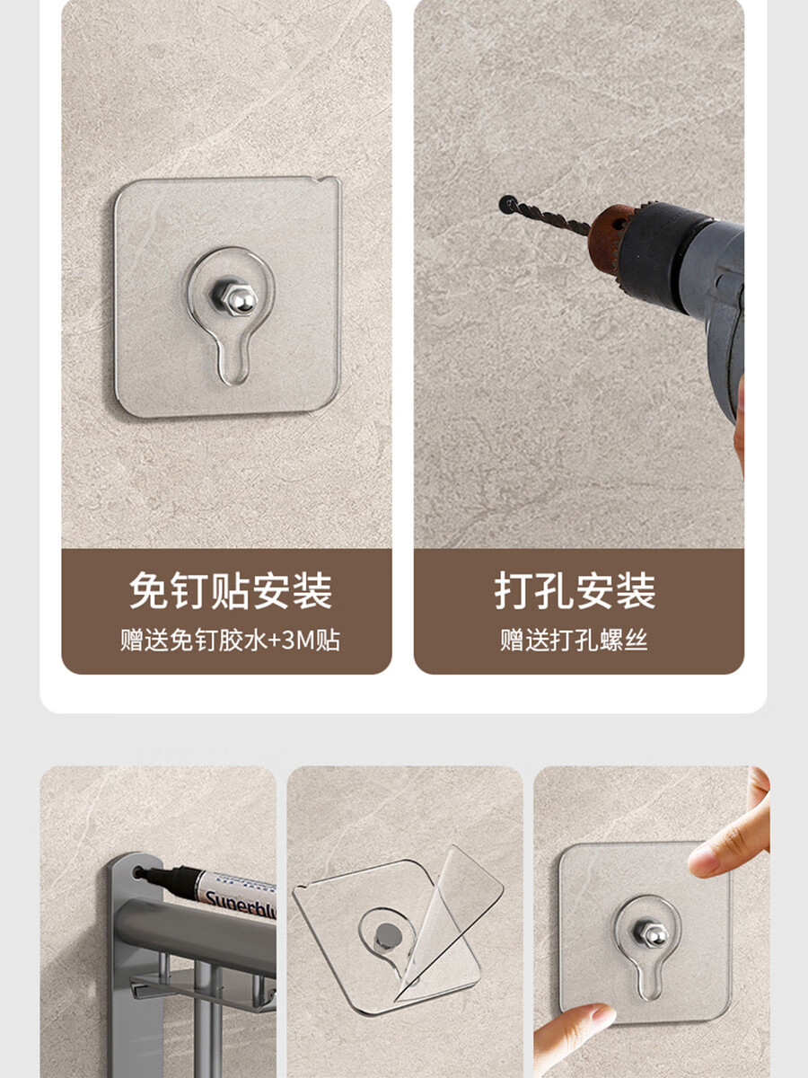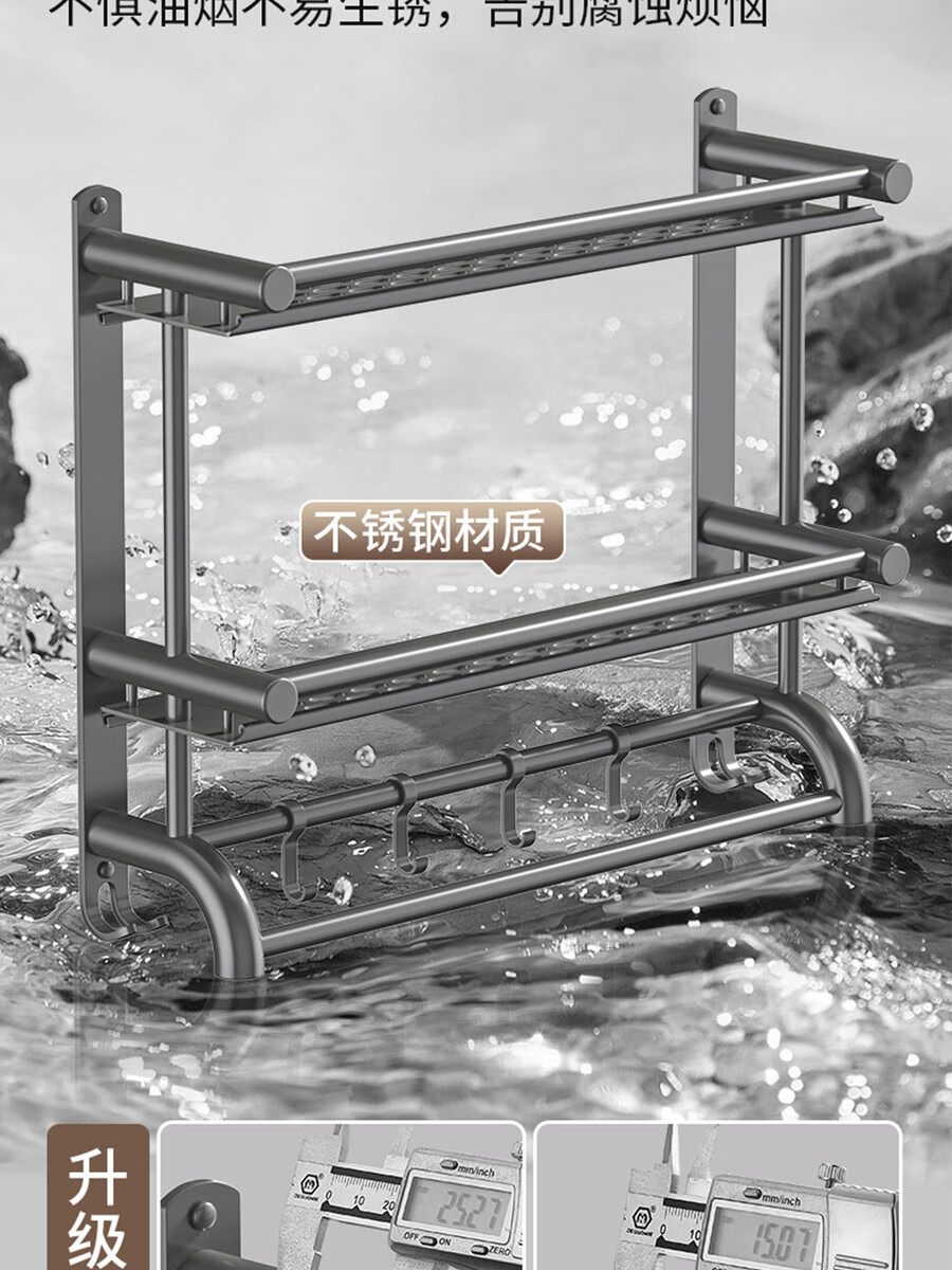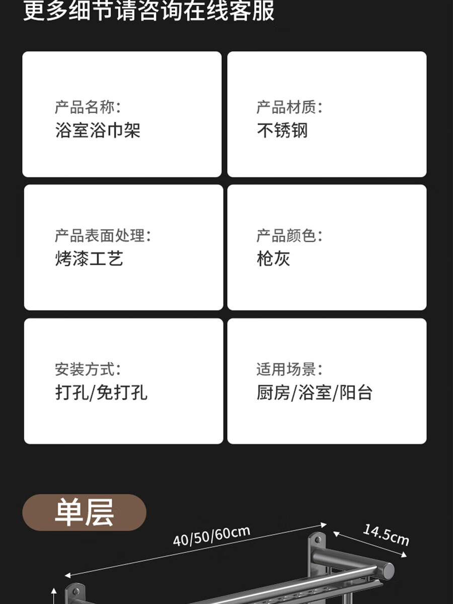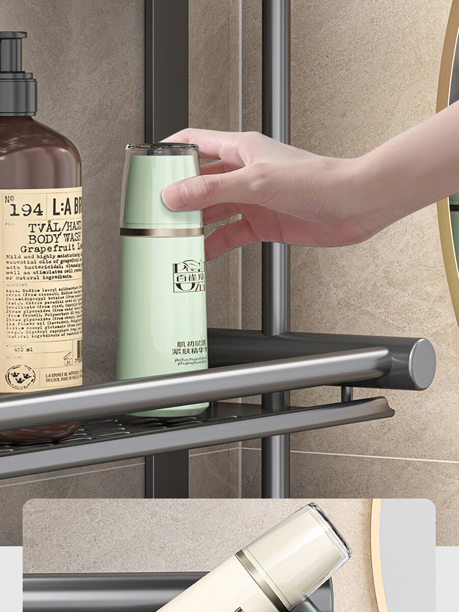 Fantasy towel rack bathroom punch-free bathroom toilet toilet rack wall-mounted stainless steel bath towel storage integrated three-layer 50CM all steel/gun gray thickened
