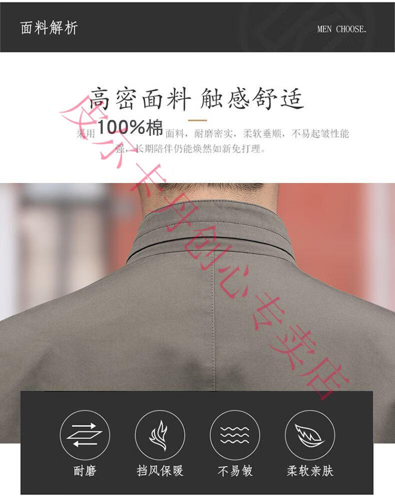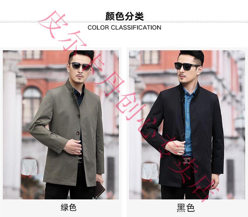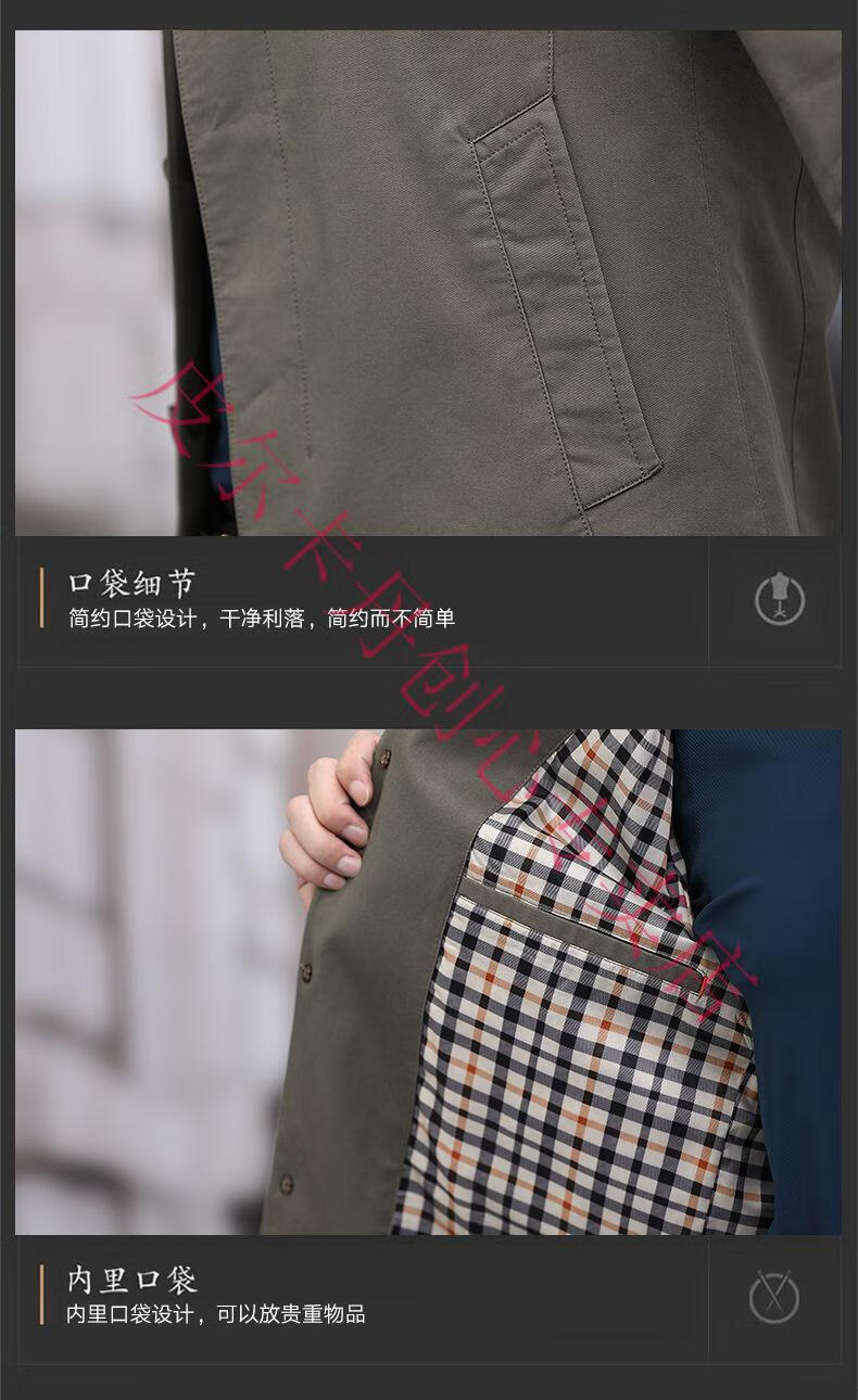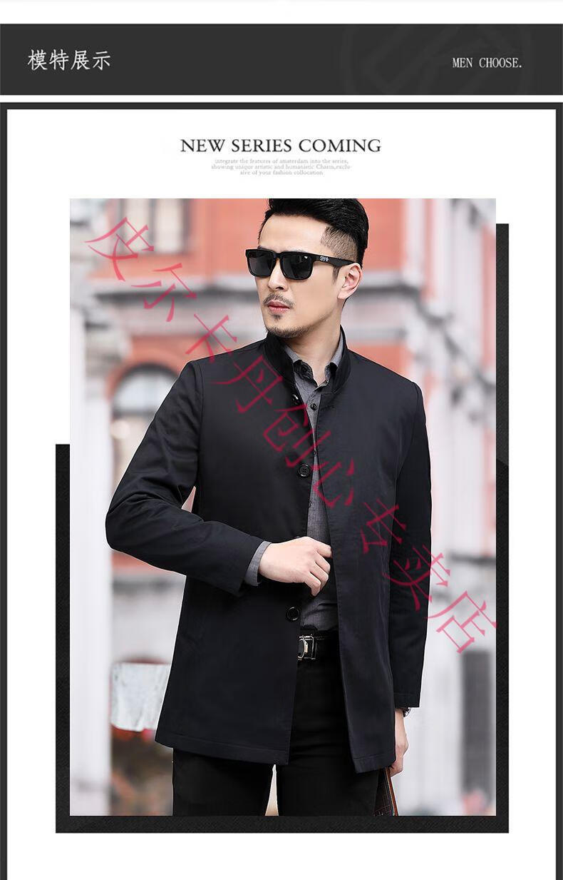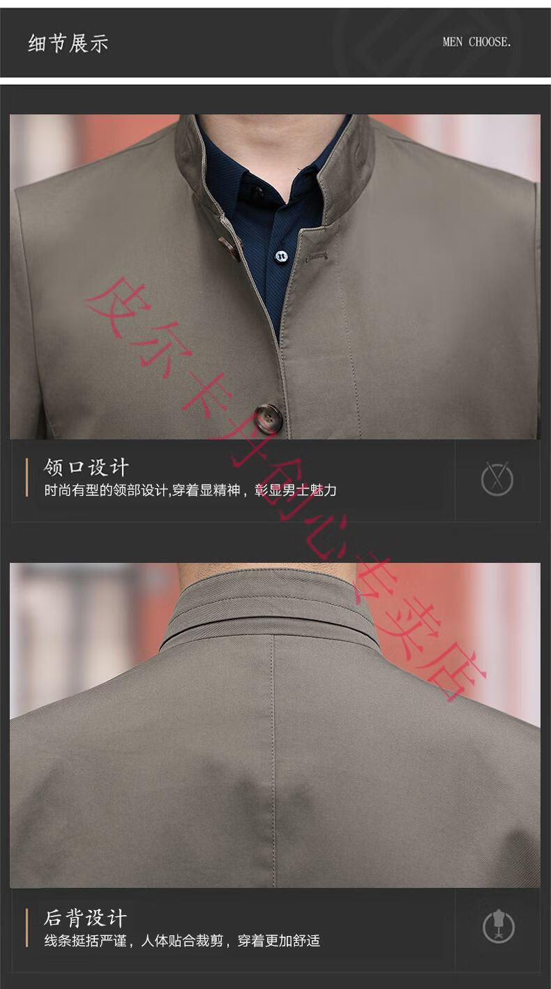 Pierre Cardin high-end men's clothing men's windbreaker mid-length stand-up collar business casual jacket dad wear new middle-aged spring and autumn clothing black stand-up collar pure cotton + authenticity guarantee M 170/88A