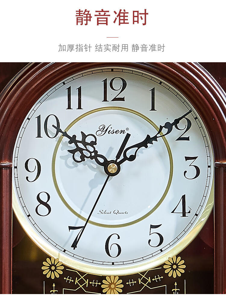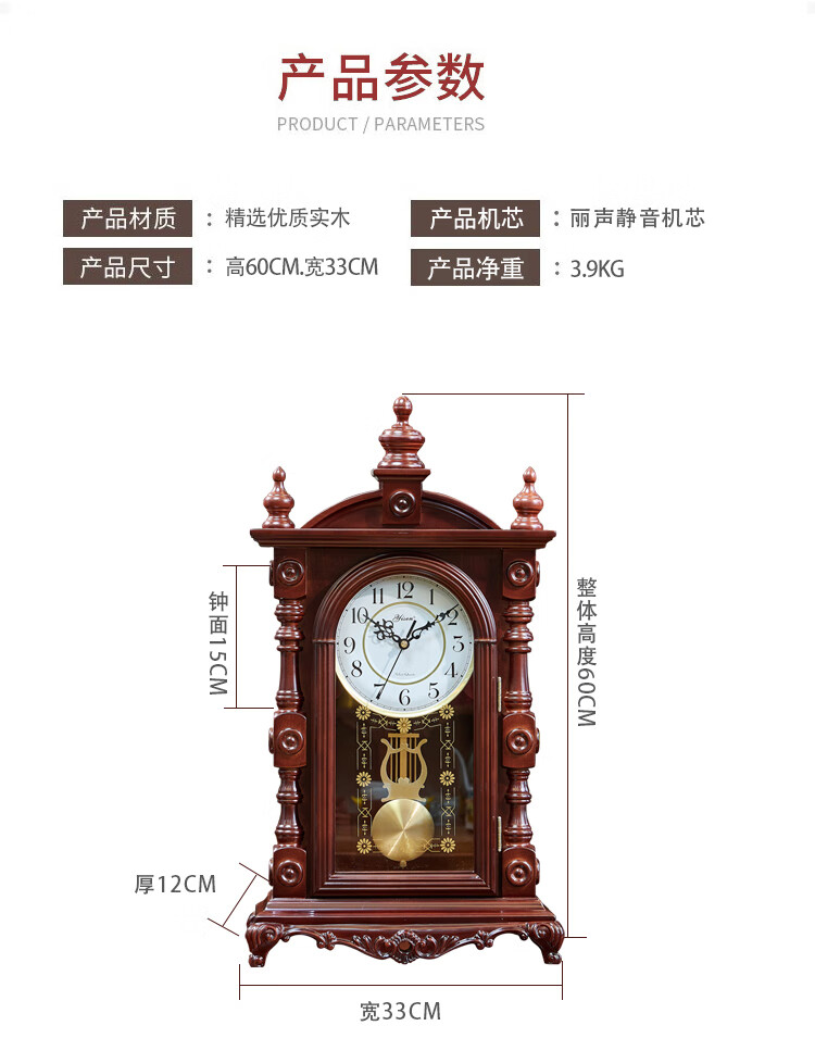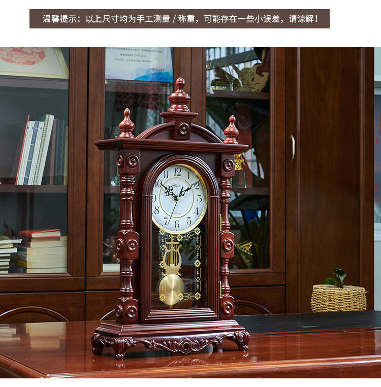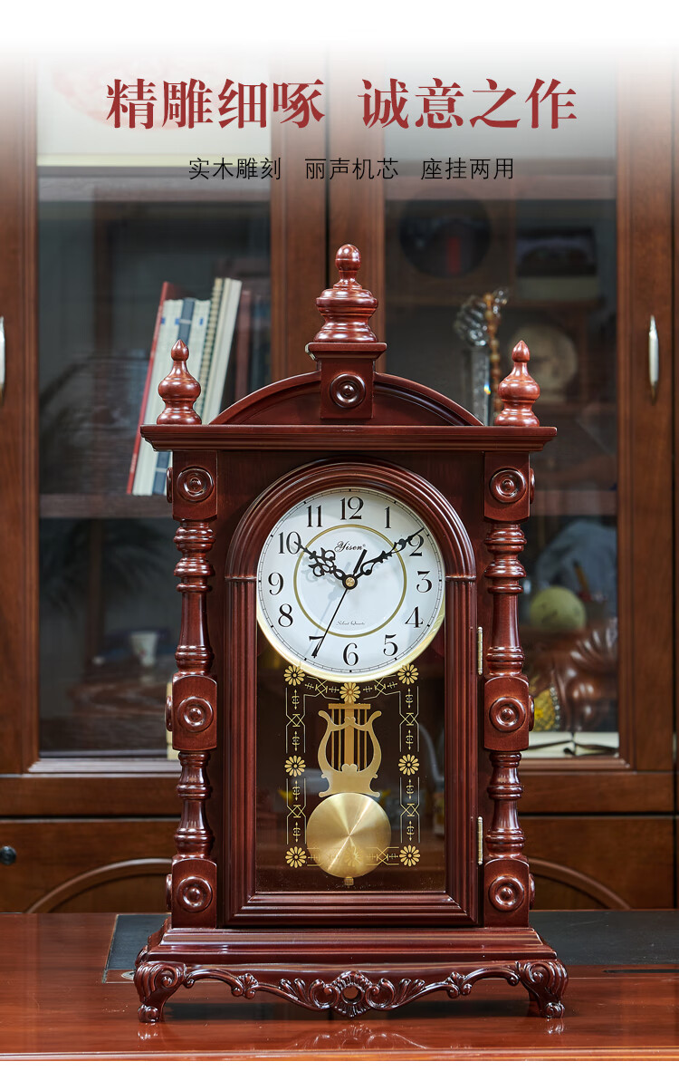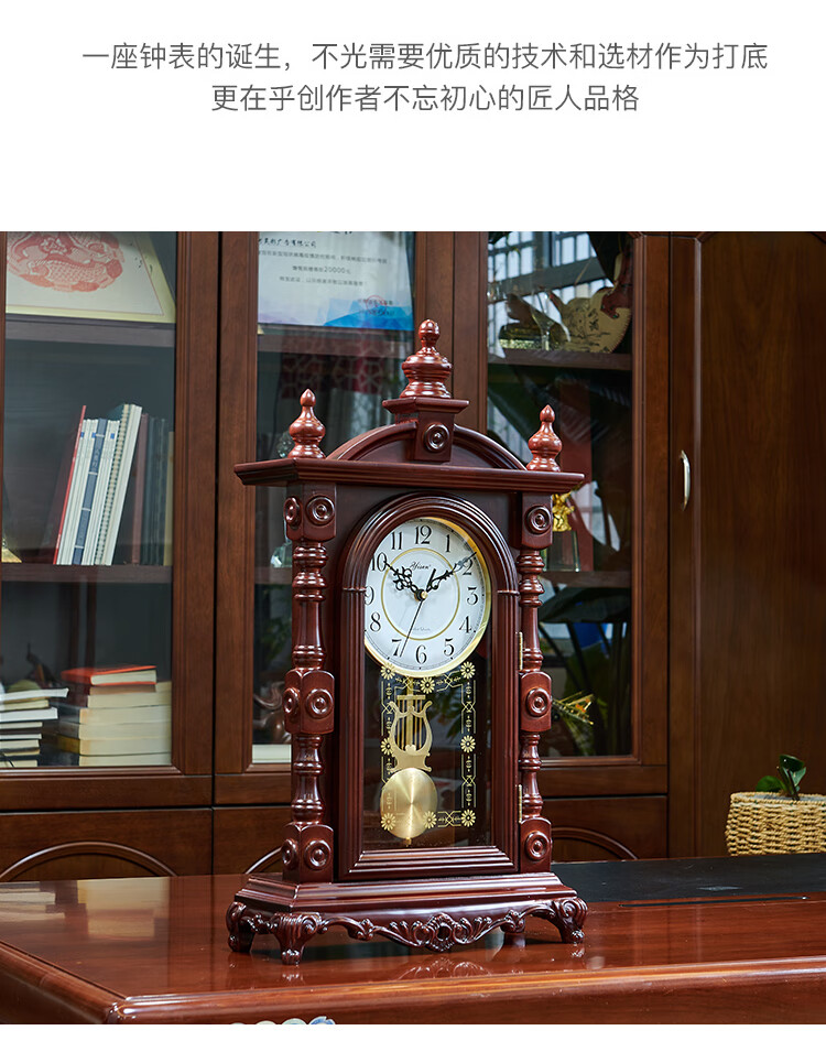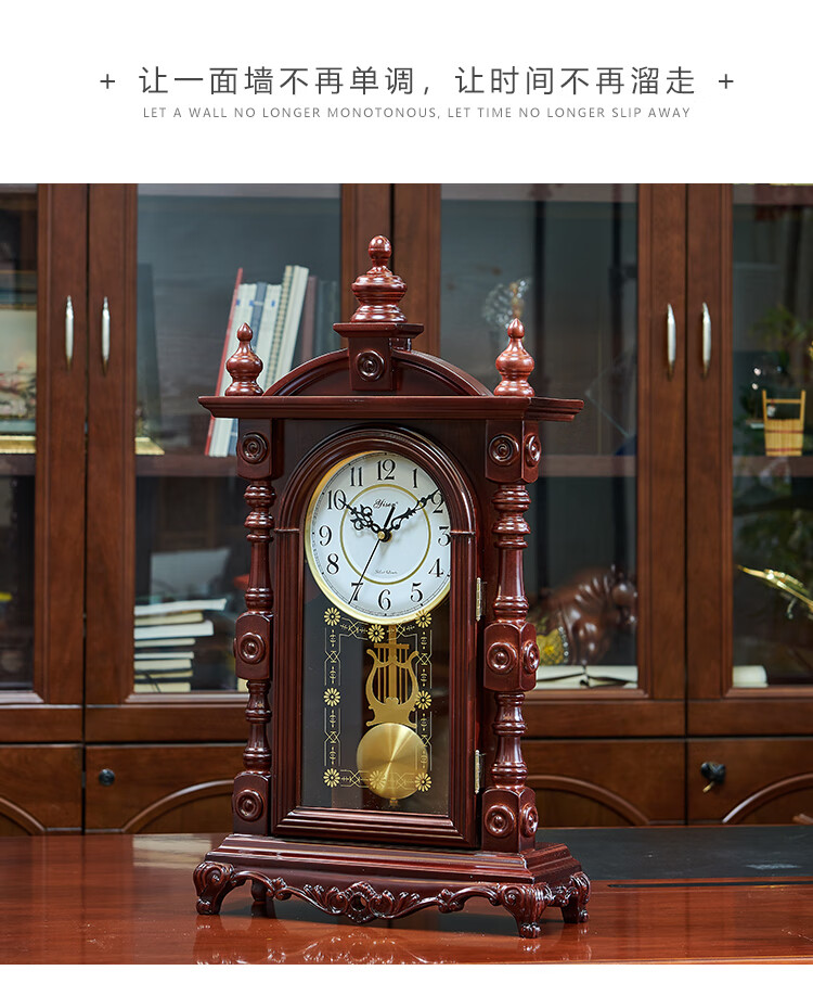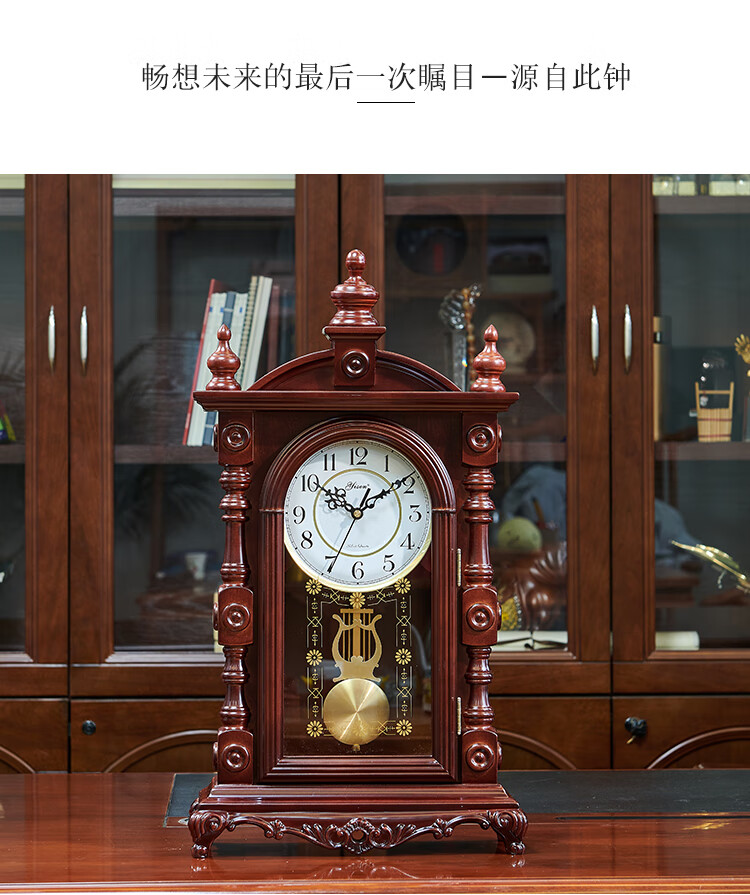 CLCEY Chinese solid wood table clock hourly timekeeping retro table clock home living room desktop desktop clock European clock ornaments silent model 18 inches