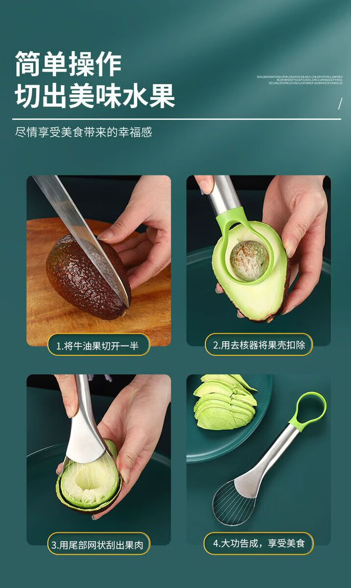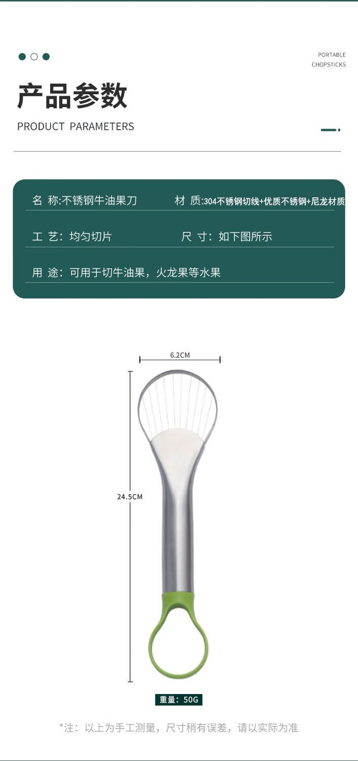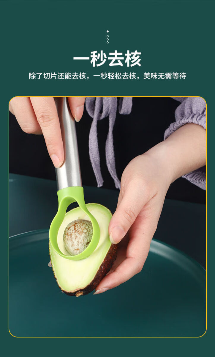 Fantasy avocado cutter, fruit cutter, avocado pitting, dragon fruit slicing and peeling tool, single-head carving knife, green