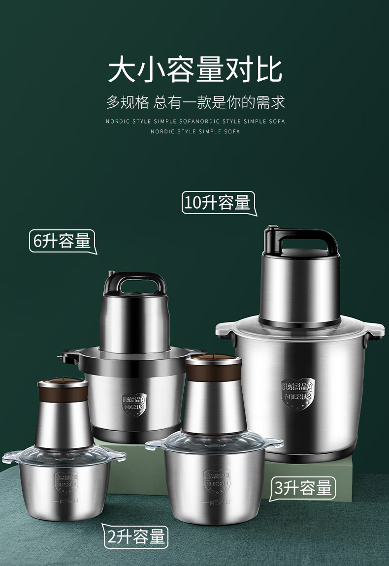 Yingtang Garlic Artifact Electric Commercial Garlic Miner Pulling, Cutting and Pressing Garlic Garlic Crusher Garlic Machine Household Ginger and Garlic Artifact 10L Stainless Steel Cup 1500W Can Mince 8-10 Jin Jin is equal to 0.5 kg