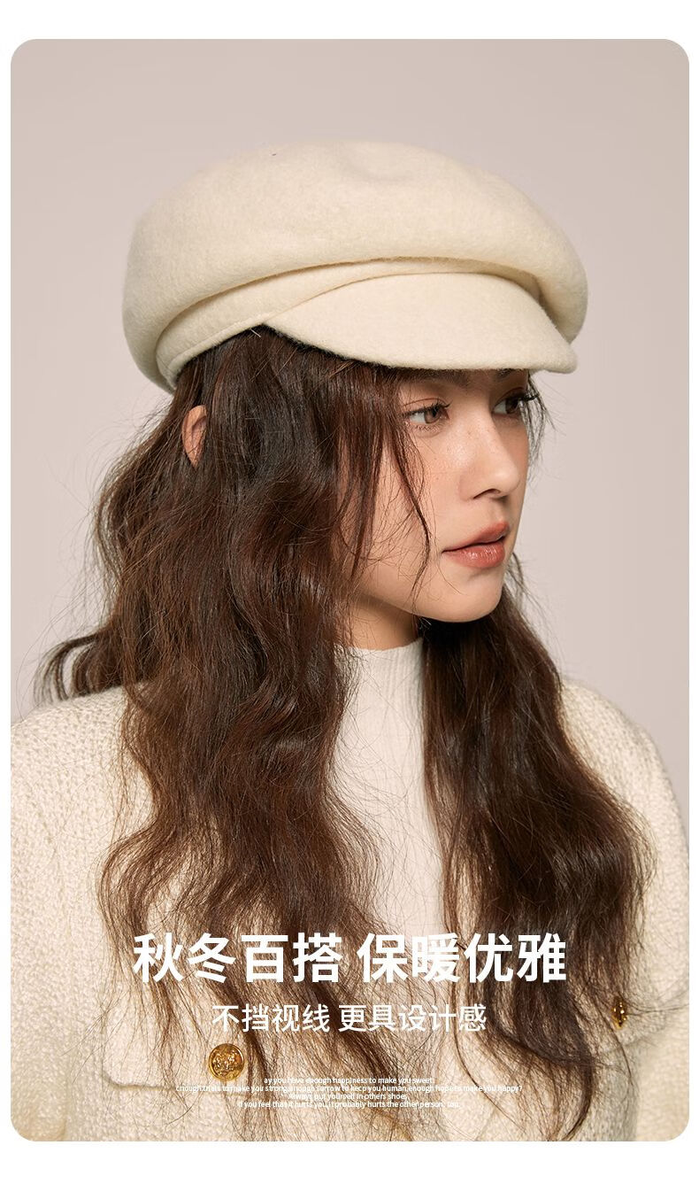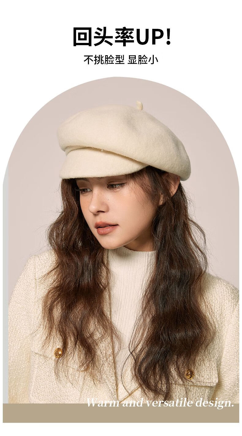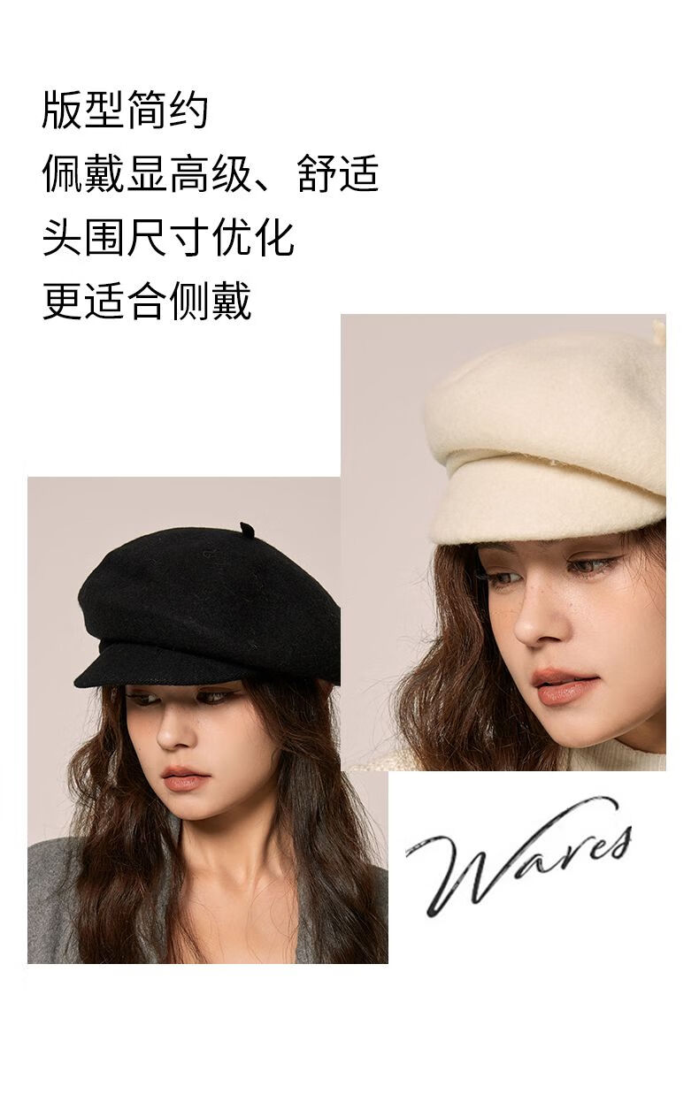 Shanghai Story Hat Autumn and Winter Wool Beret Women's Face Revealing Small Solid Color Large Head Circumference Versatile Painter Hat Literary Hat Layered Brim Beret - Black