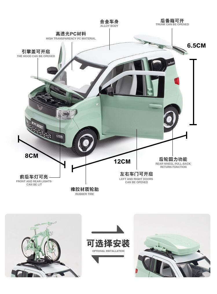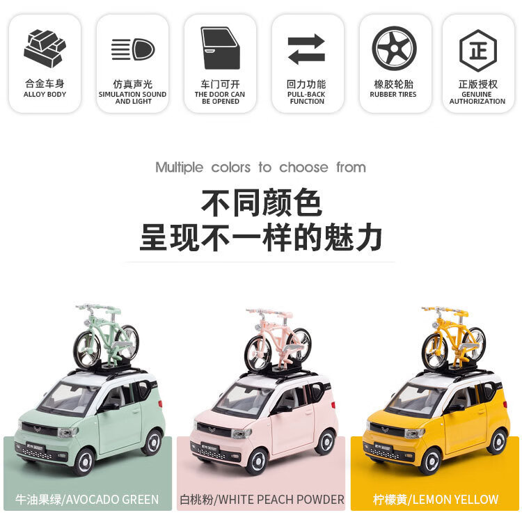 Central shopkeeper Wuling Electric Car Hongguang mini model car mini new energy car van truck alloy gift Rongguang container truck large cargo version silver 1 32