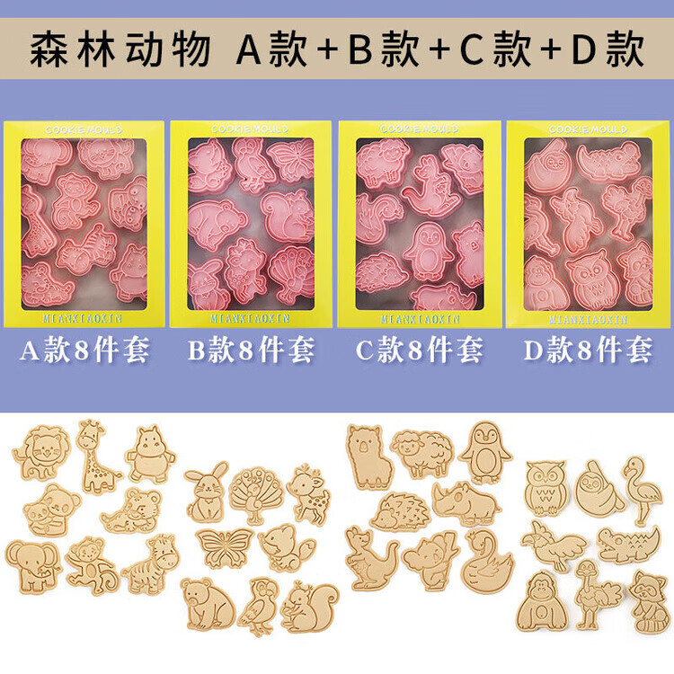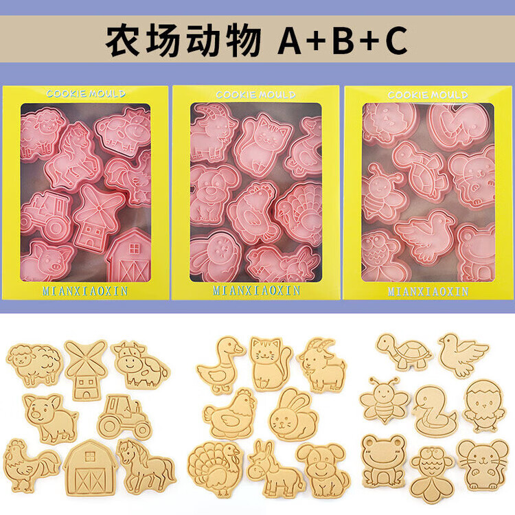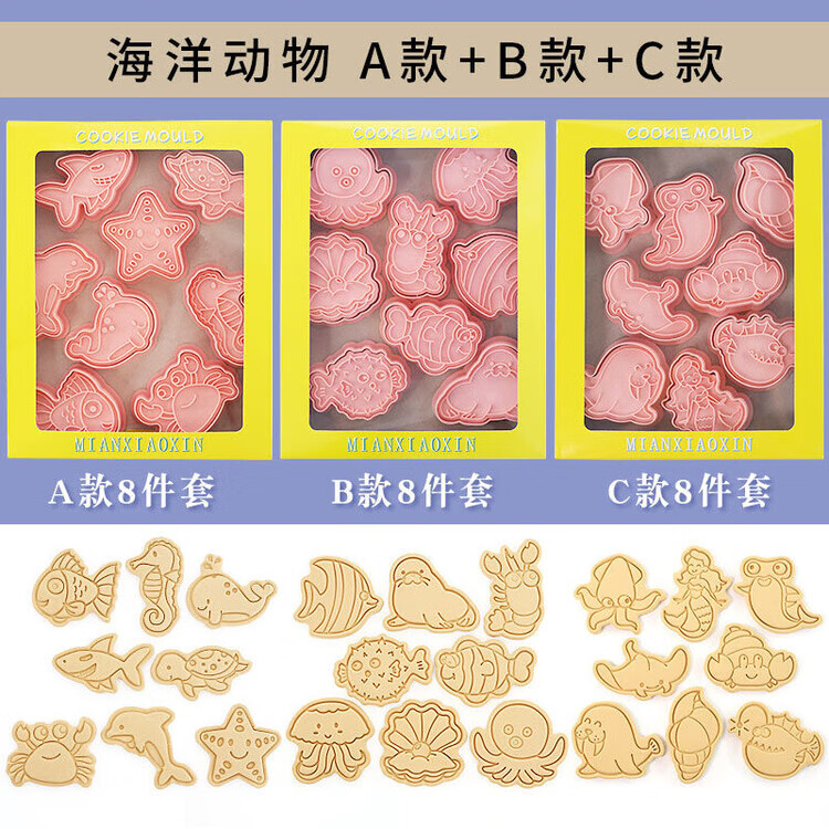 Fantasy Baking Tools Eight-piece Set Cartoon Animal Cookie Mold Fully Installed Home 3D Pressing Sugar Cookie Cutting Mold Marine Animal ABC 3 Set 24 Pieces