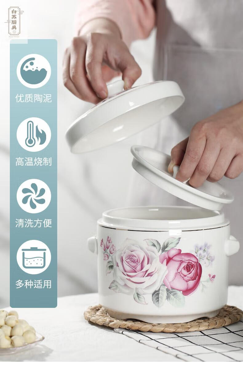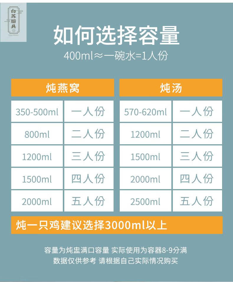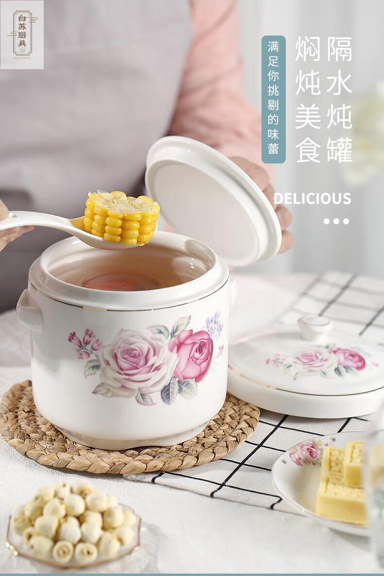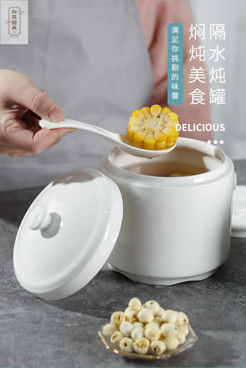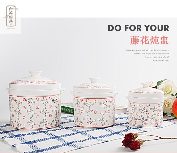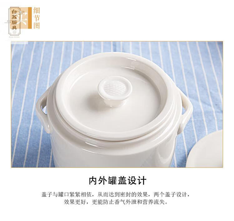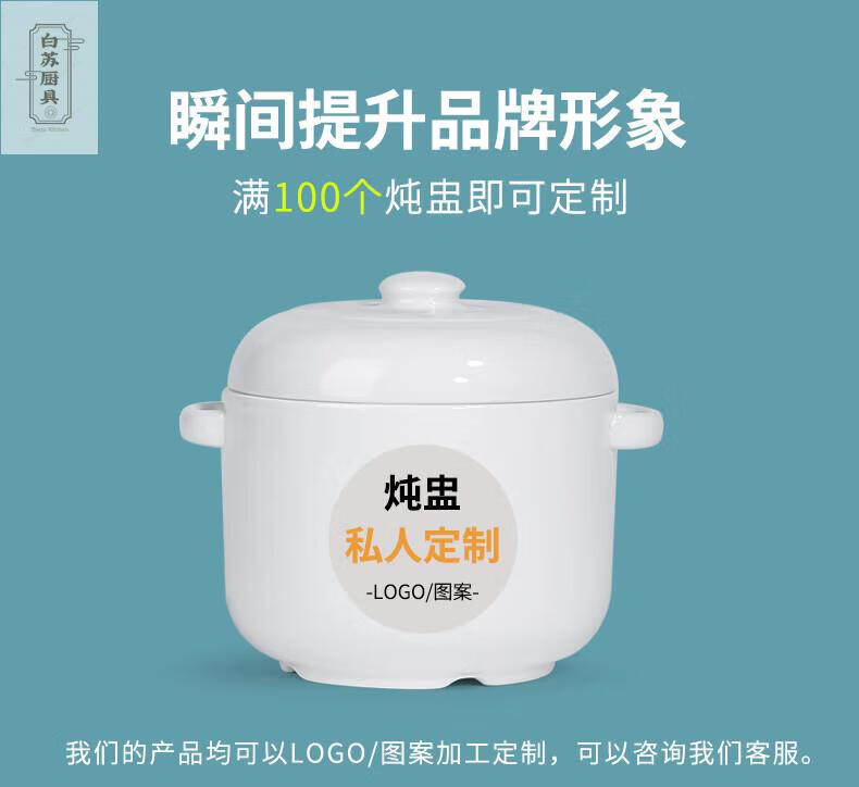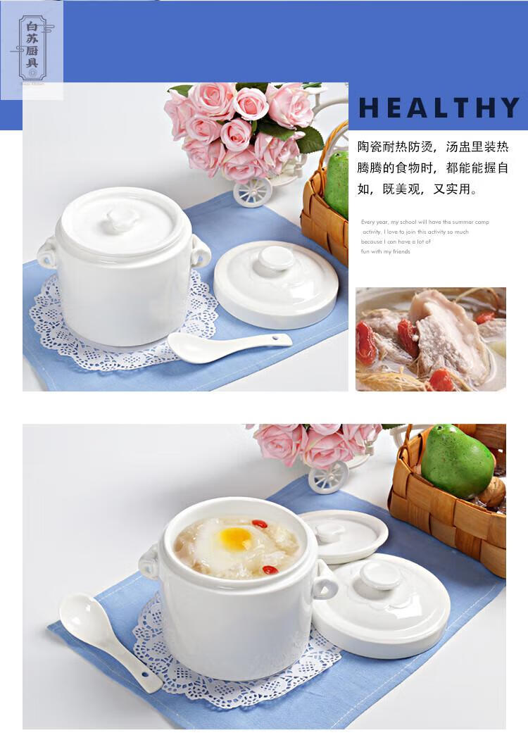 Tuojin stew pot bird's nest ceramic pot with lid, water-proof cup, steamed egg size, pure white 2000ML