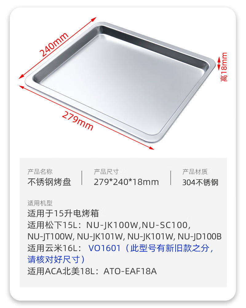 304 stainless steel baking pan suitable for steam oven 304 stainless steel baking pan 315*265mm