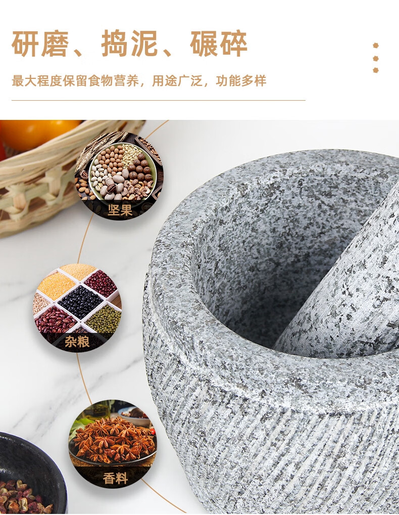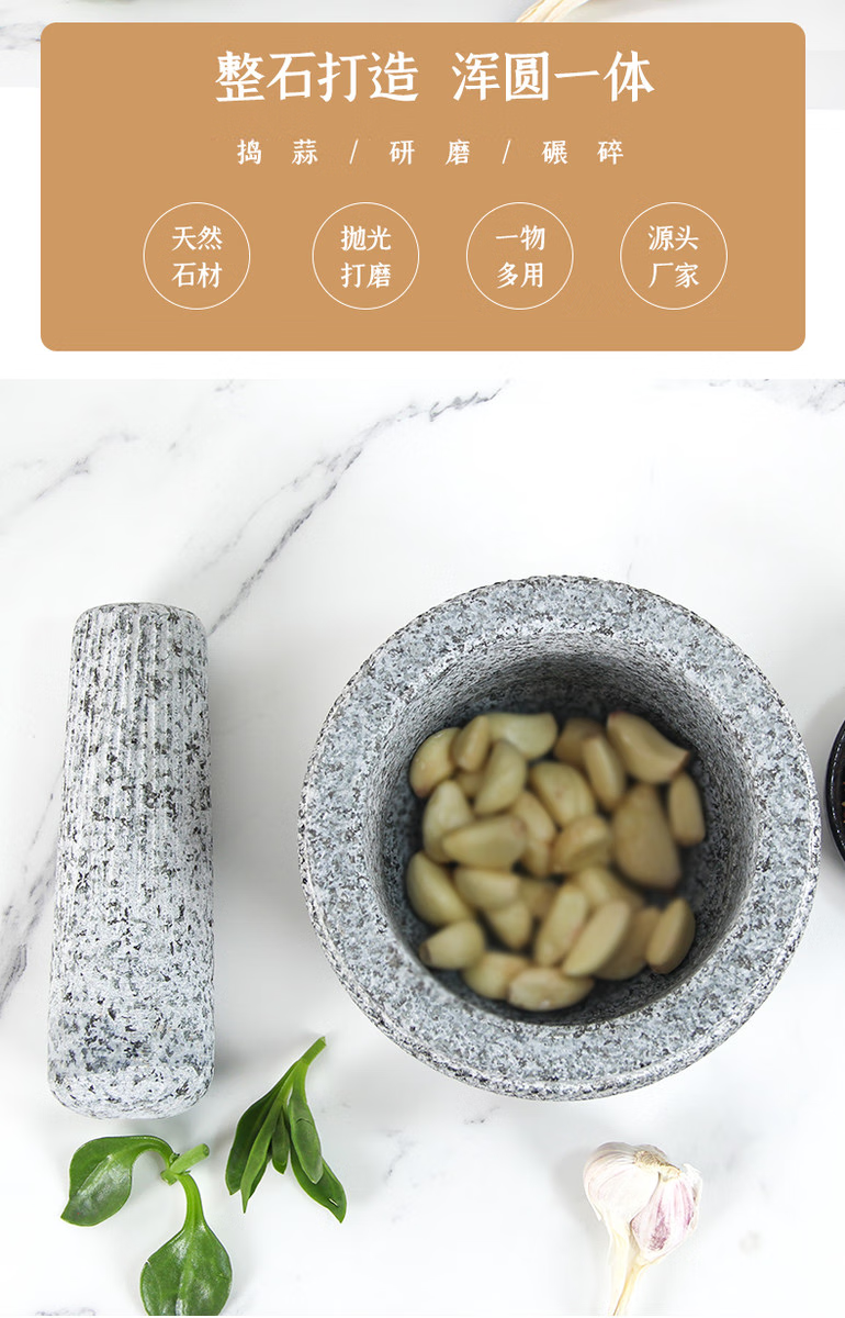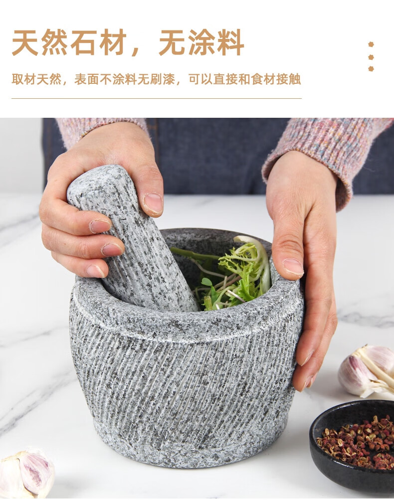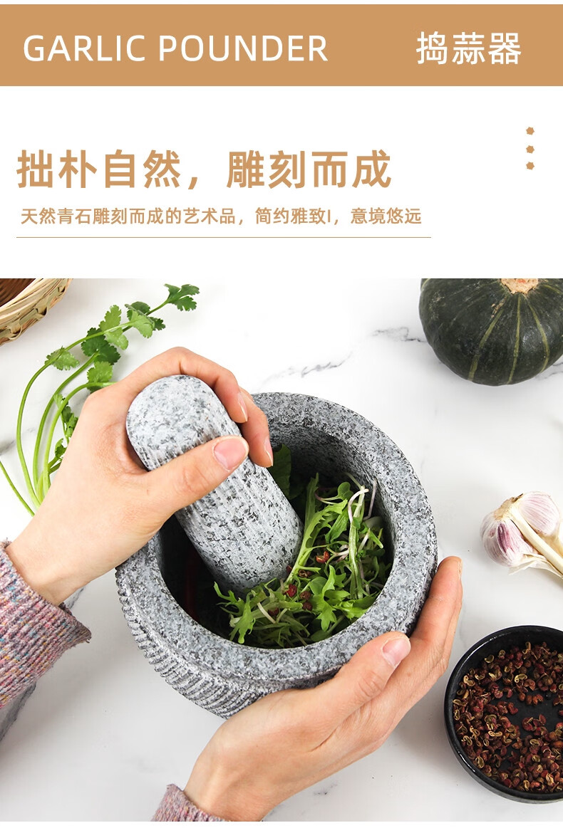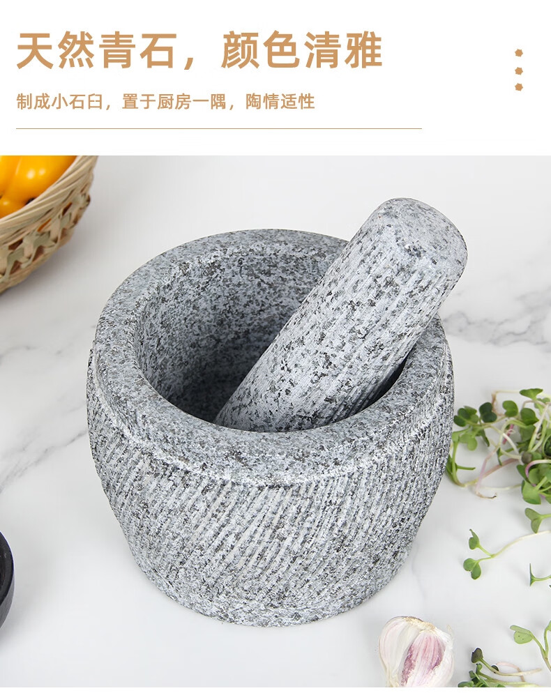 Sailoto stone mortar garlic press garlic mortar garlic pounder smash jar pound garlic nest household stone grinding jar bluestone small bluestone retro engraving with splash-proof cover