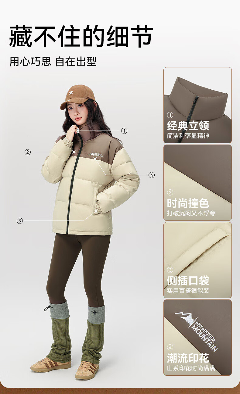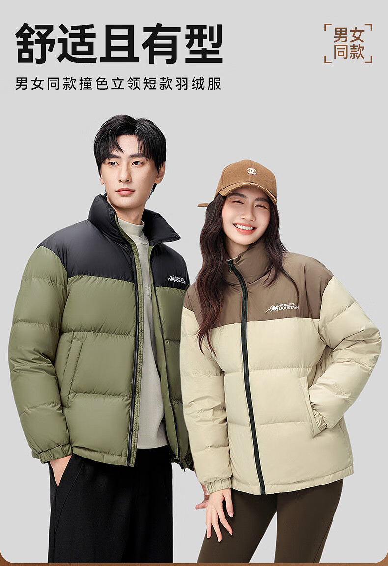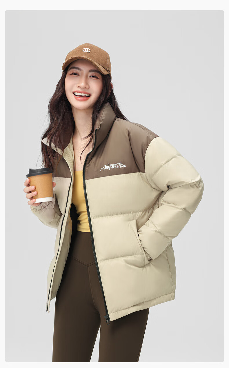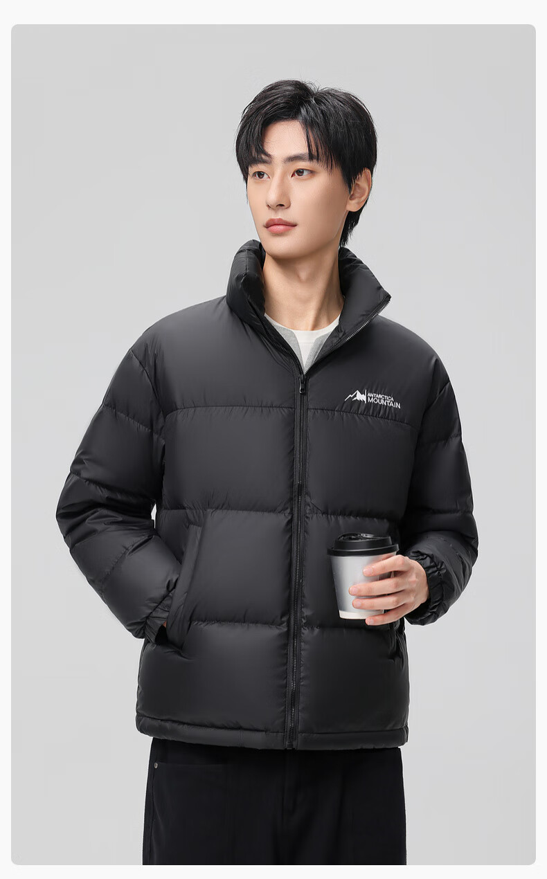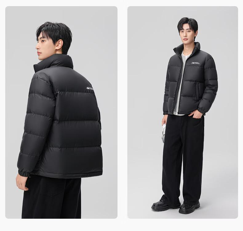 Xue Zhongfei's new all-match fashion casual slanted pocket men's and women's short stand collar down jacket couple style black|8056 L 175/92A