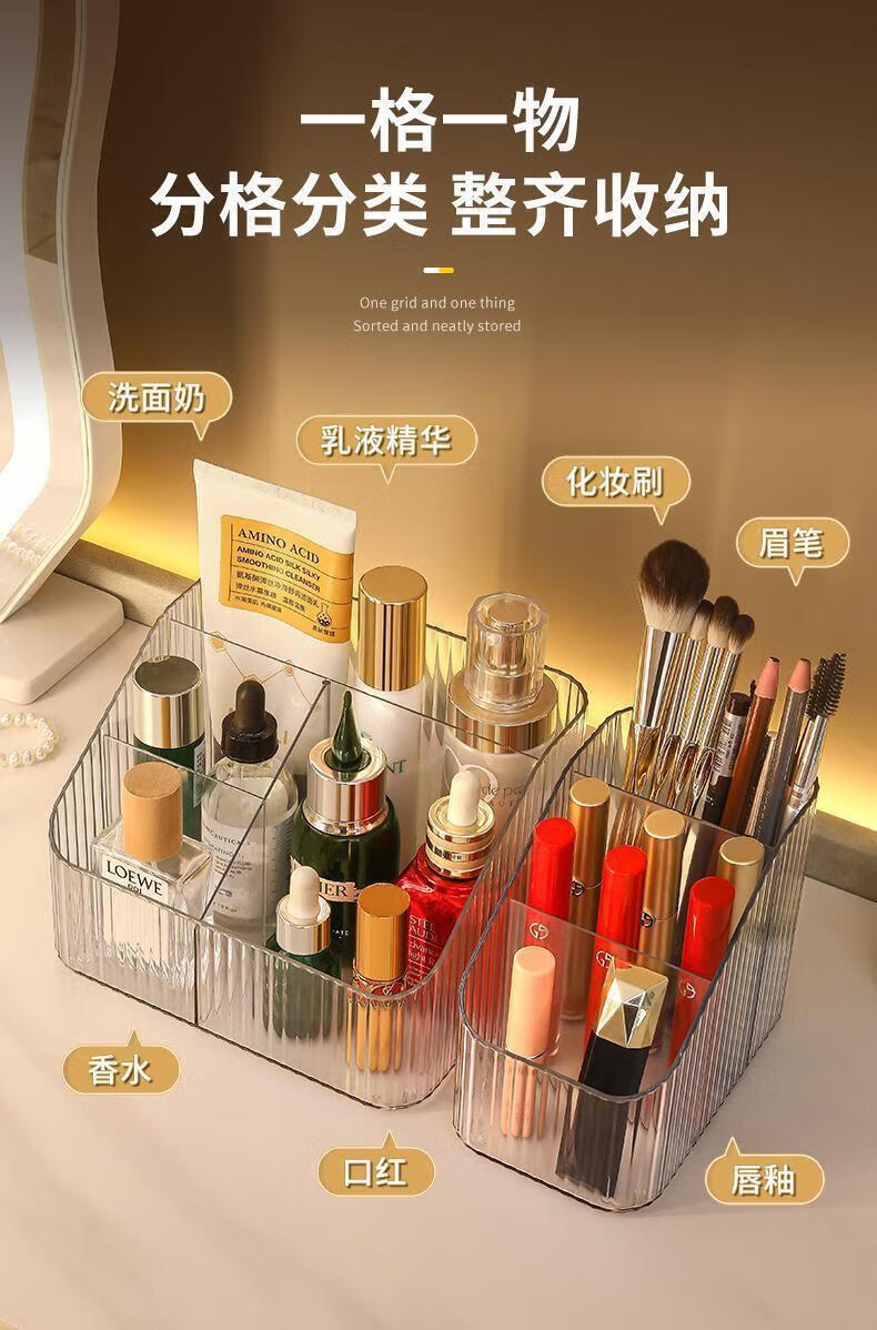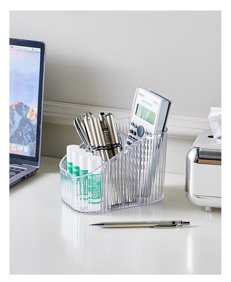 Visitor (FK) Desktop Storage Box Cosmetics Storage Box Jewelry Storage Box Storage Bucket Feel Transparent Transparent Storage Rack Pen Holder Storage Box 4 Grids 1 Pack
