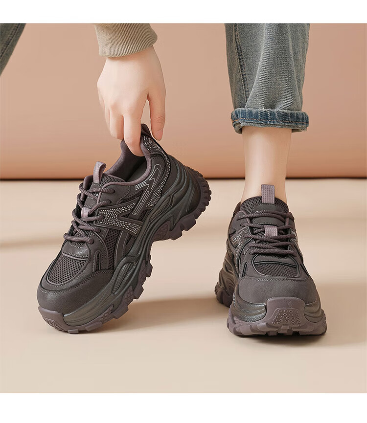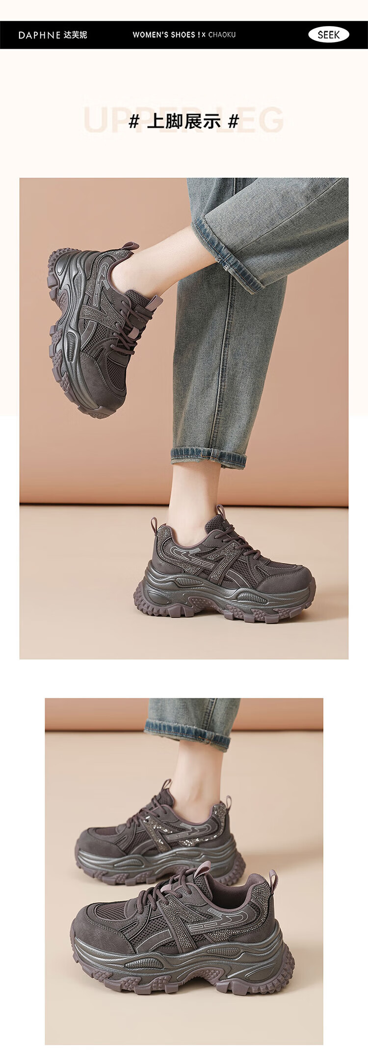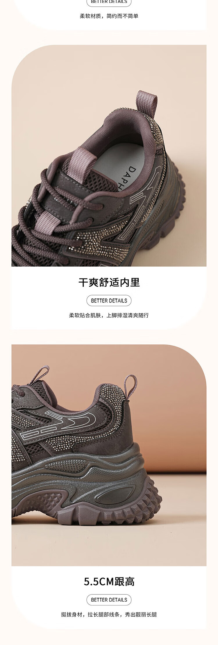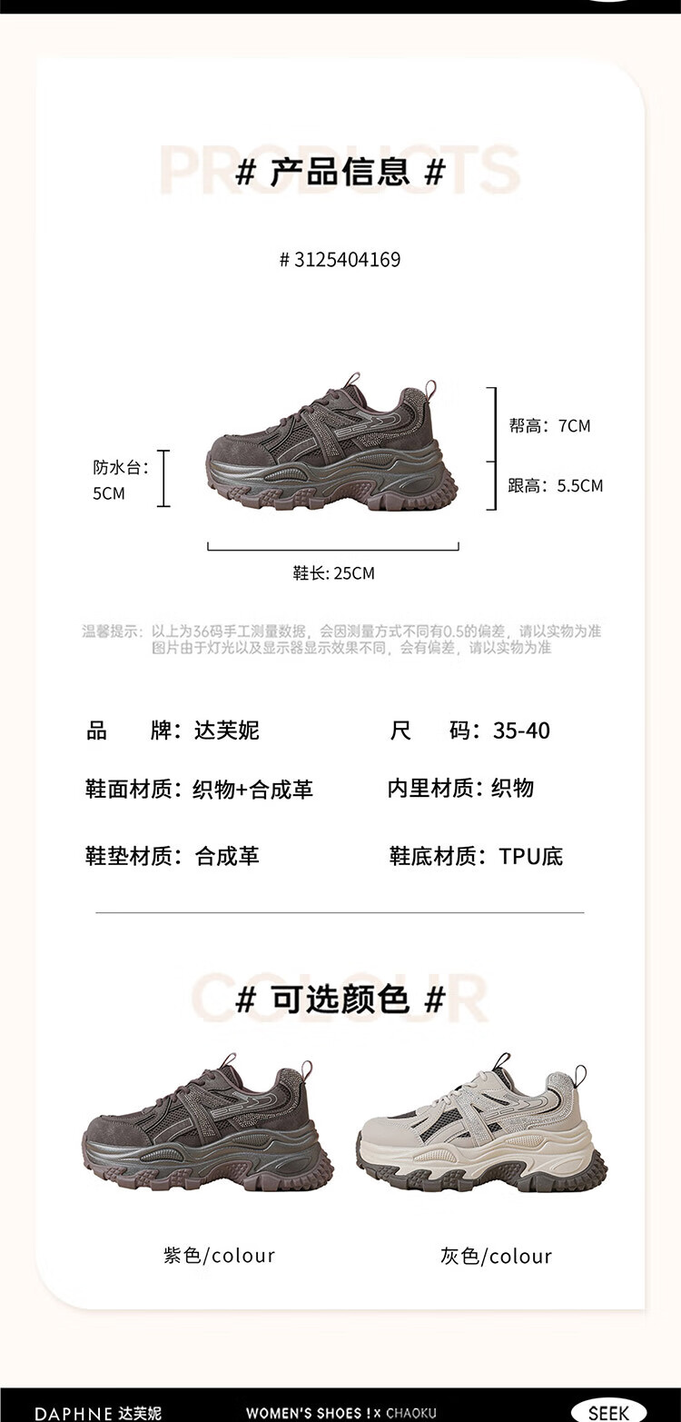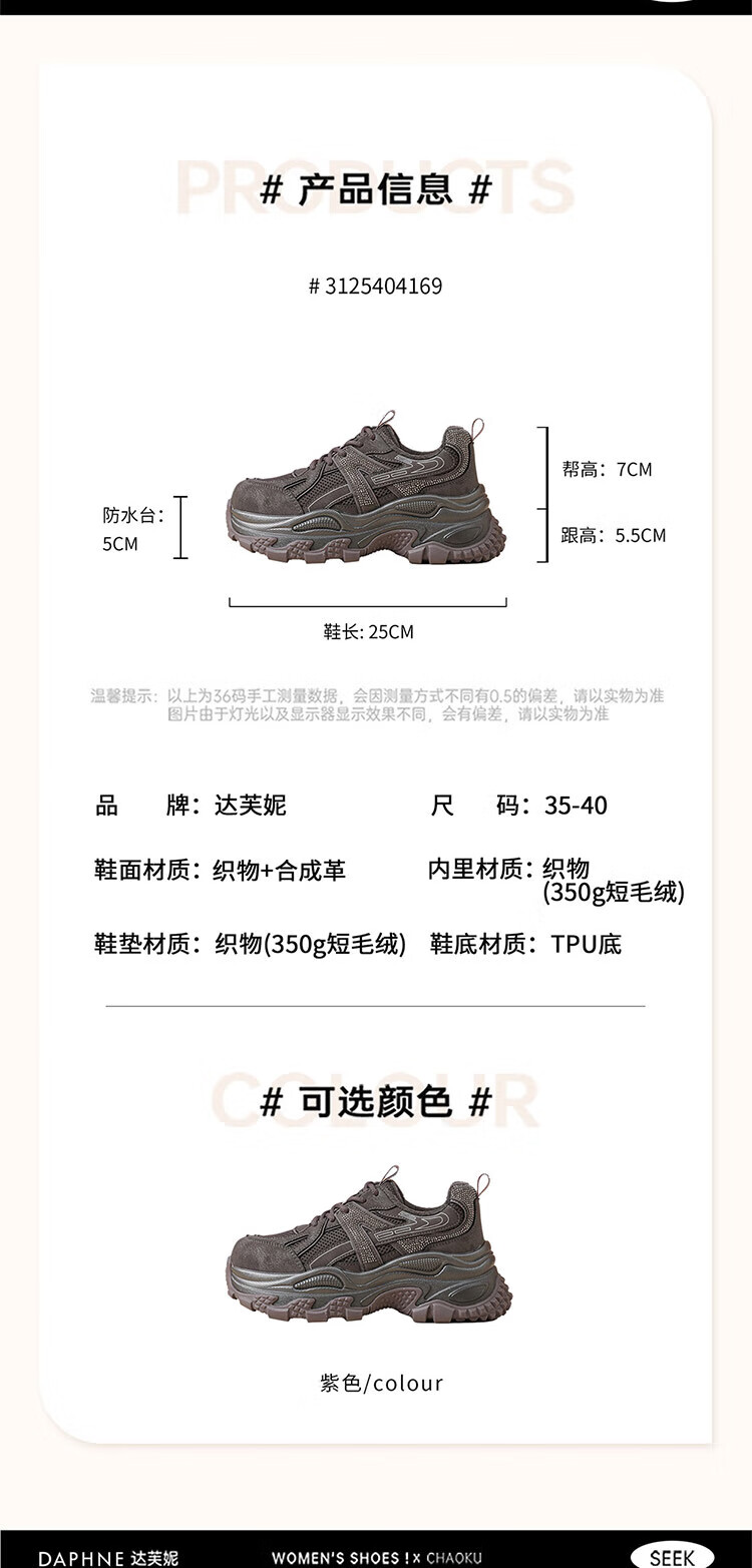DAPHNE Daphne thick-soled dad shoes, women's velvet warm cotton shoes, winter new versatile height-increasing casual platform sneakers winter gray single layer heel height 5.5cm 40 (250mm) standard size