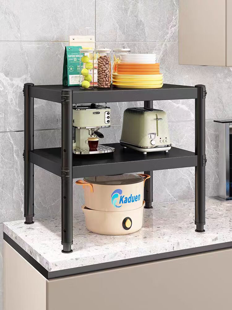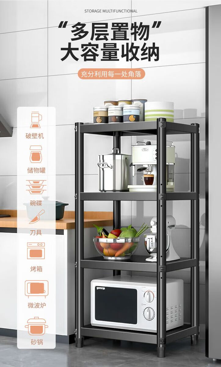 Fantasy kitchen rack floor-standing storage rack microwave dish rack cargo rack pot rack matte black width 25 long 50 total height 70 three layers