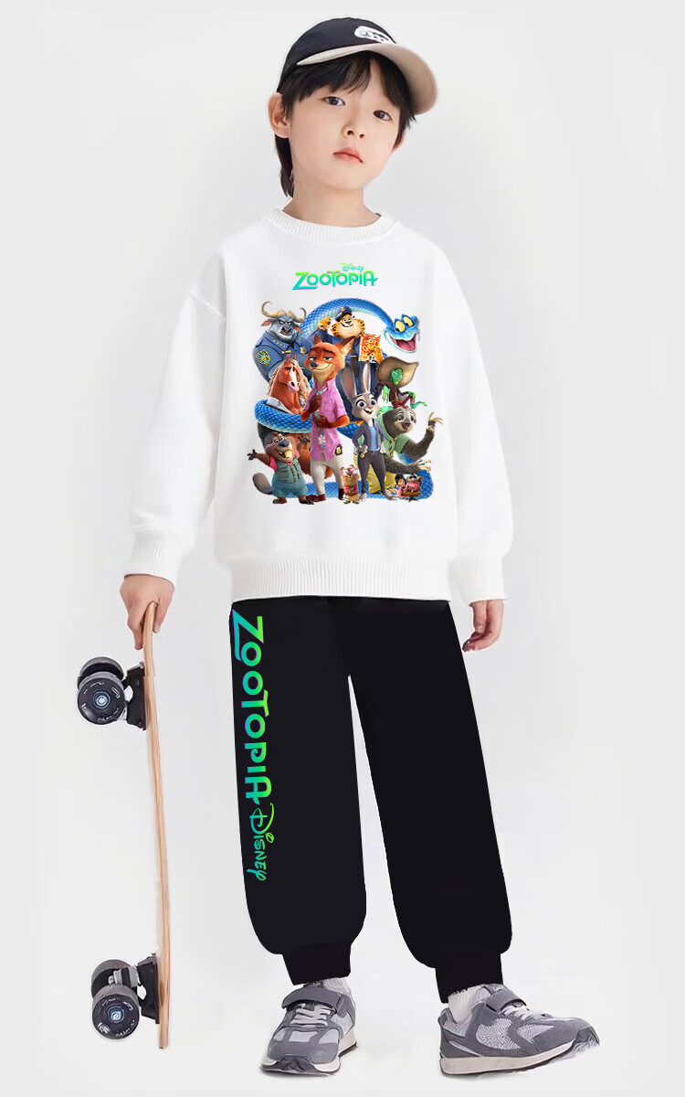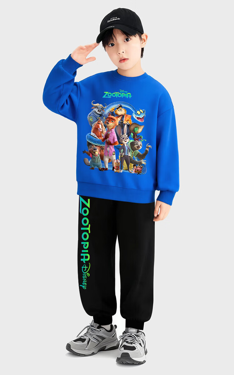 Zootopia 2 clothes movie Fox Nick plus velvet sweatshirt children's men and women parent-child clothing Judy Rabbit long-sleeved T-shirt blue-Crazy Animals-Sweatshirt-120455 130 plus velvet
