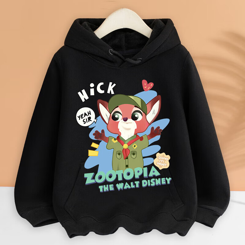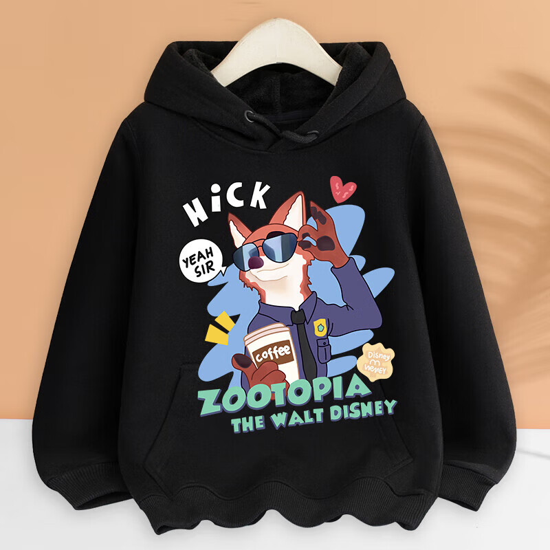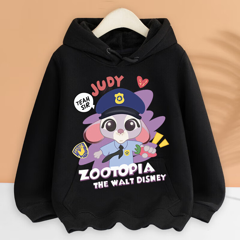 Special parent-child outfits for a family of four and three, fashionable mother-daughter outfits, crazy Zootopia Judy Nick sweatshirt, spring and autumn hoodie, Black Mom/Zootopia 175 (L)