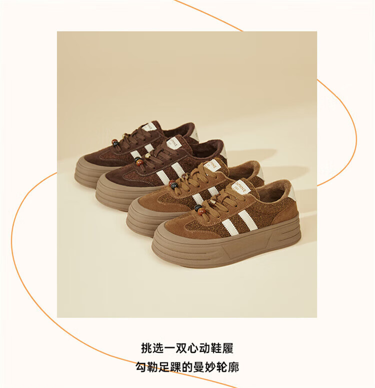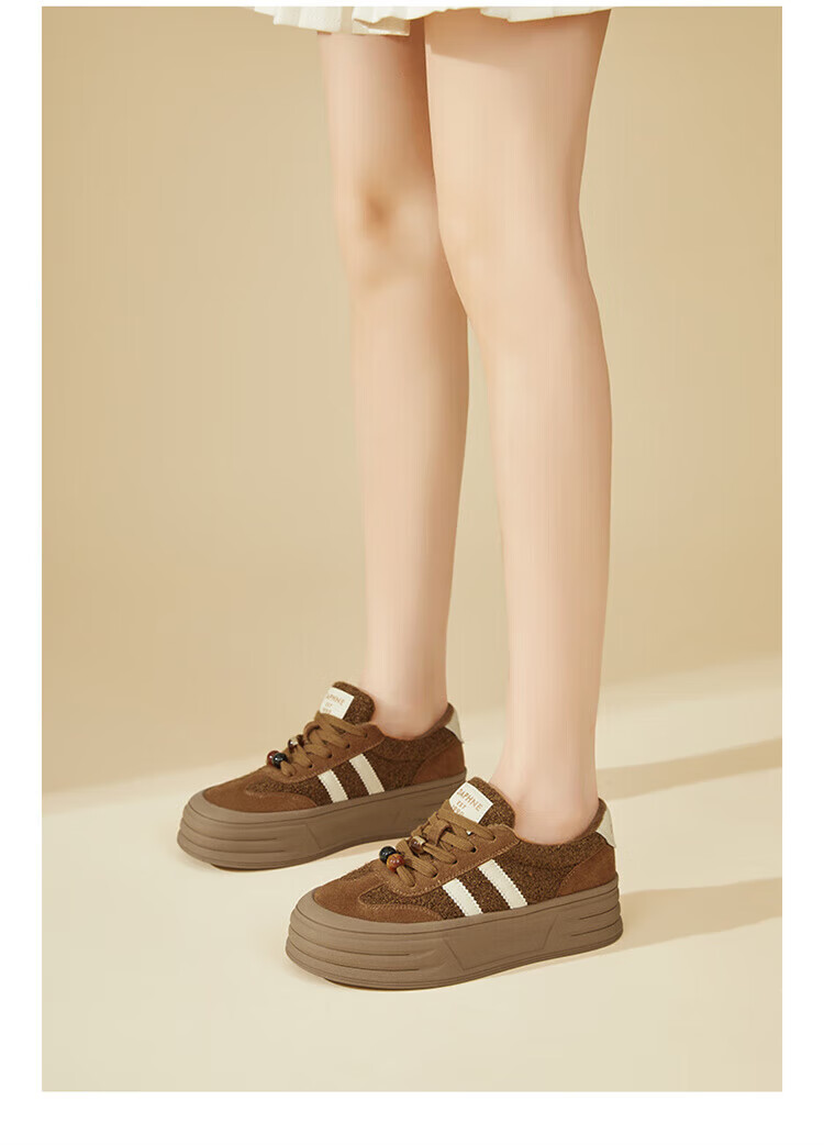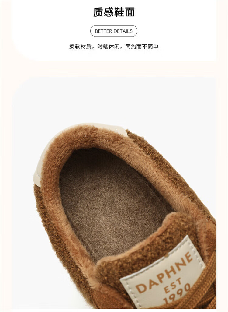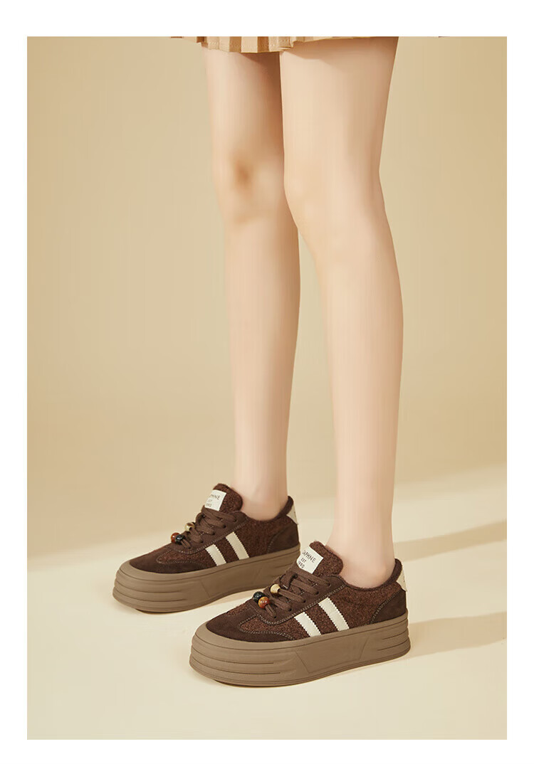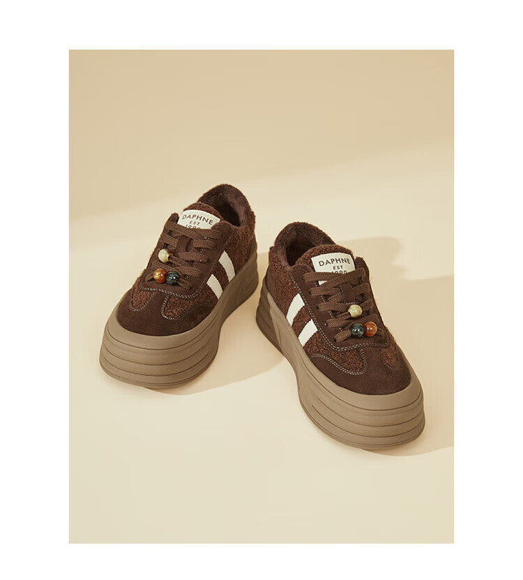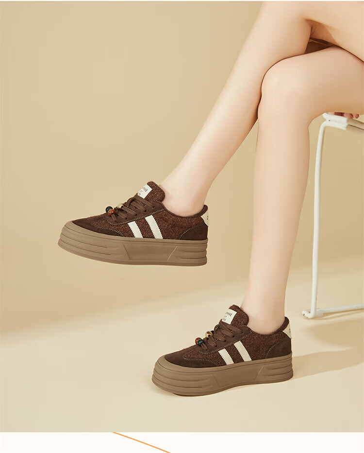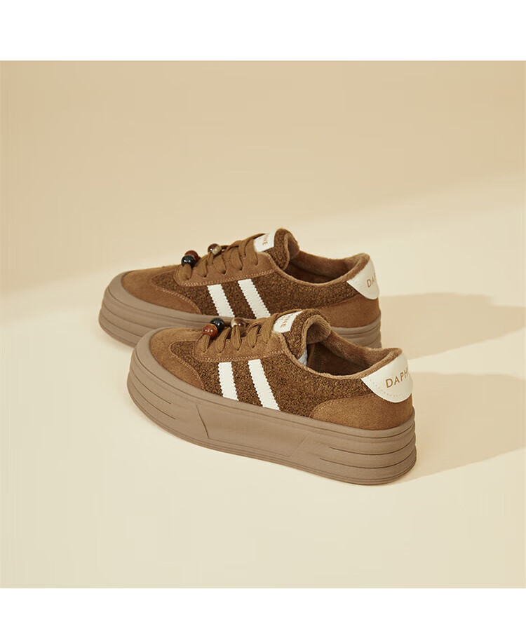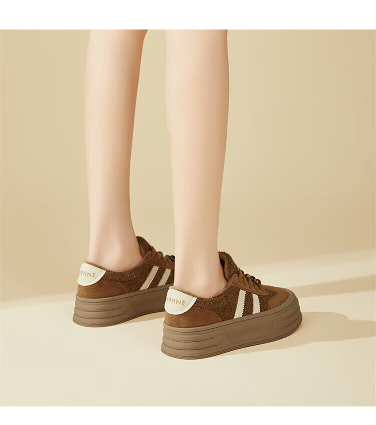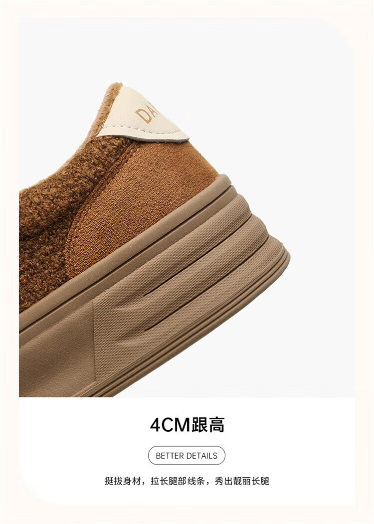 DAPHNE Daphne winter velvet and height-increasing cotton shoes for women 2025 new American campus thick-soled all-match casual sports moral training sneakers caramel color velvet heel height 4cm 35 (225mm)