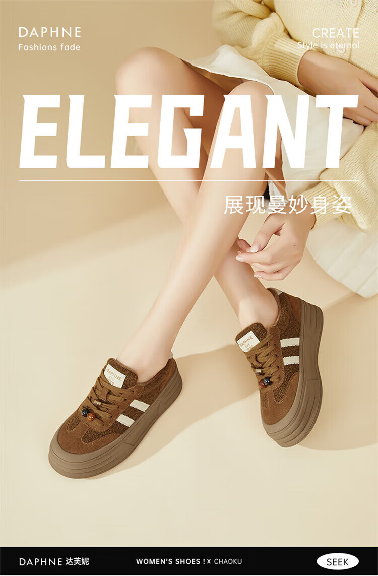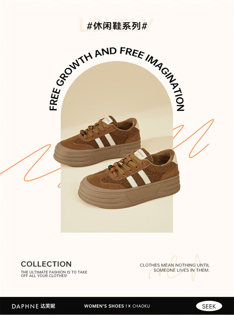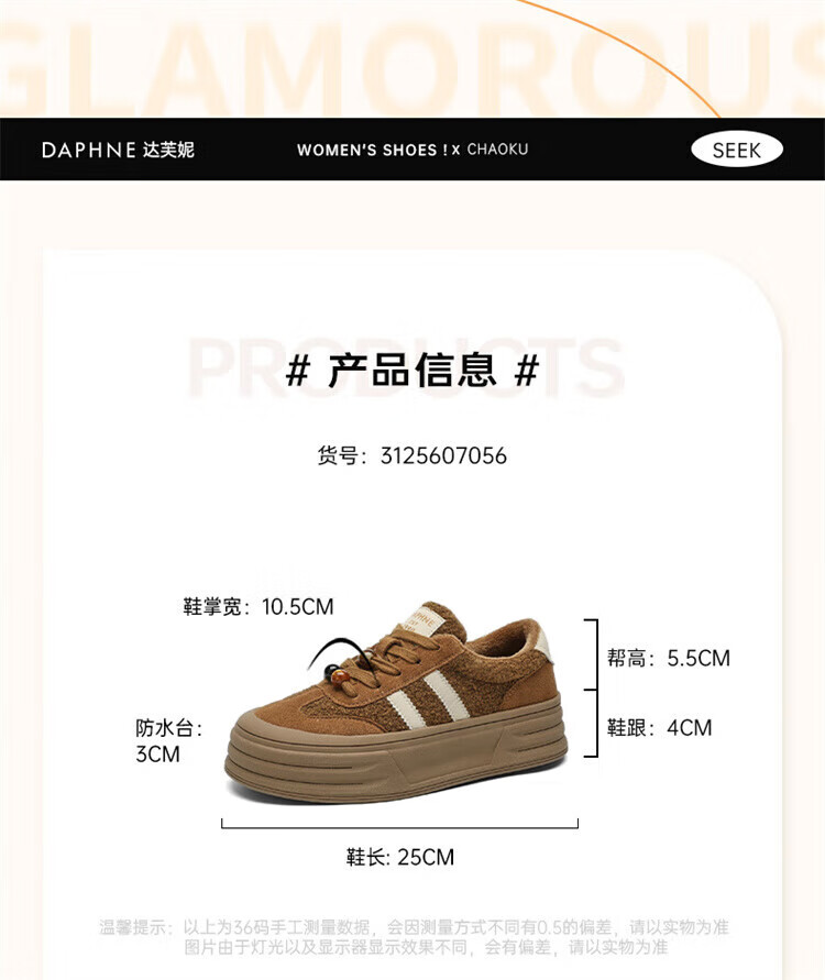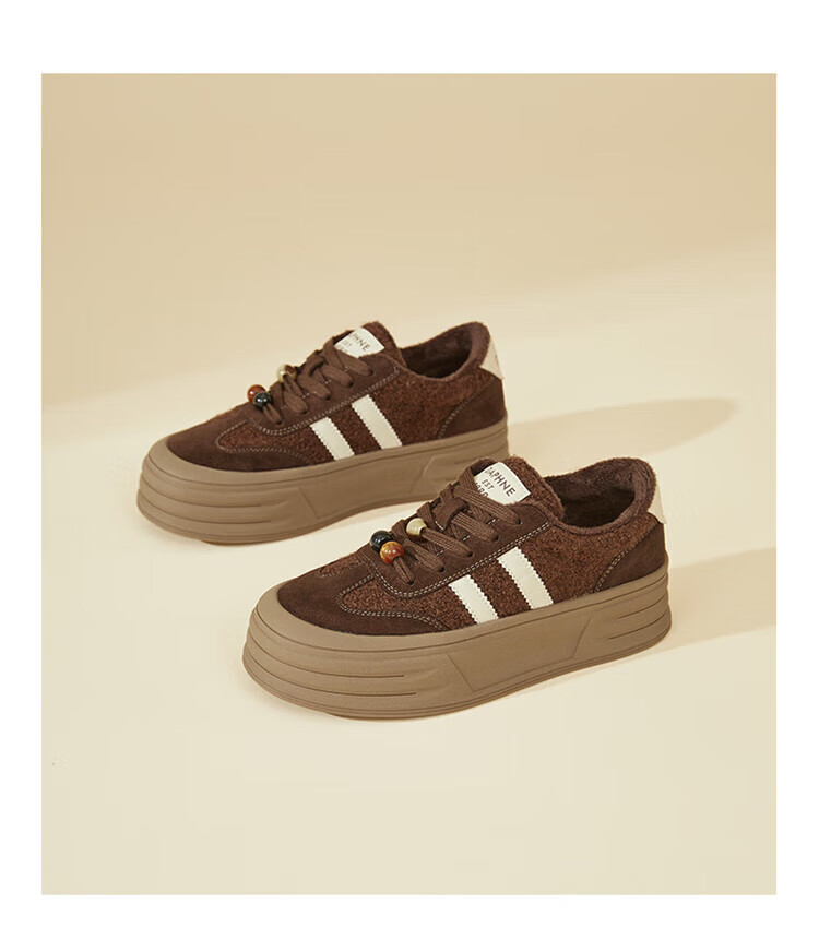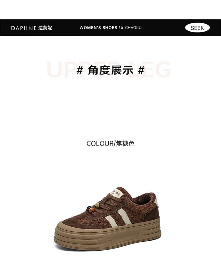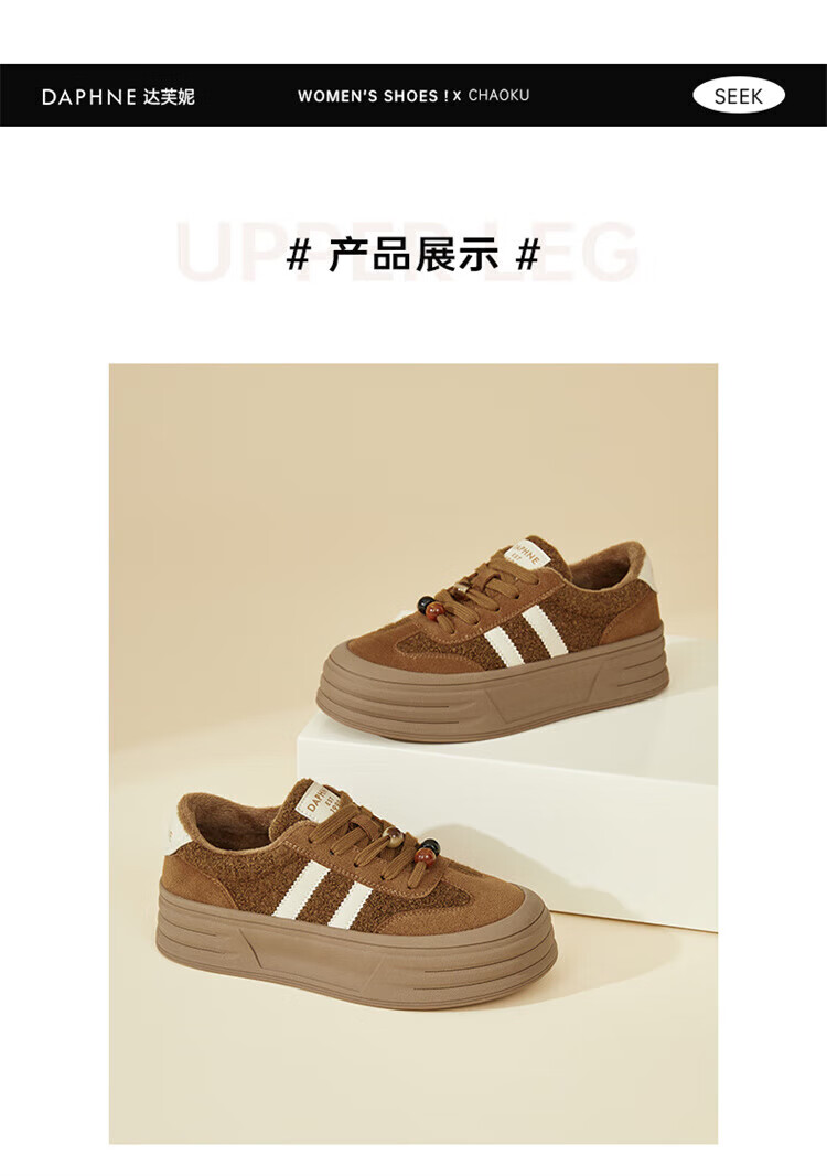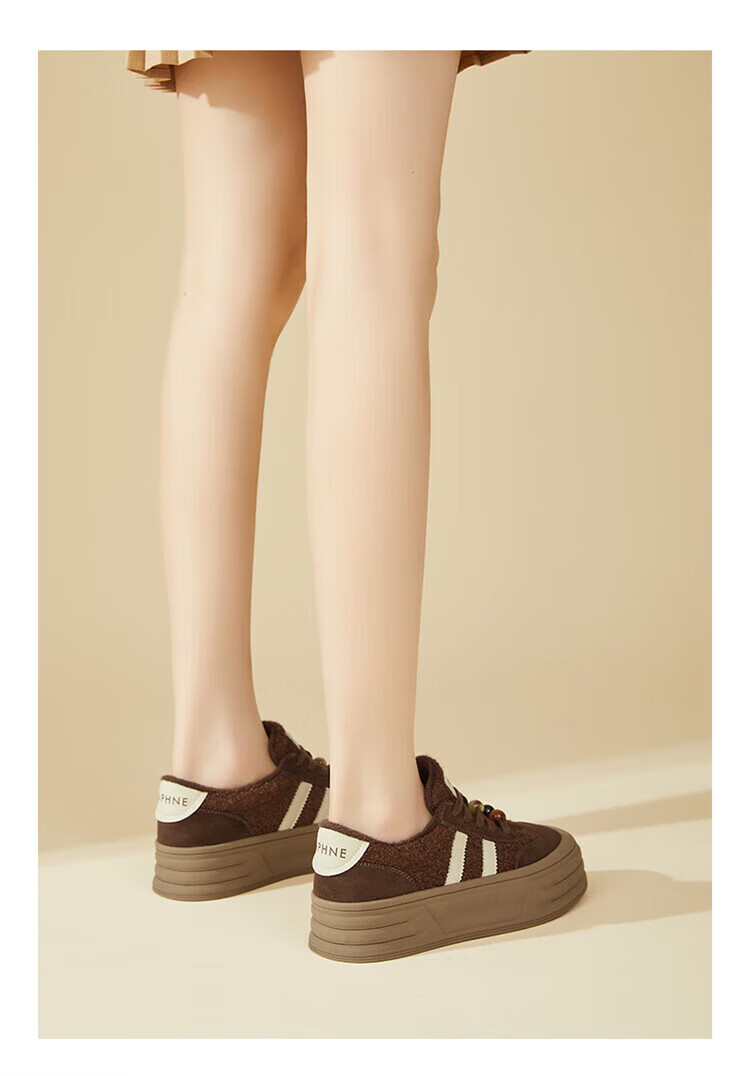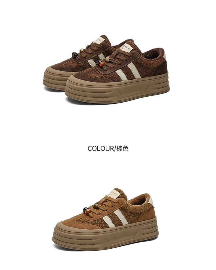 DAPHNE Daphne winter velvet and height-increasing cotton shoes for women 2025 new American campus thick-soled all-match casual sports moral training sneakers caramel color velvet heel height 4cm 35 (225mm)