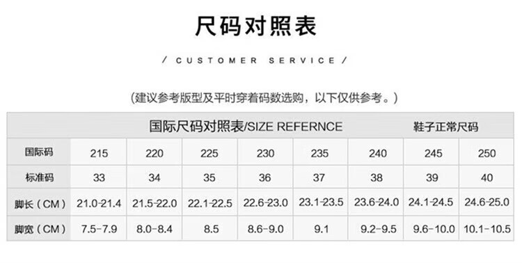 China (cm) 36 - 37 38 - 39 40 - 42 43 - 44 45 - 47