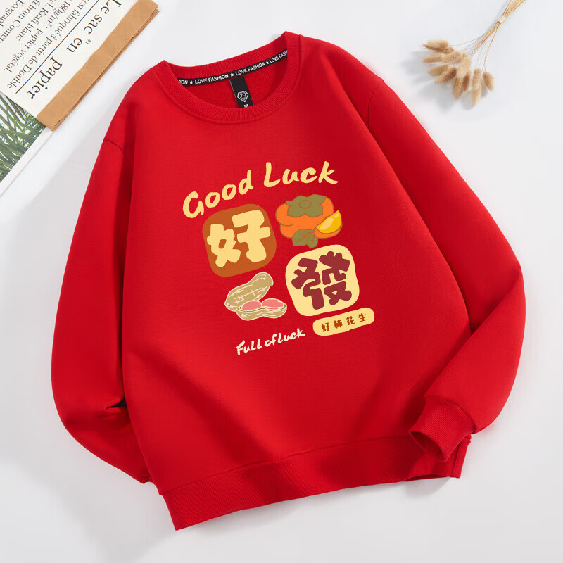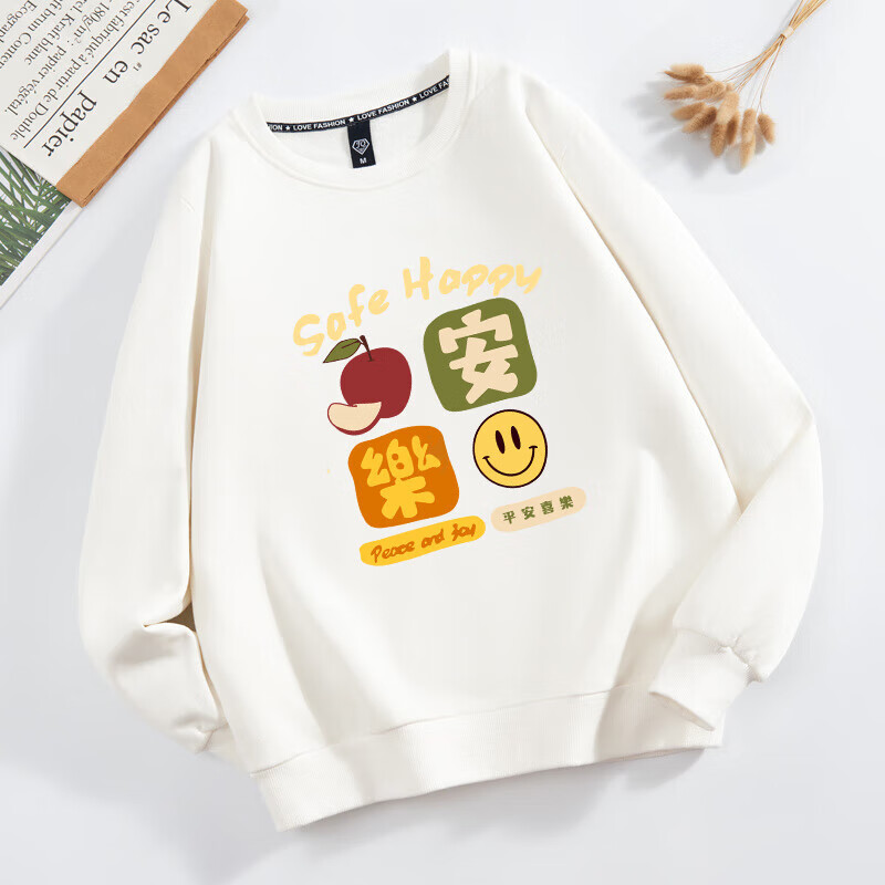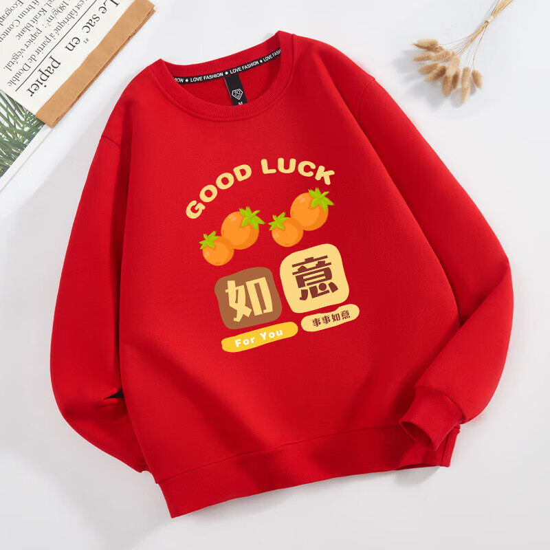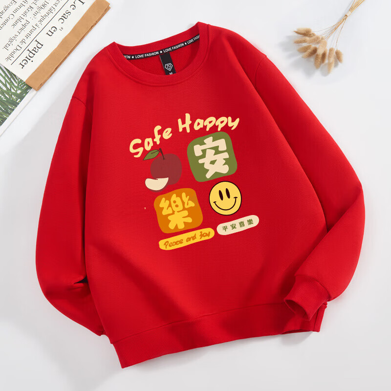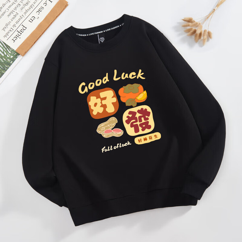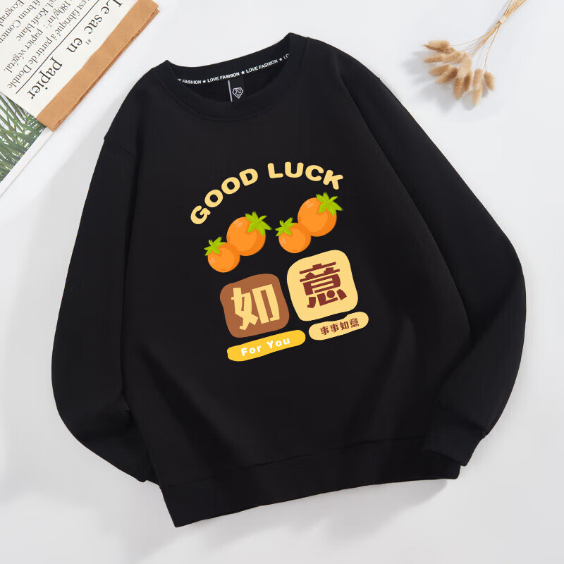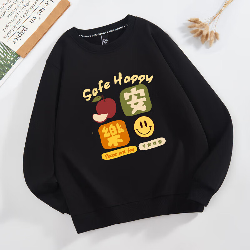 Parent-child clothing for a family of three or four 2026 new sweatshirts, safe and happy mother-daughter clothing, plus velvet for New Year service, all the best, plus velvet, black Good-everything goes well -463 165 (S)