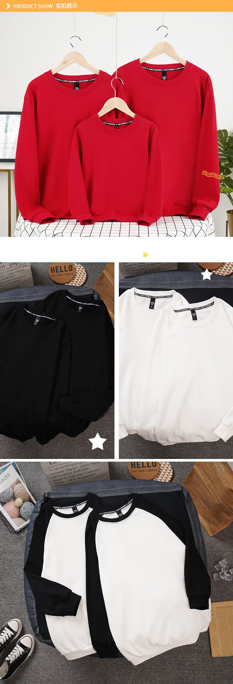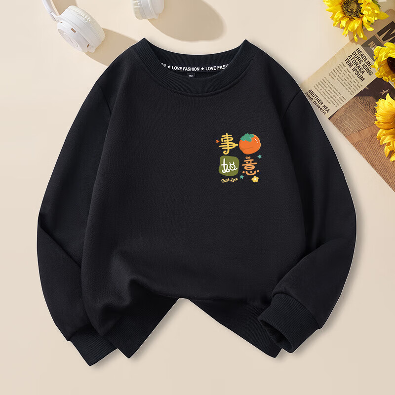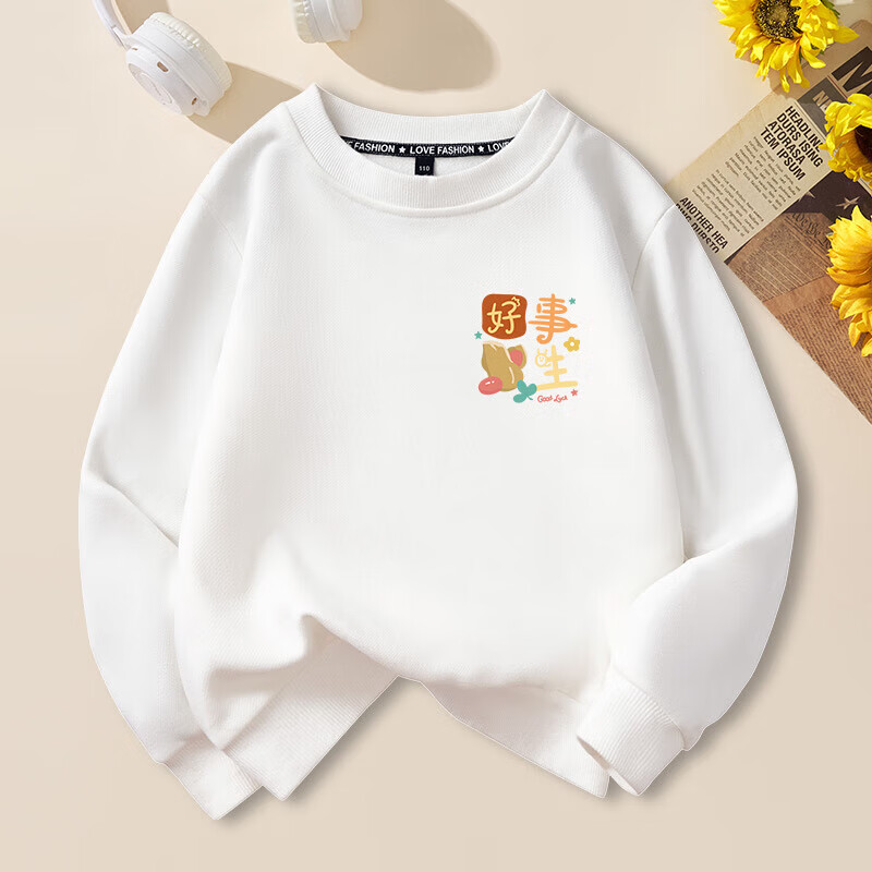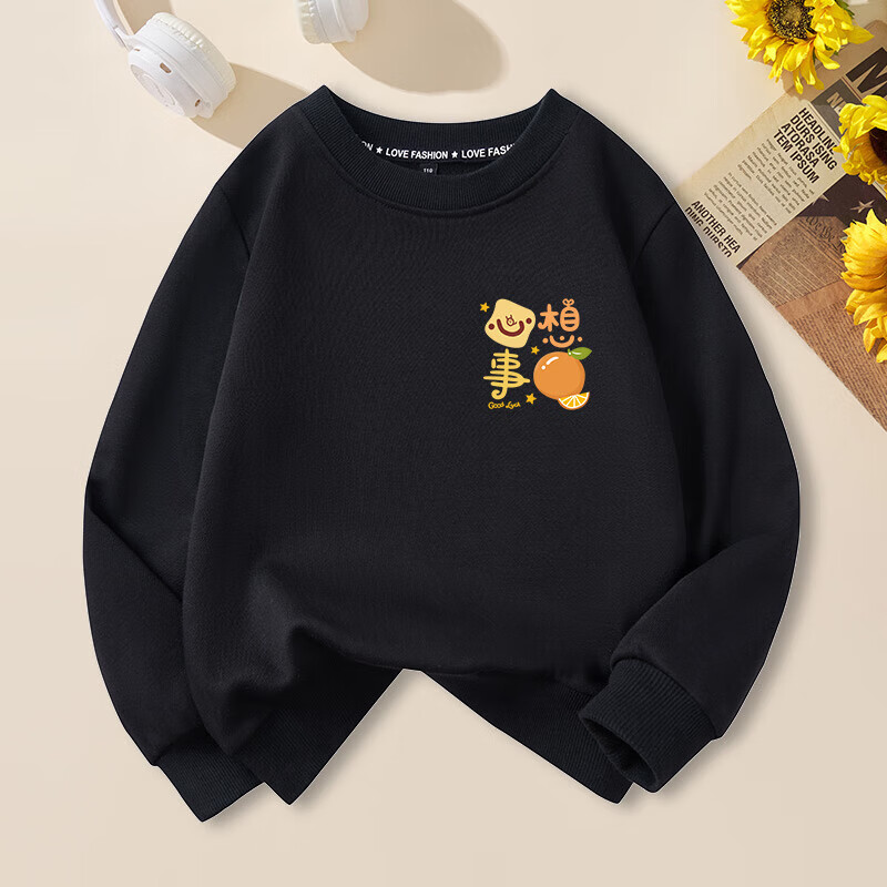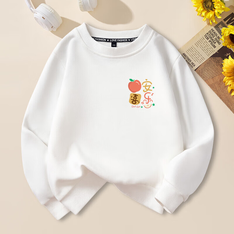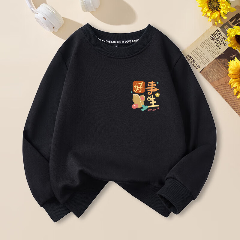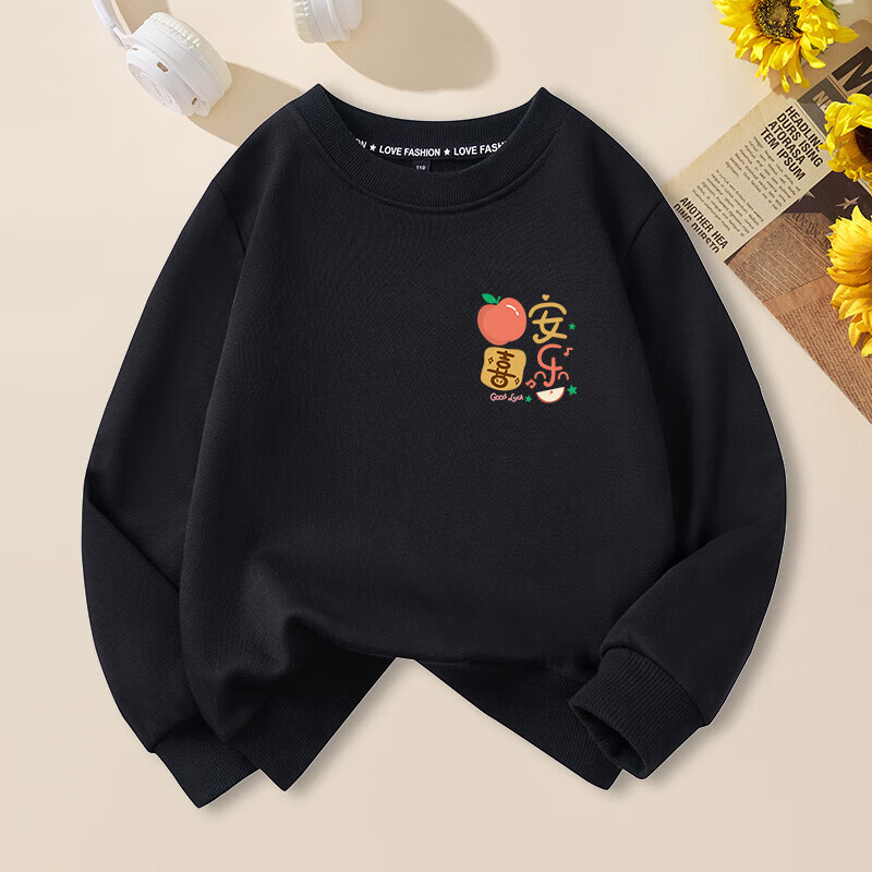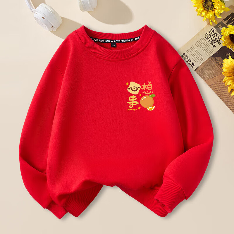 Peace and joy parent-child outfits for the New Year, a family of four, all their wishes come true, family portrait, new year, animal year, plus velvet sweatshirt, plus velvet sweatshirt, red chest label, original, all their wishes come true -463 130 baby cm