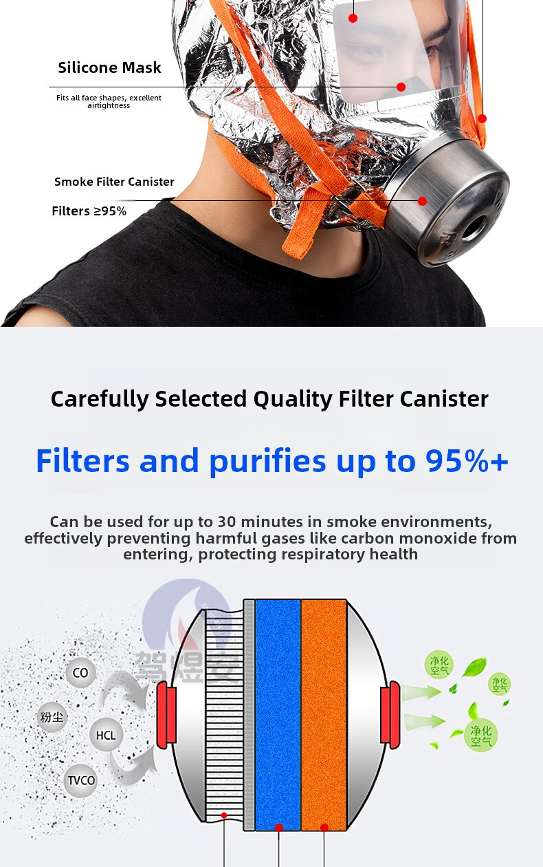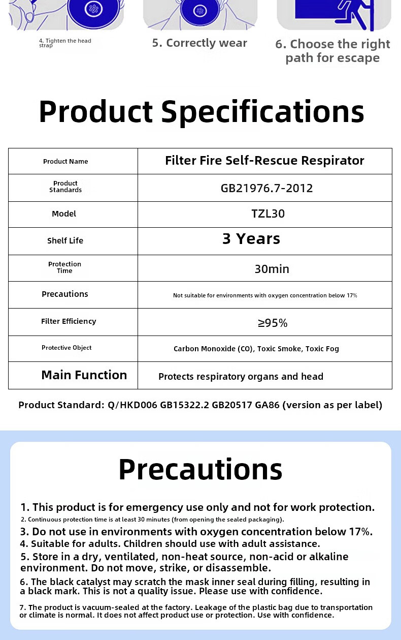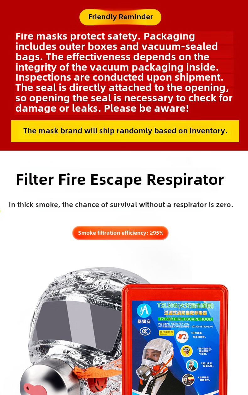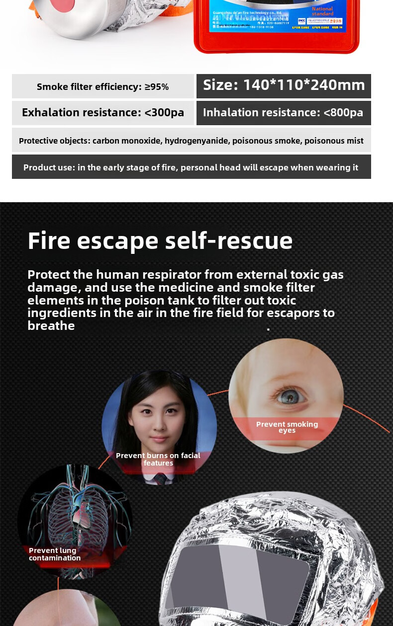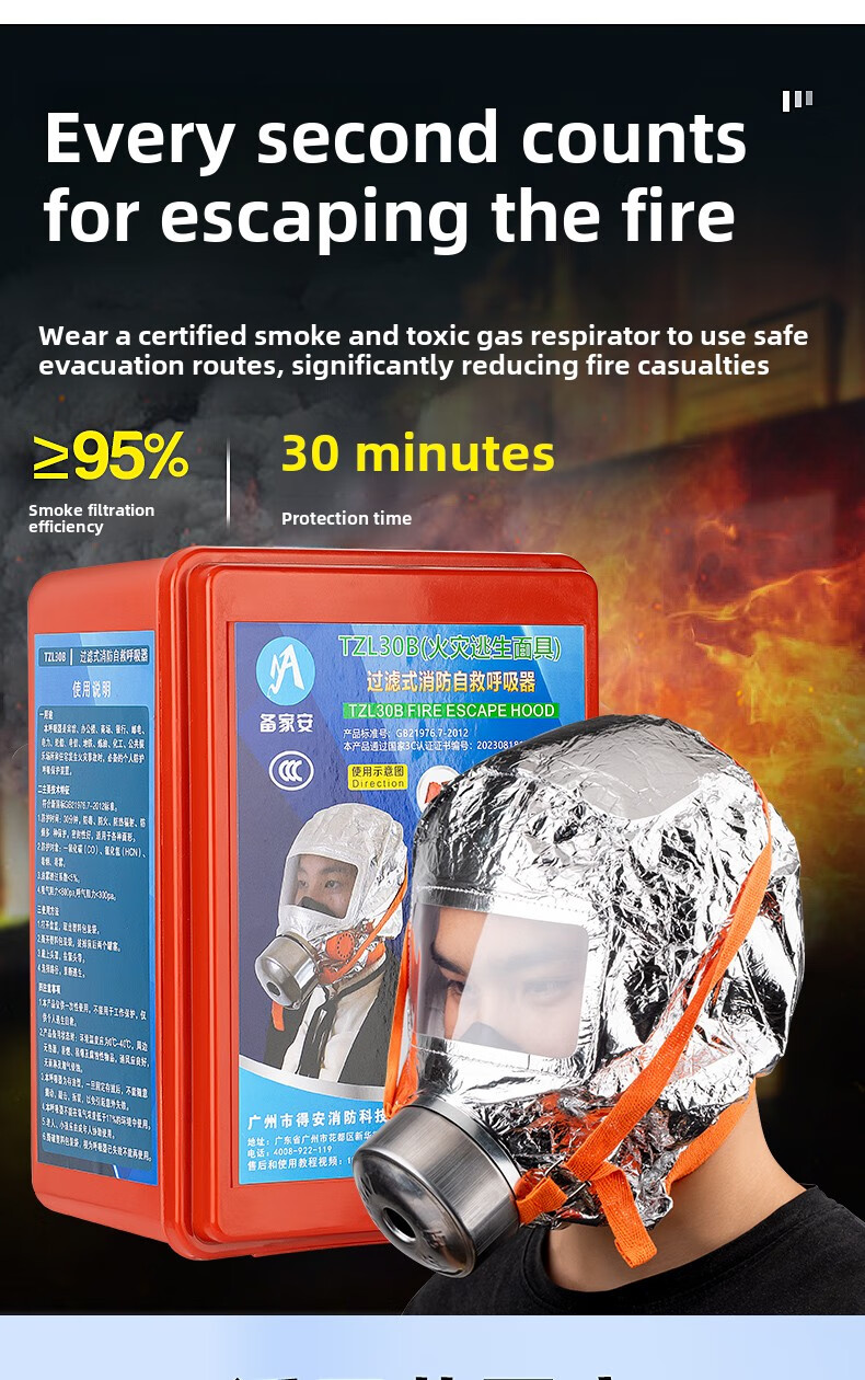 Fire mask anti-virus and anti-smoke mask rental hotel fire escape filter self-rescue respirator Tzl30A fire mask children's model